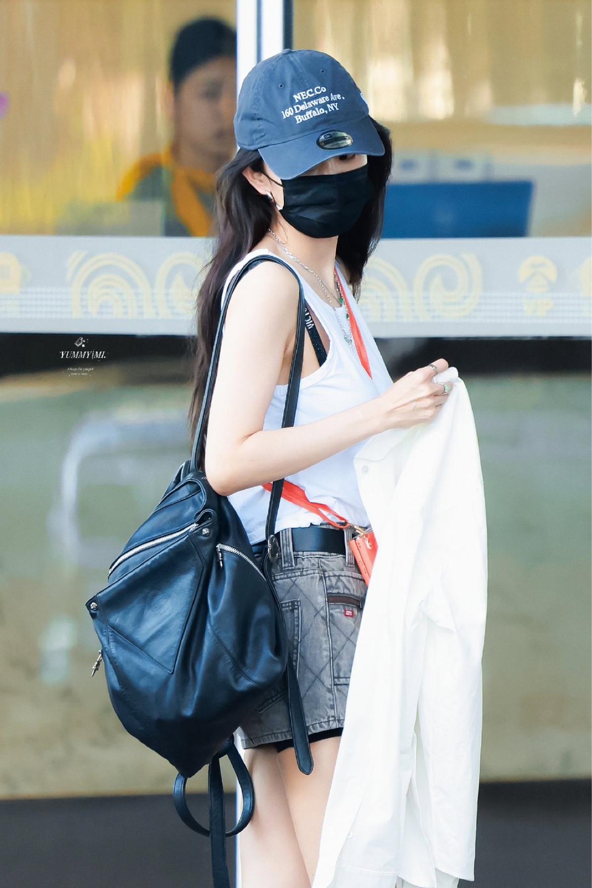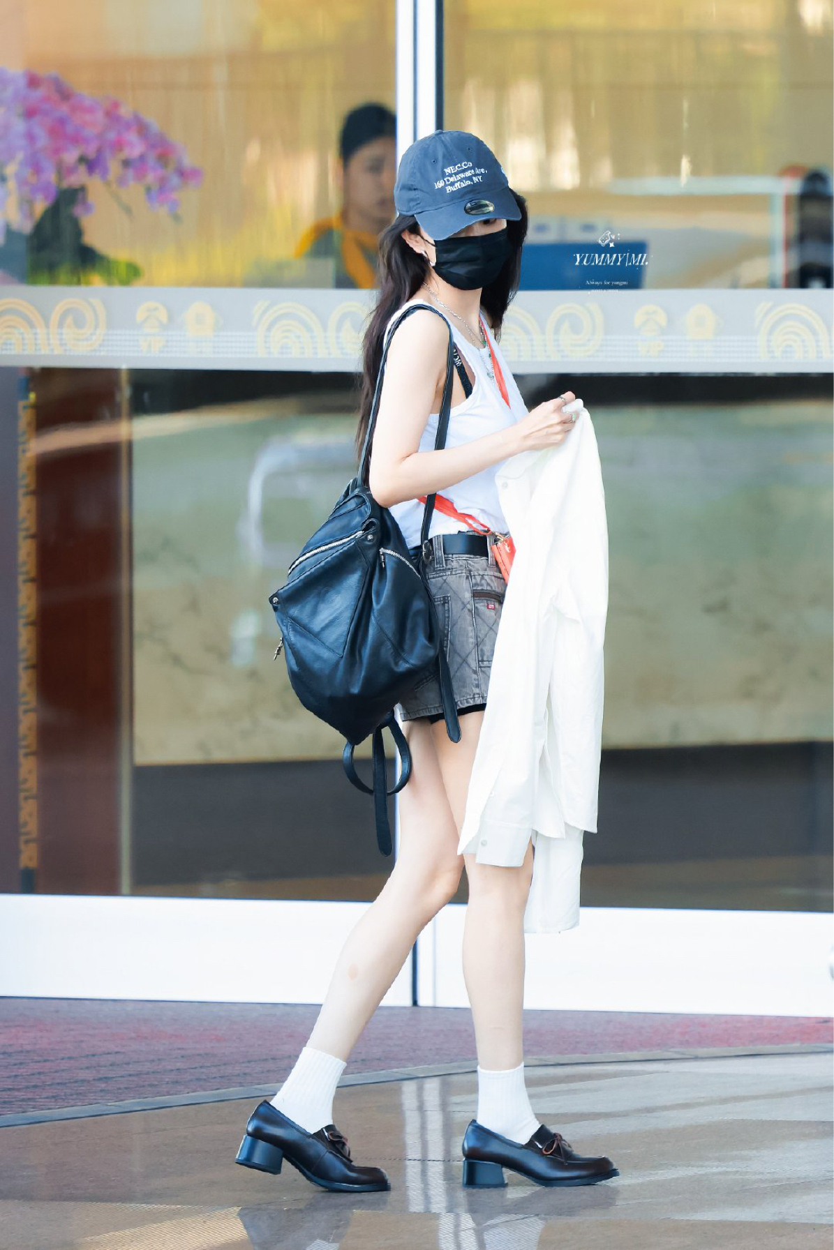 杨幂更新了7月30日机场私服,清爽舒适的夏日限定皮肤啊!今日时髦小辣妹来啦! CR:@YUMMYMI杨幂 包包: Chrome Hearts 帽子: New Era 胸罩: Victoria's Secret 鞋子: 思加图/staccato