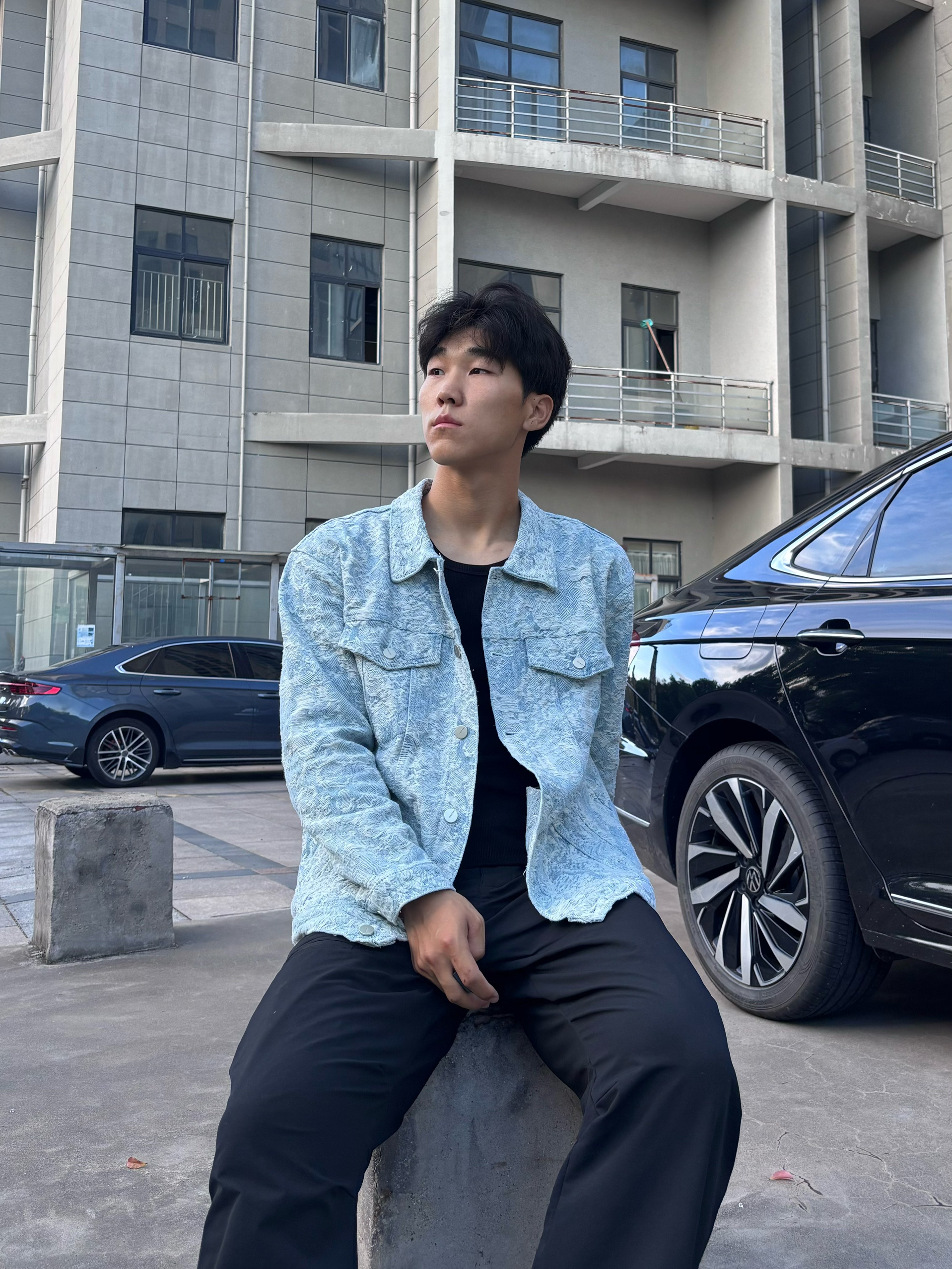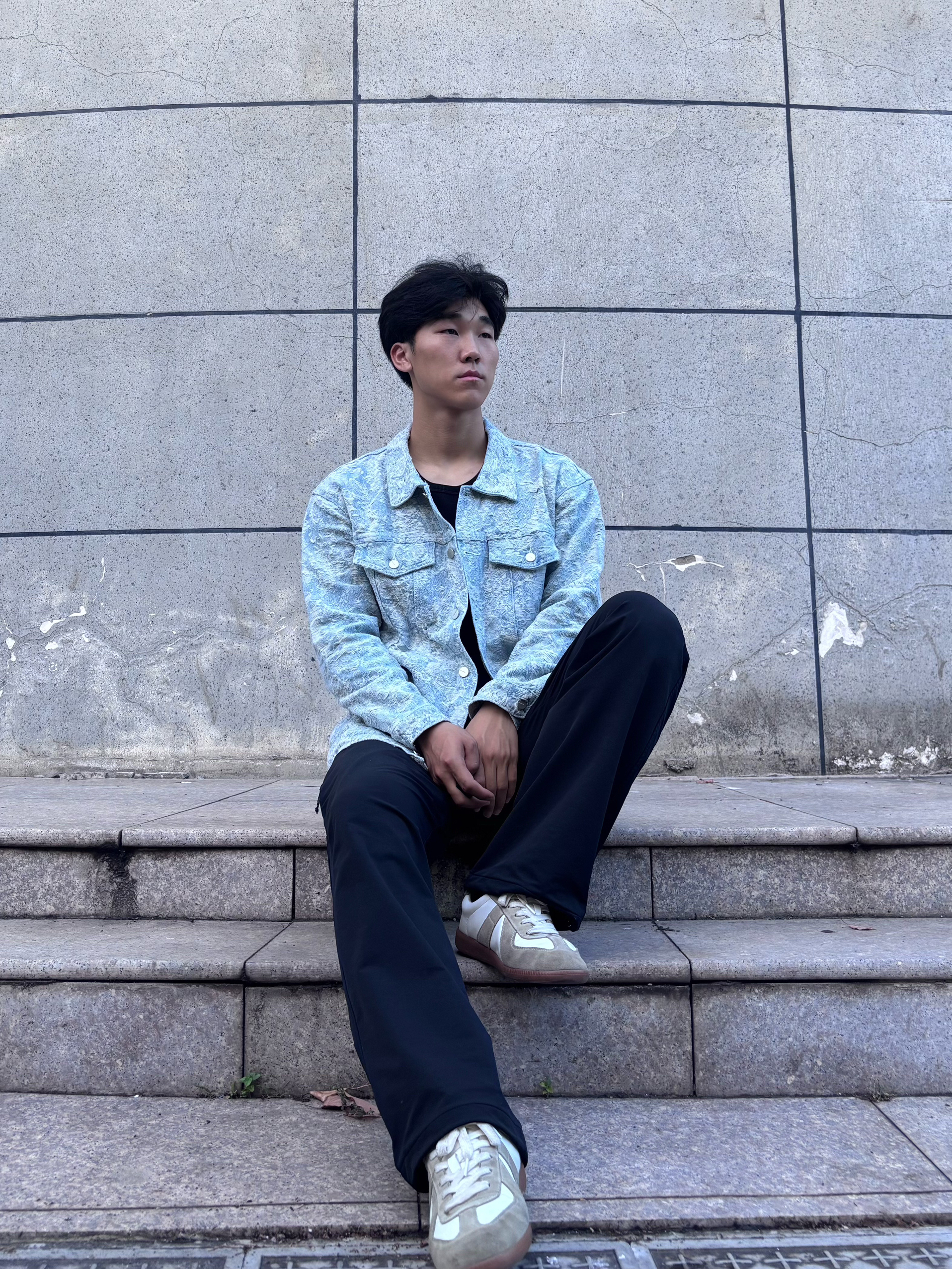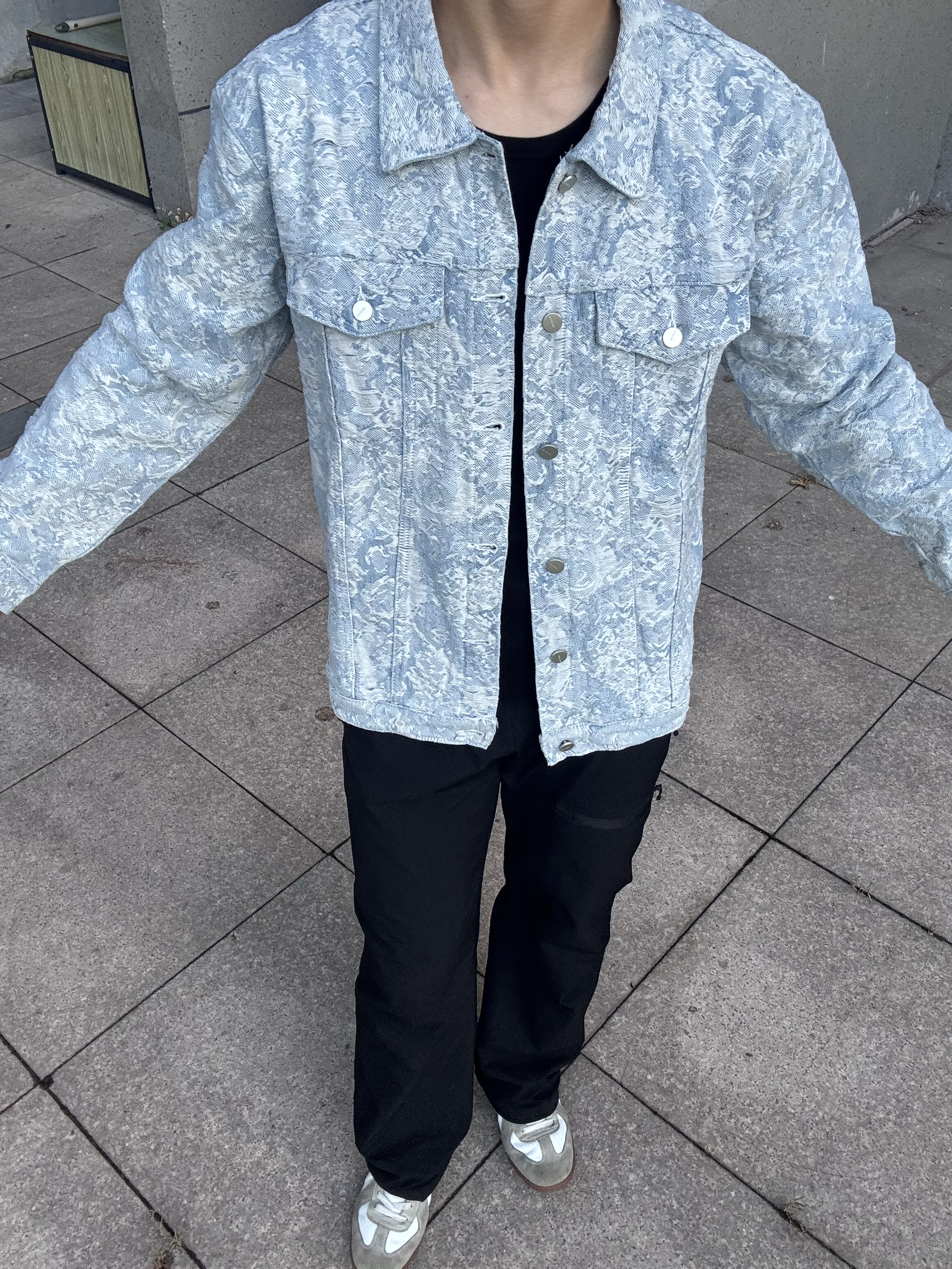 挖到超绝的 HELIPORT 家的复古牛仔外套! 浅蓝底色+不规则纹理 上身就有一种贵气十足的感觉 宽松版型藏肉又显肩宽,搭黑T黑裤 逼格直接拉满 关键是面料硬挺不廉价 尺码参考:183cm 75kg L码