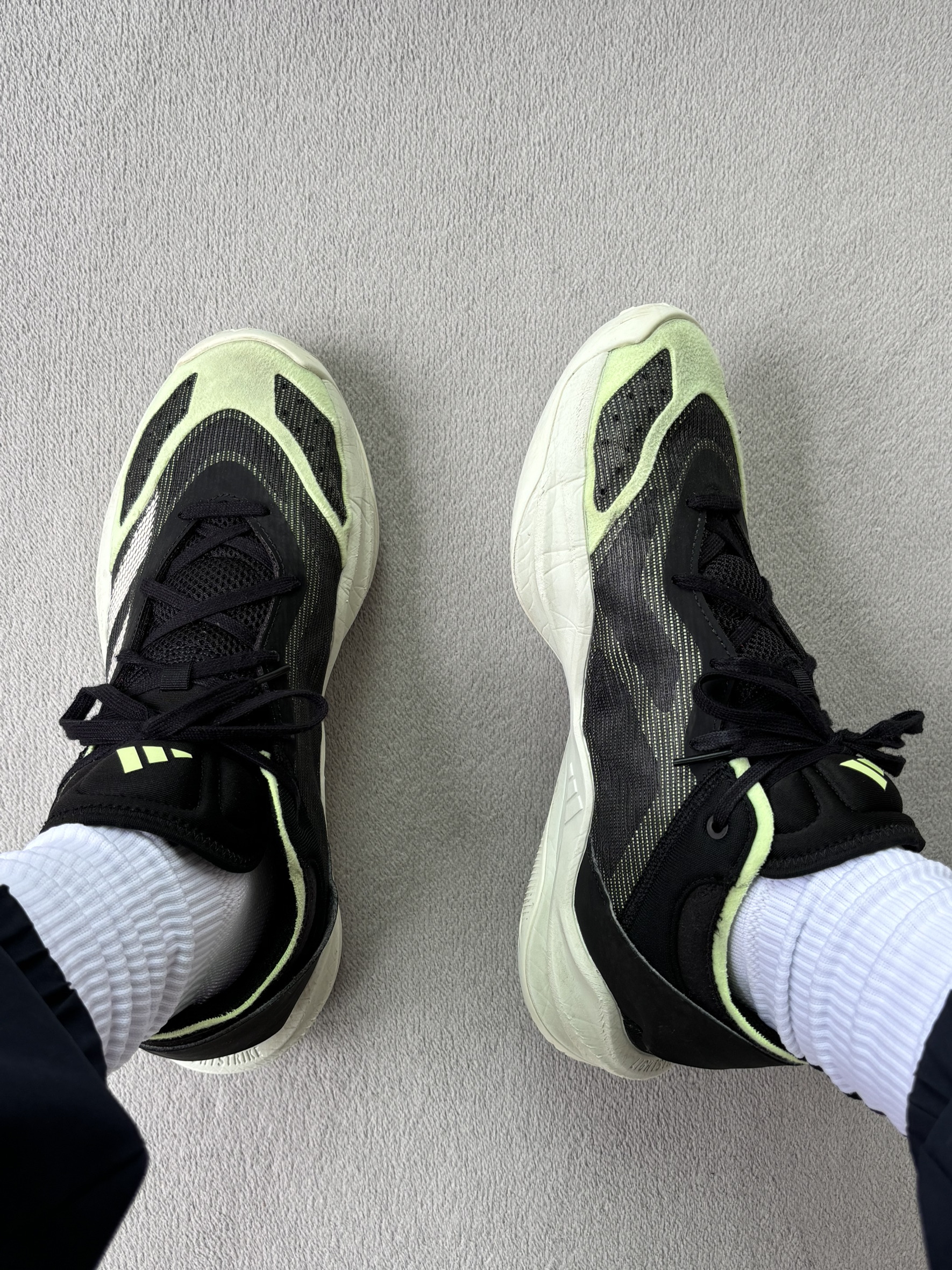 这期给大家安利一款特别适合夏日的实战好鞋, 就是我脚上这双李宁ULTRALIGHT2025 水果贴纸柠檬黄 ! 外观色彩和配色名强相关 ,整体是大面积的柠檬黄和草绿色的搭配 ,并且鞋垫上还印上了一颗清爽柠檬, 怎么说各位, 这个配色, 夏天穿够不够味! 并且这双鞋 拿在手上就像是拎了一包薯片,穿在脚下的感觉就更直接了,毫无累赘感,得益于它采用的是䨻丝鞋面, 并且中底在LIGHT F...