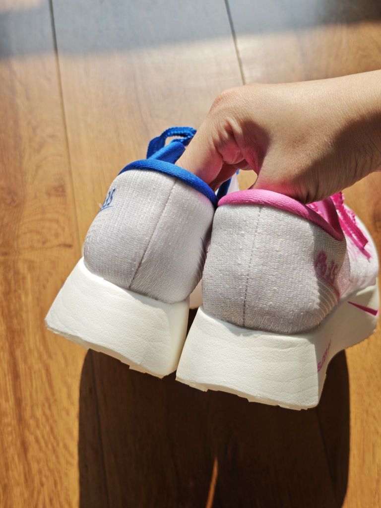 这双鞋的第一印象就想先说缺点😂,因为我以为我买了个sample鞋,这做工太纯粹了[斯密马赛_blue] 鞋底纹路看上去比较浅,鞋面看上去有点粗糙 但是这个红蓝鸳鸯配的颜色还可以,第一双掀起红蓝鸳鸯风的鞋是中乔的强风se ip联名那双,后续各家出的鸳鸯都有延续左右不同,但是又很协调的氛围 然后它很轻,价格也便宜,碳板刚性和它整个外观给人的印象不一样,起码是很有推进力的碳板跑,材料是粗胚发泡,脚感...