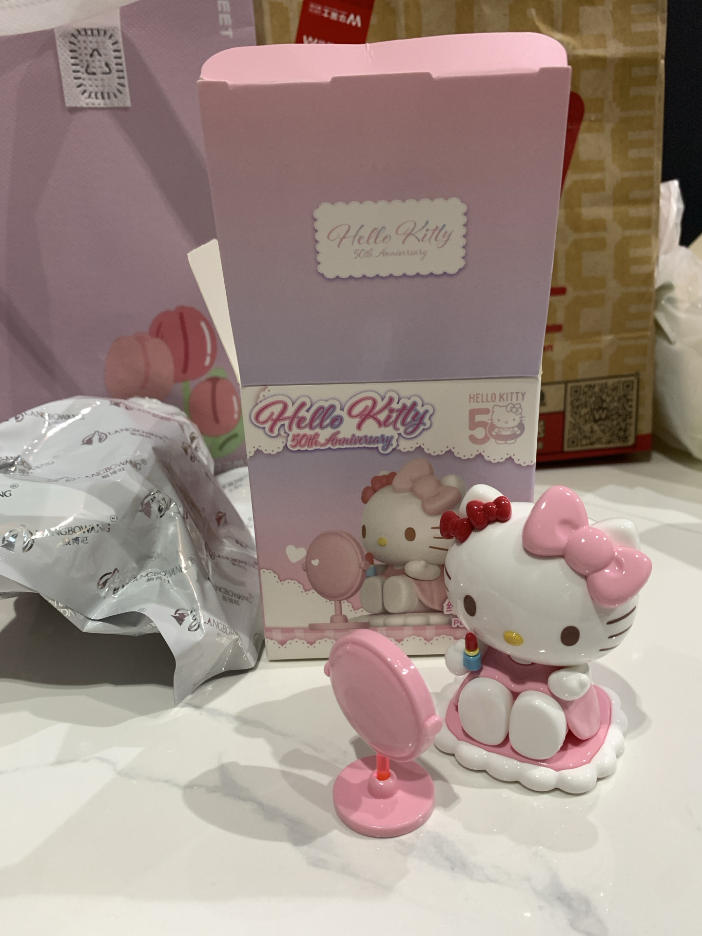 家人们谁懂啊,这个Hello Kitty盲盒摆件萌化我了! 粉粉嫩嫩超精致,放桌上可养眼啦~就是盲盒形式容易抽到重复款😭。
