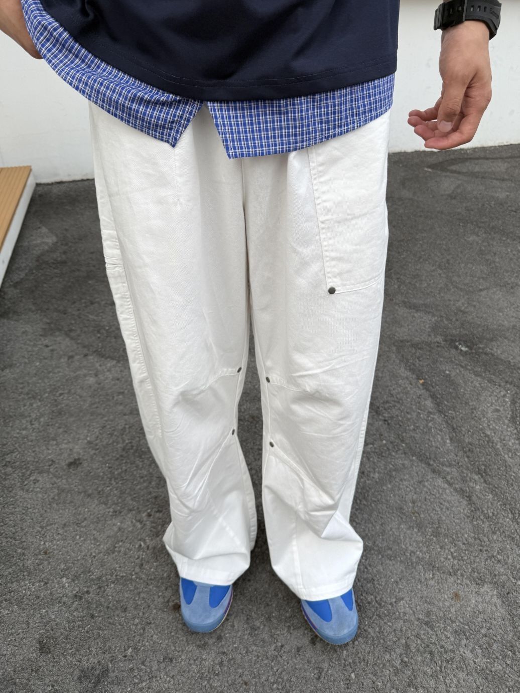 谁懂啊!这条白色阔腿裤直接封神✨ 最近入手了Botanica神物铺子家的美式复古白色工装裤 宽松直筒的版型,不挑腿型也显廋 独特口袋的设计加上精致的纽扣点缀高级感十足 微弯刀的设计,穿起来更显高 纯棉斜纹布面料,穿起来透气轻薄又有垂感 后面有线条修饰,有层次不单调~ 搭配藏青拼格纹POLO衫,蓝白配色清爽又高级,视觉上瞬间降温~