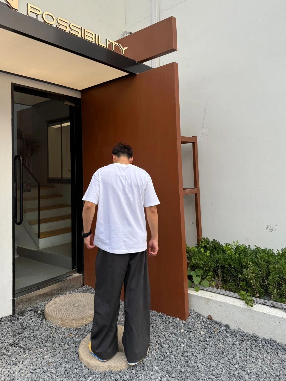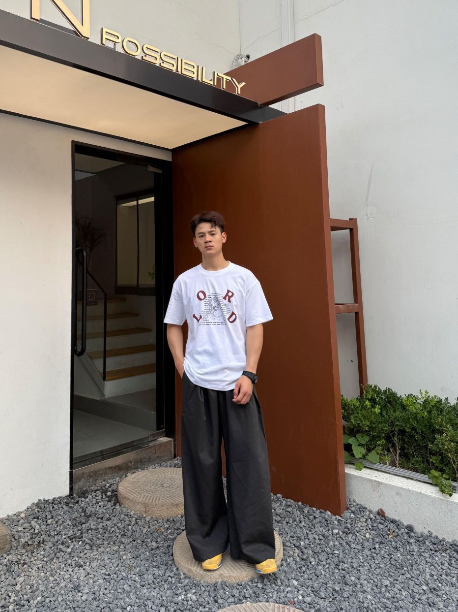 宝子们!分享套超适合日常出街的穿搭~ 最近入手了XYB显眼包家的小众不简单的白T 我180/140穿L码刚刚好合适 轻薄纯棉的面料,穿起来透气舒适 胸前有小众的字母印花图案,吸睛好看~ 正肩微宽松的版型,穿起来超有型 日常搭配短裤,工装裤都可以轻松驾驭 下面我搭配了灰色西裤,美式潮流感拉满