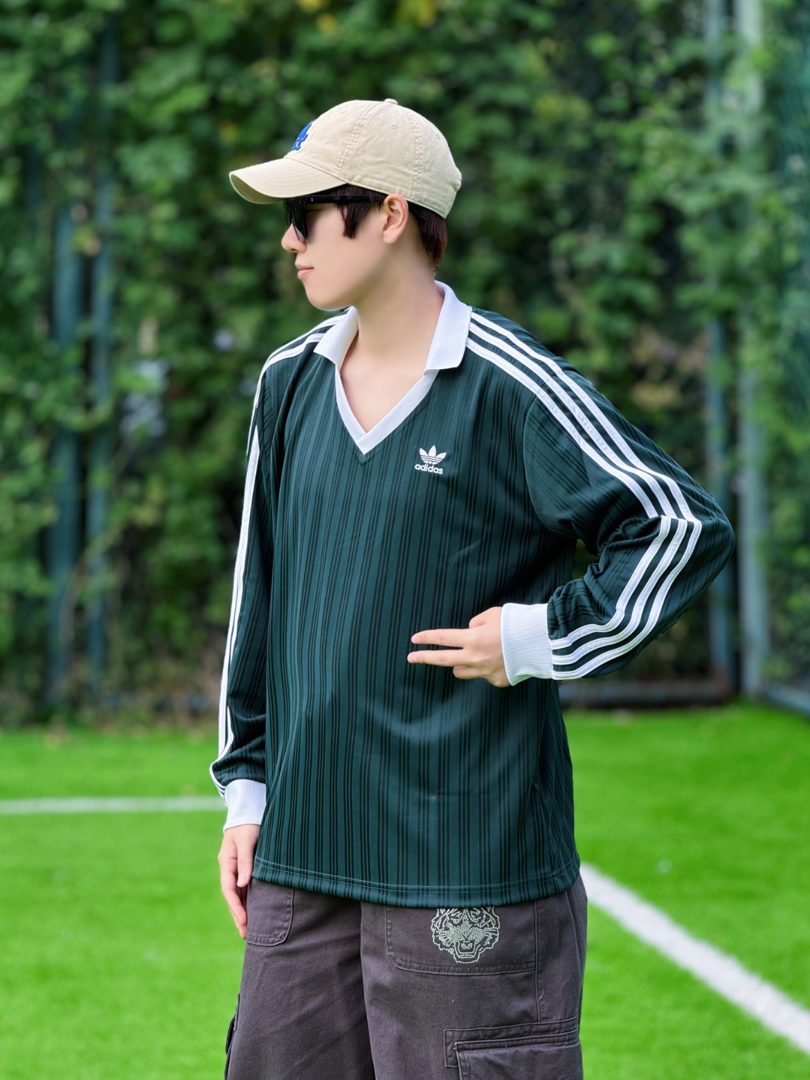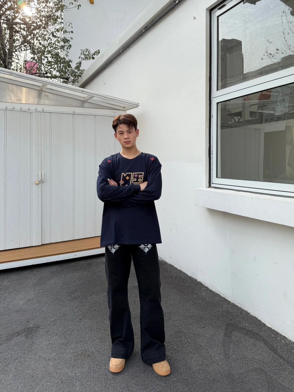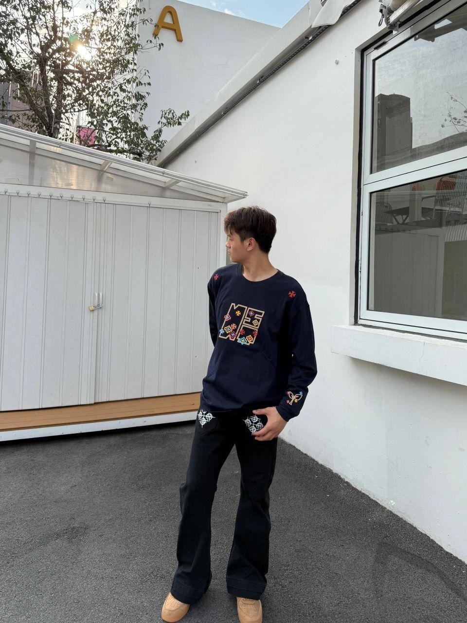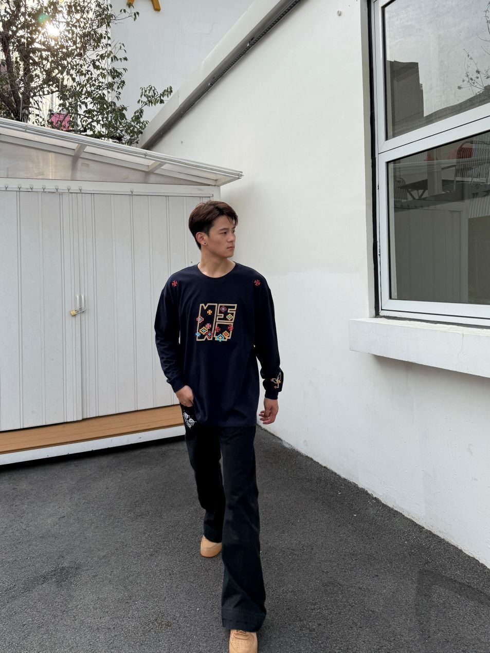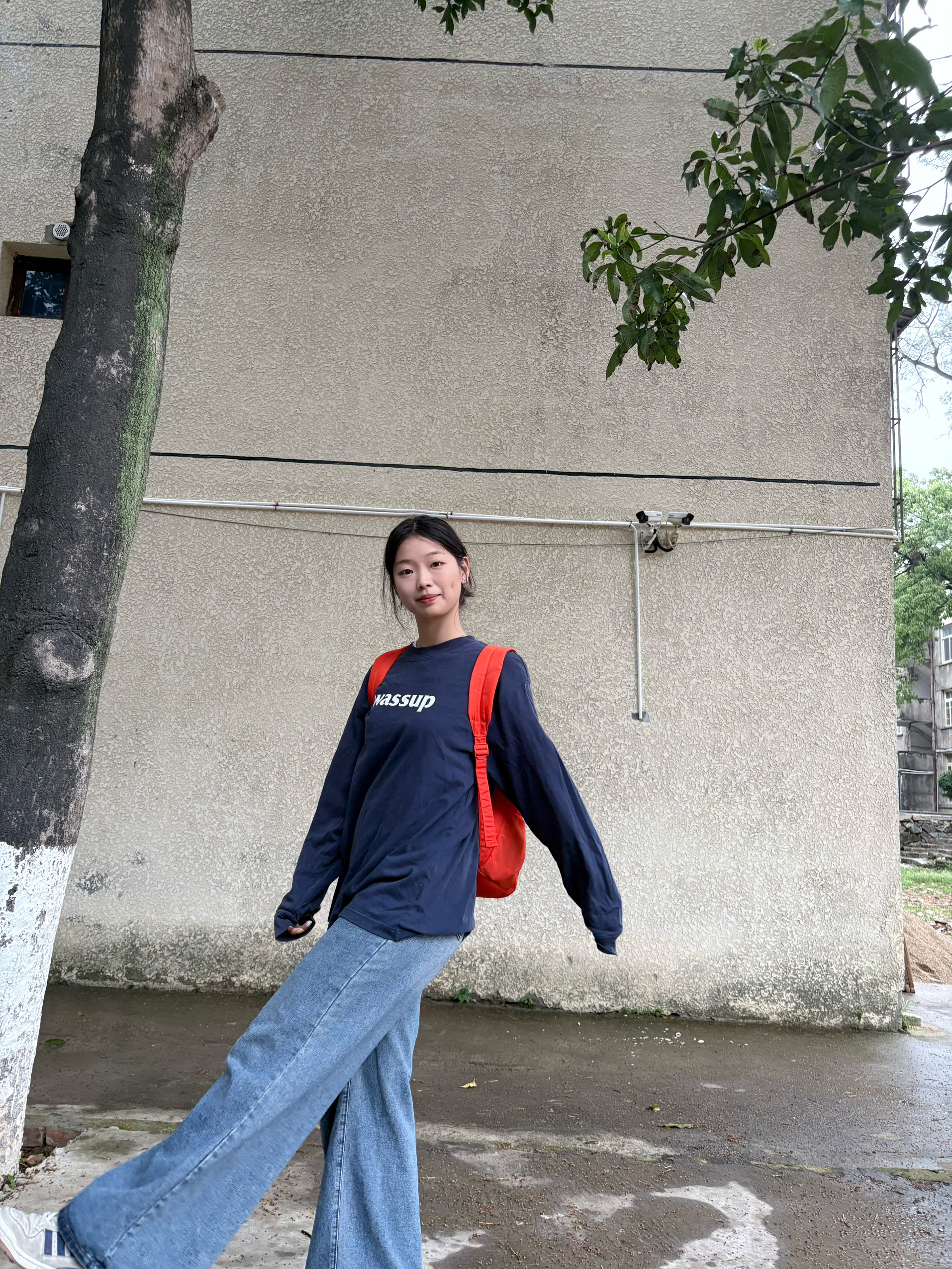 我180/140穿L码刚刚好 这件发芽计划长袖 藏蓝色复古长袖真的帅 纯棉的面料质感拉满,穿起来轻薄透气 宽松的版型设计,穿起来百搭不显身材 肩上手腕处和胸前有 有logo刺绣细节 好看不单调👍 日常通勤搭配牛仔裤 休闲裤都妥妥OK