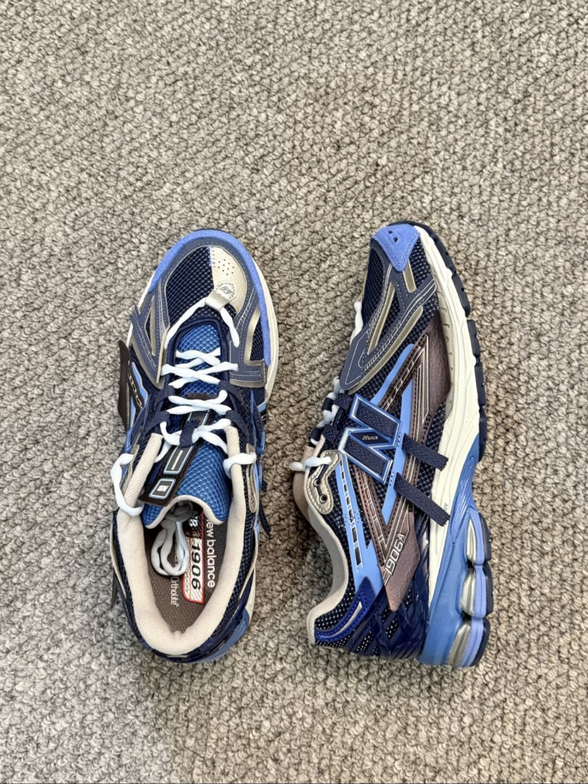 最近NB 1906A出了好多新配色,这双深蓝色深得我心! 这双鞋整体采用深蓝色的配色,但是用到了不同蓝色,很有层次,鞋带的浅蓝色让整个鞋的颜值进一步提升,最喜欢的是这个N的小翅膀设计,很有个性。 脚感和1906R差不多,日常出街不在话下!