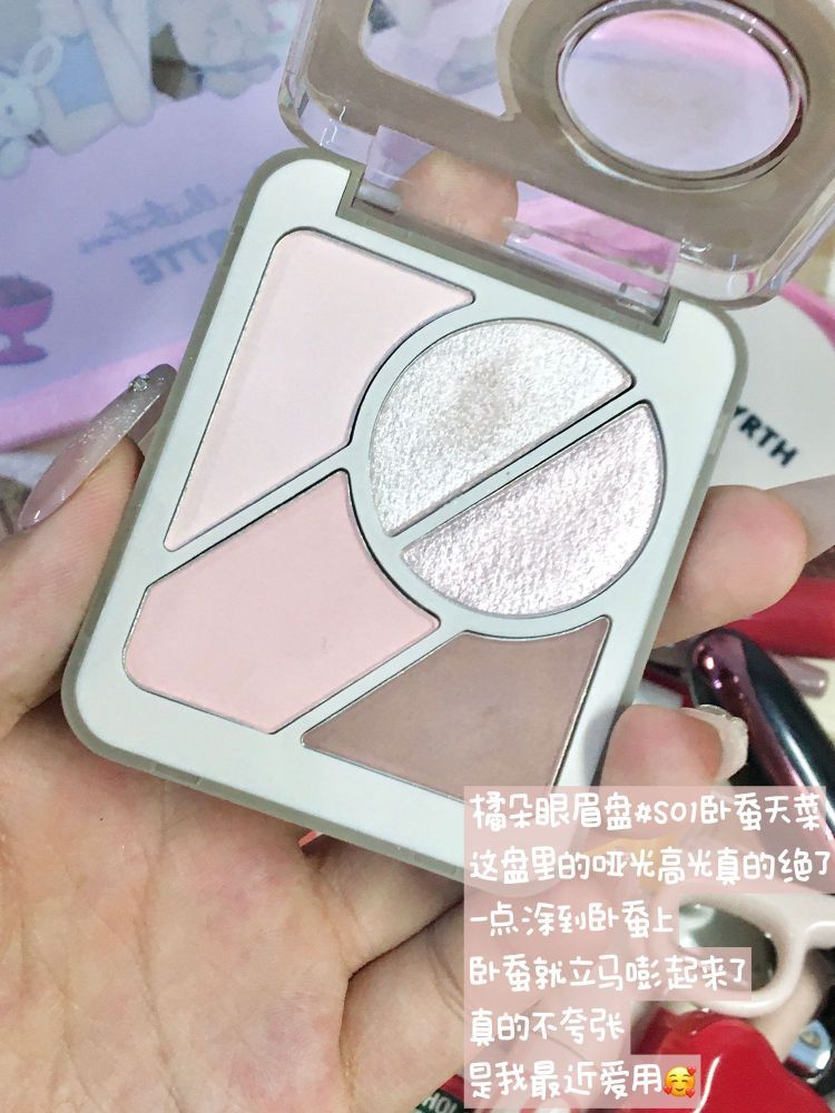都是平价又好用 1.IMMEME 奶茶盘 2.pinkbear R503 3.荔萌高光膏 青苹果 4.橘朵眼眉盘 卧蚕天菜
