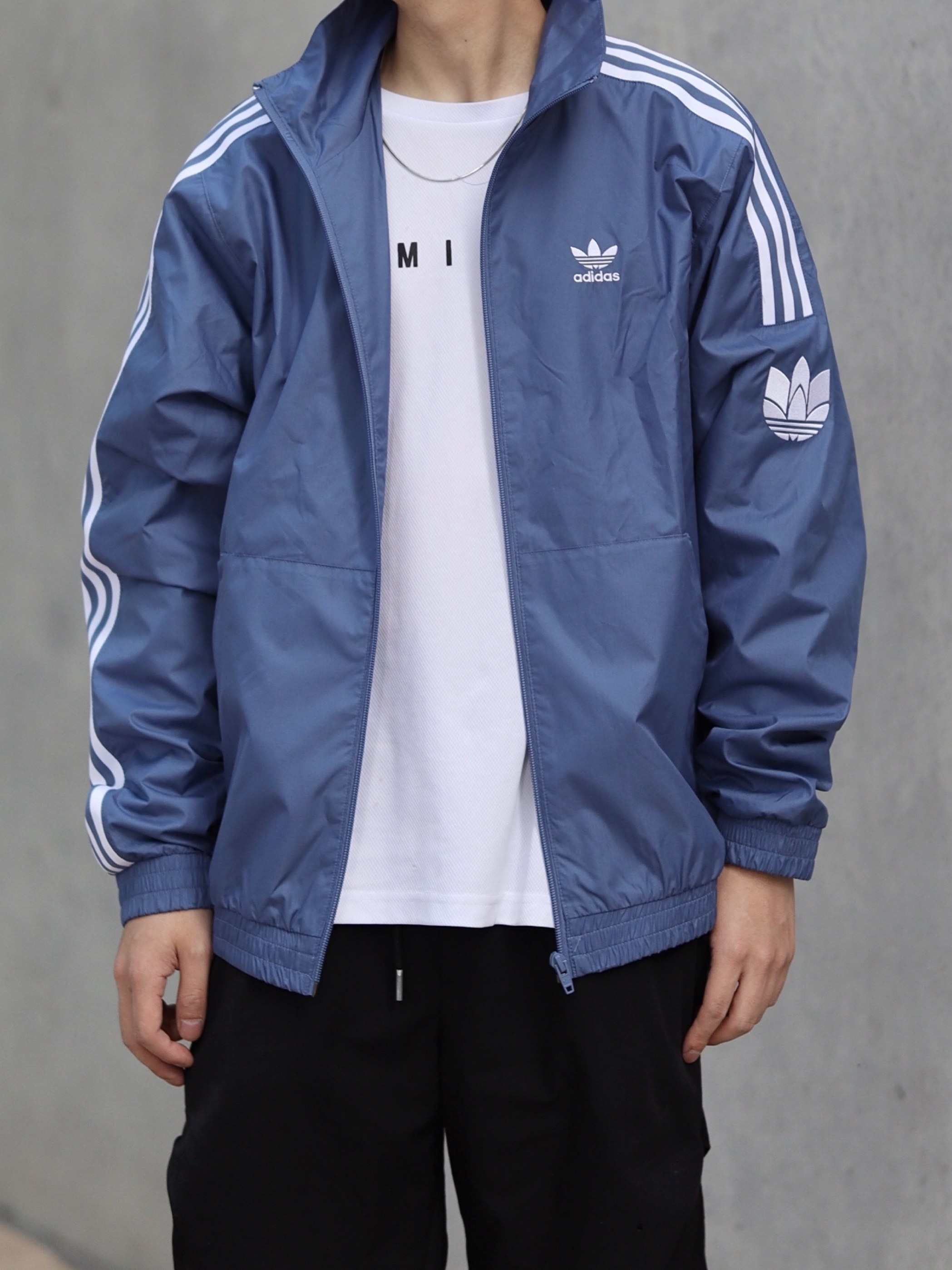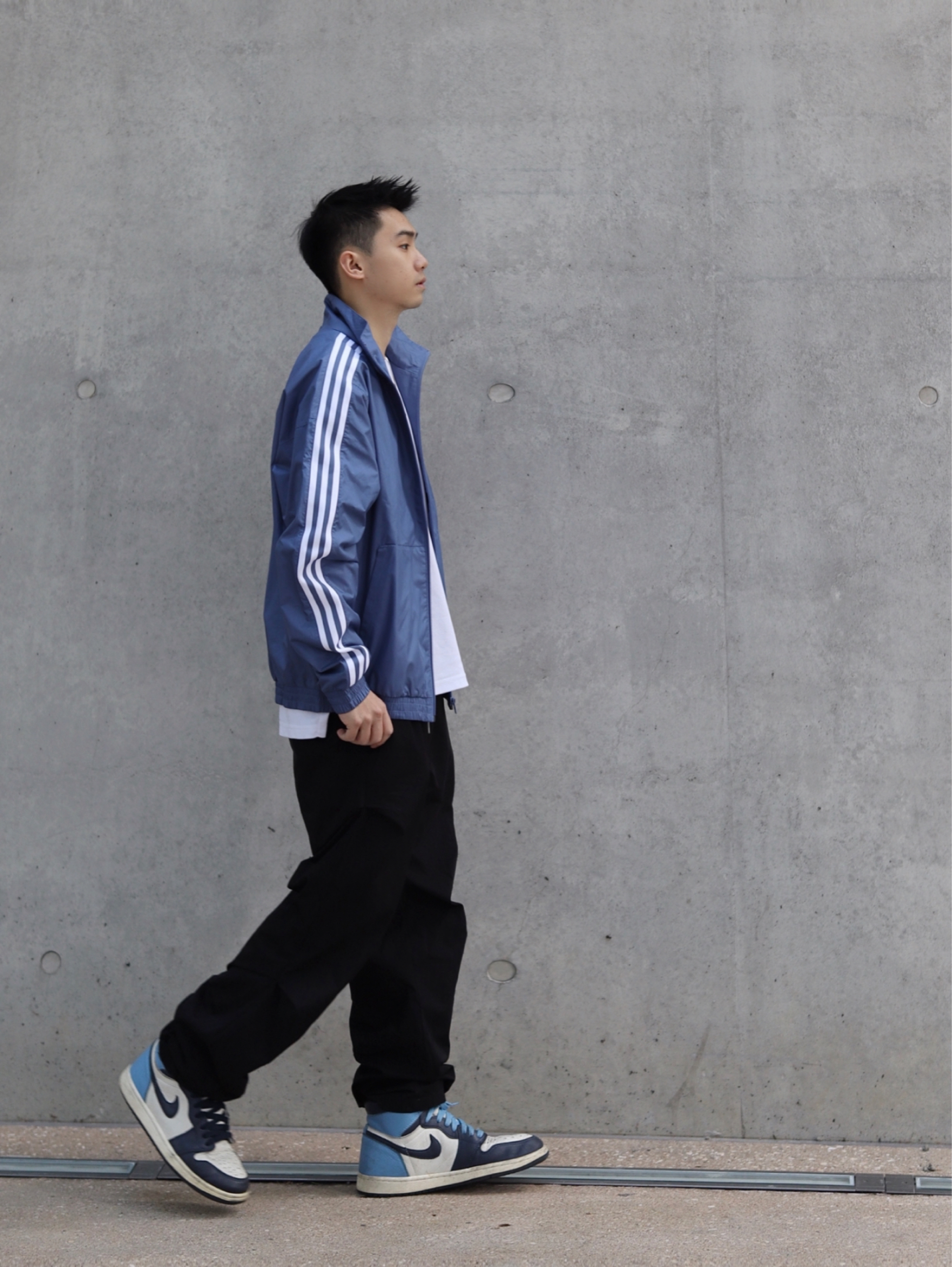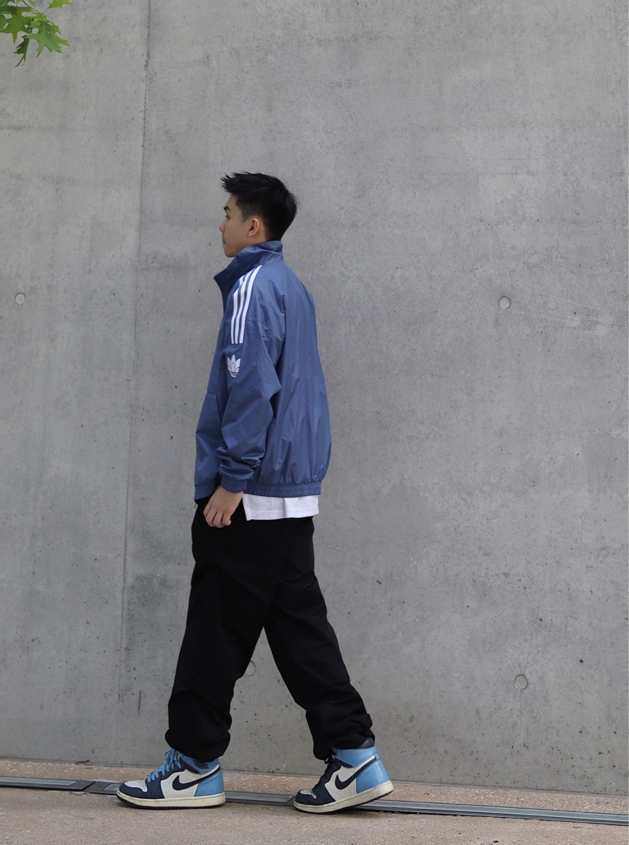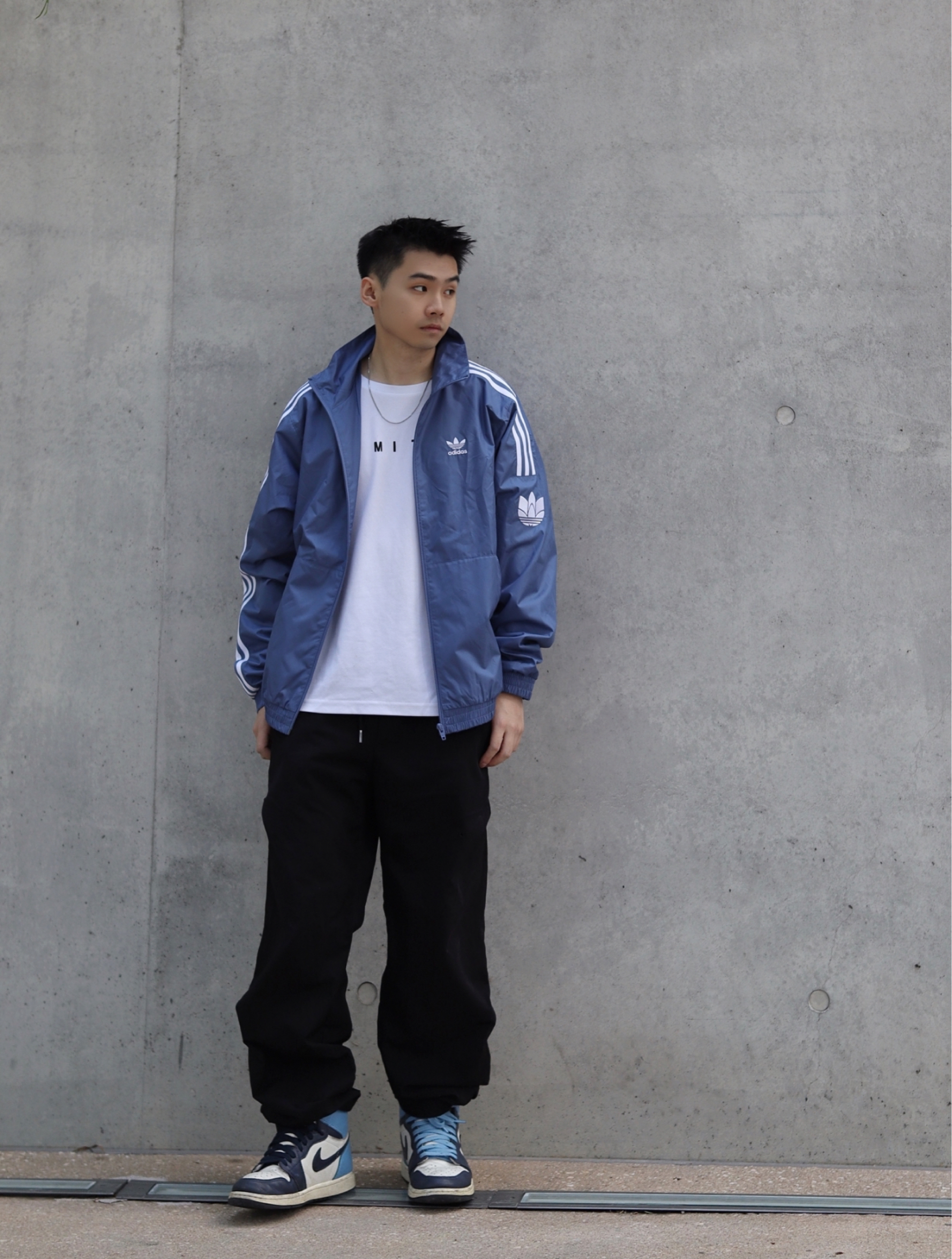 👕:adidas的蓝色夹克,随便搭配一个白色的内搭你就算是把蓝天白云穿在身上啦!松弛感拉满… 👟:aj1黑曜石,也是属于夏天的颜色,上脚舒适,搭配休闲或者运动都可以 🙋🏻♂️:这一身,好不好看你们说了算!