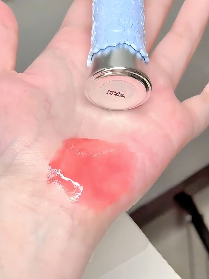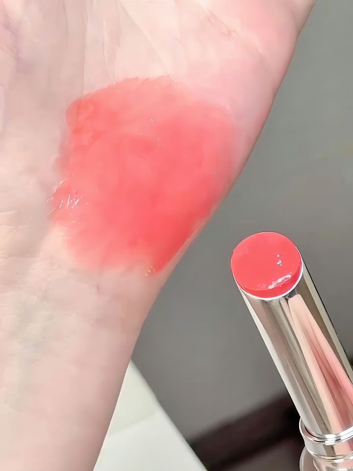 清纯甜美的白月光色 蜜桃色涂上就是嫩~ 有点像夏天冰冰凉凉桃子果茶的感觉 上嘴之后也是果汁感的蜜桃色 上嘴一分钟左右就会形成光泽透亮饱满的膜感 嫩嘟嘟的又很轻薄持久! 反复抿嘴光泽感也还是在的! 夏天涂上这支立马拥有明媚感!