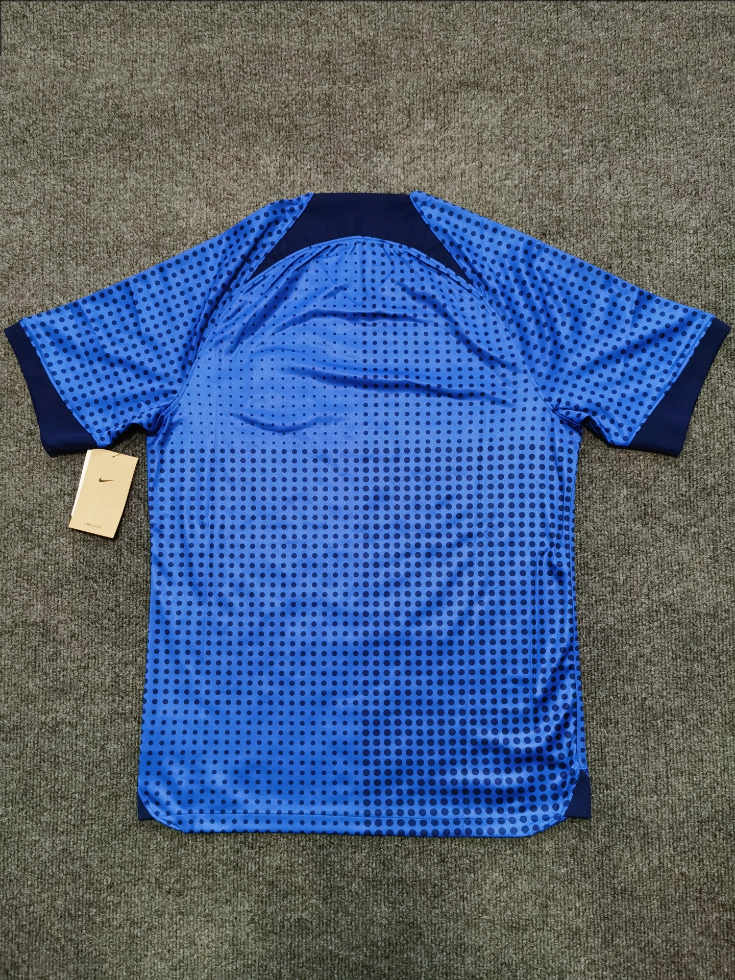 真的太喜欢啦!它属于运动休闲风格🥅 整体的蓝色搭配黑色波点,还有精致的队徽 衣服的颜值很高👍 面料采用梭织工艺,踢足球的时候穿上它再合适不过了
