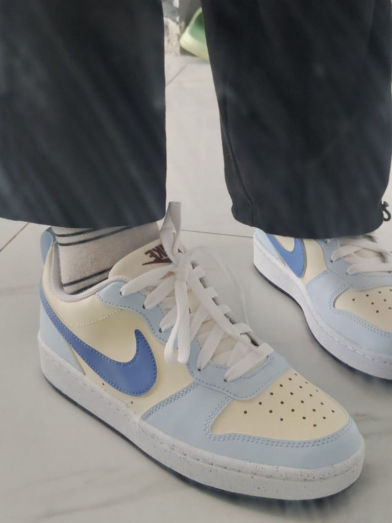 鞋身以灰白为主色调,搭配黑色线条及特殊纹理装饰整体还蛮帅的。鞋面多种材质拼接,皮革材质部分质感细腻,很有好的支撑性和耐用性。鞋底呈现出浅米色,采用橡胶材质,具备一定的耐磨性与抓地力,鞋底的线条设计与整体风格呼应,同时也可能在结构上助力缓震 。搭配衣服日常出街也十分吸睛。