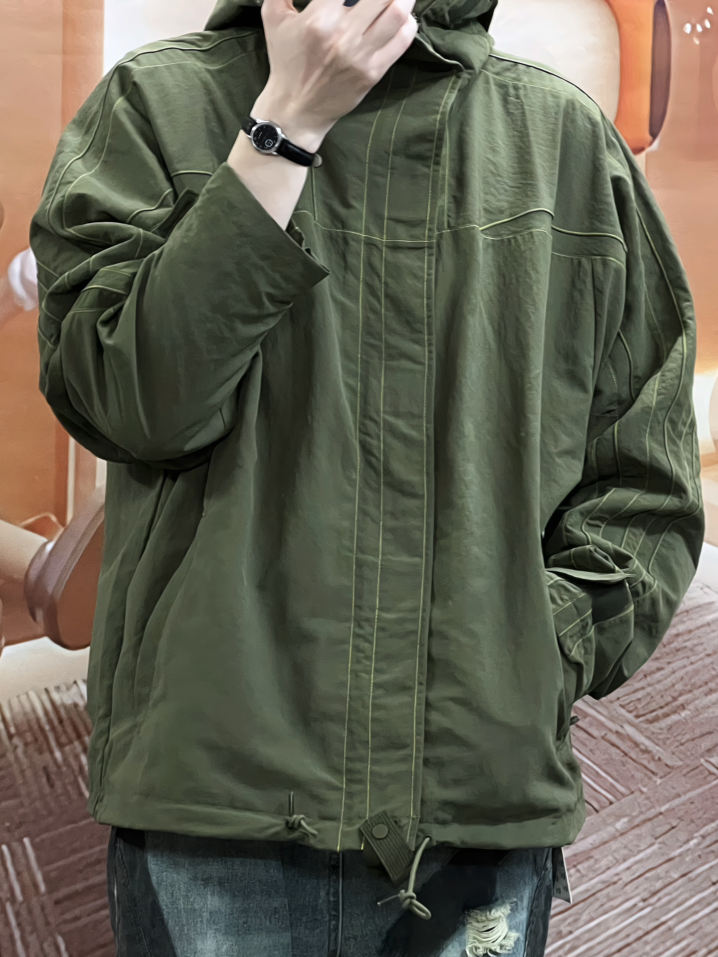 春天就爱绿色系~ 我入了件墨绿色连帽拉链外套🧥,锦纶面料防风,版型合身很舒服。 搭牛仔裤,清爽感直接拉满👍。 缺点就是外套颜色可能不太耐脏,但好看就完事儿啦😄。 图源网络,侵删!
