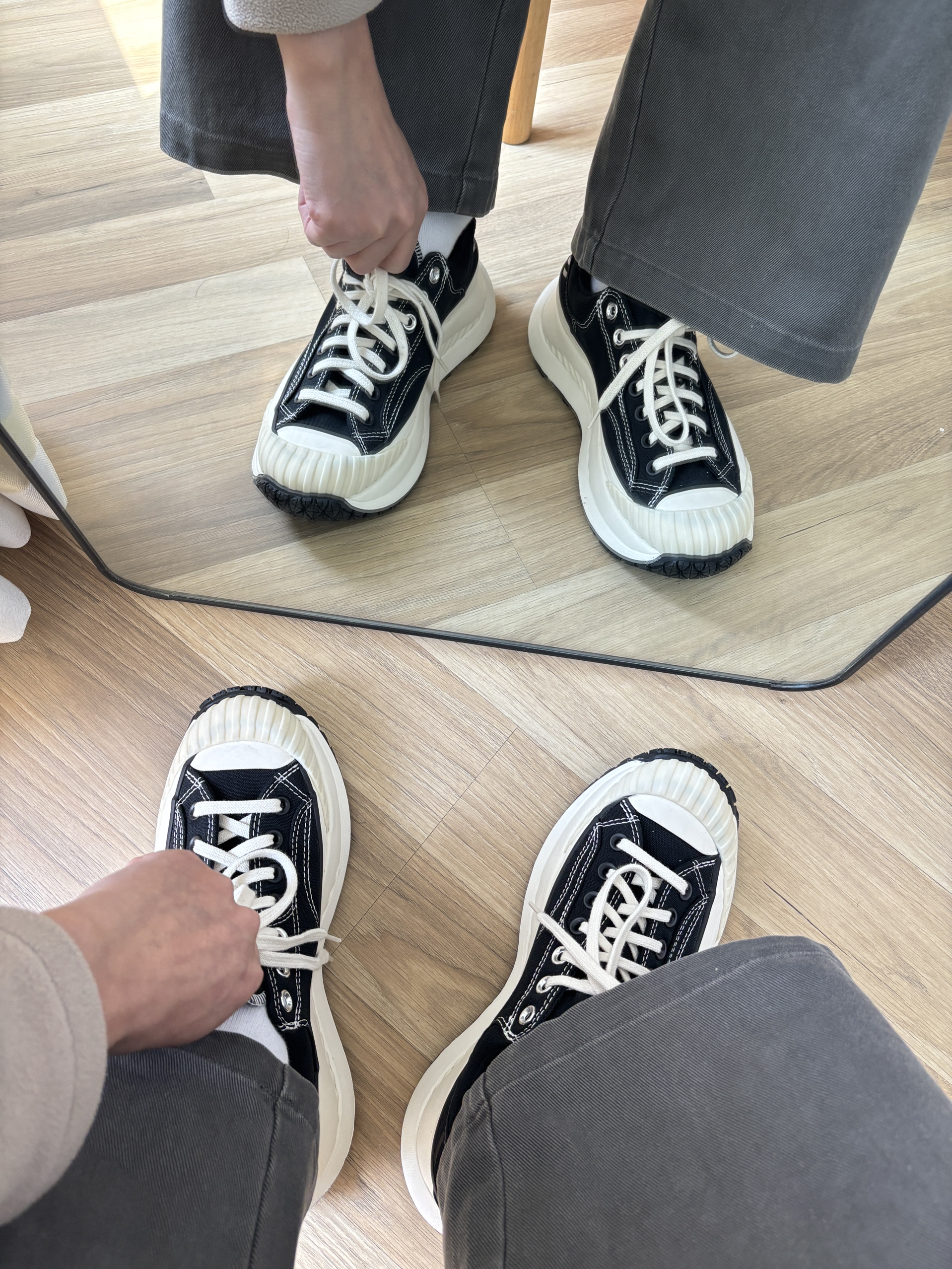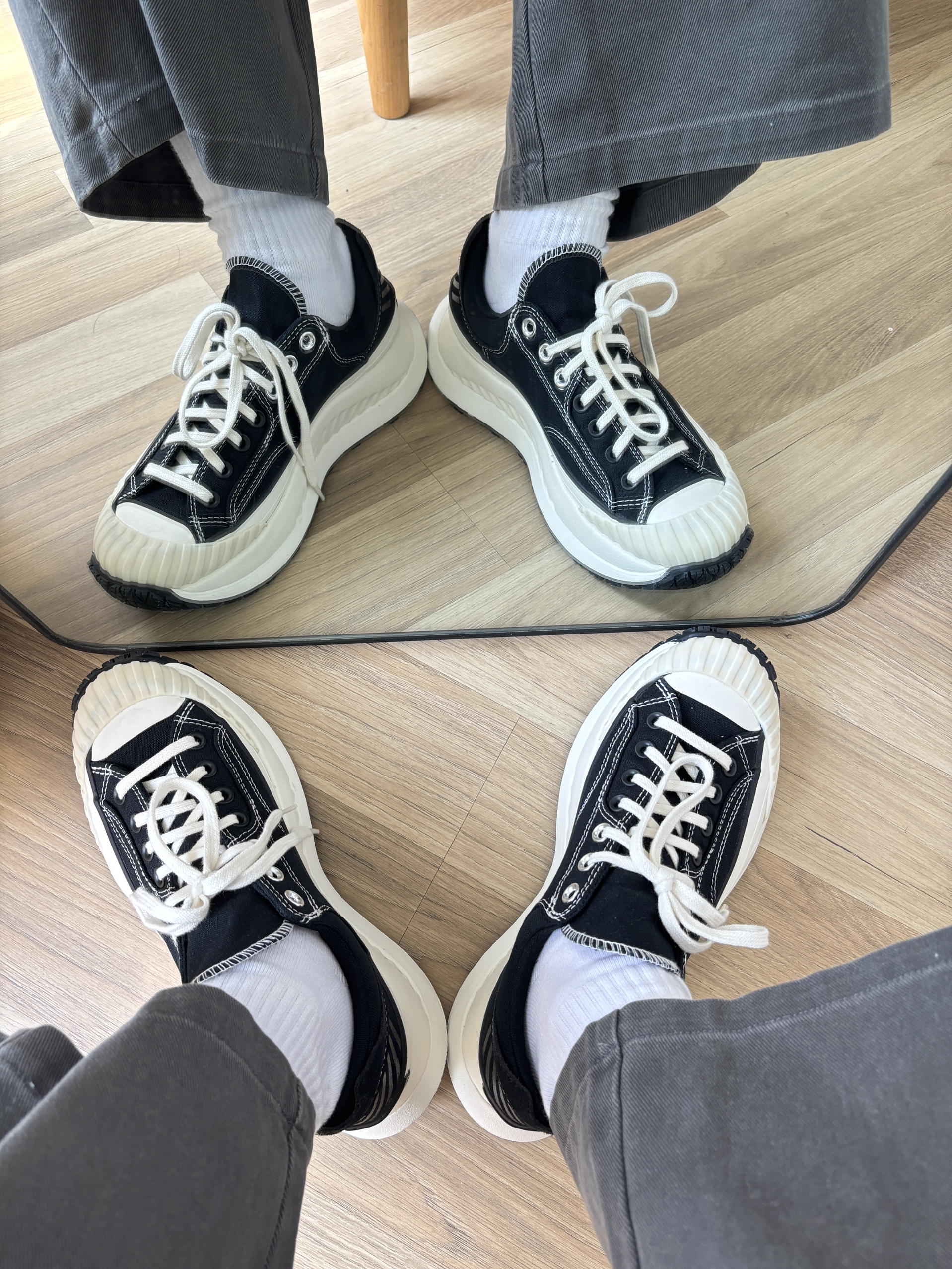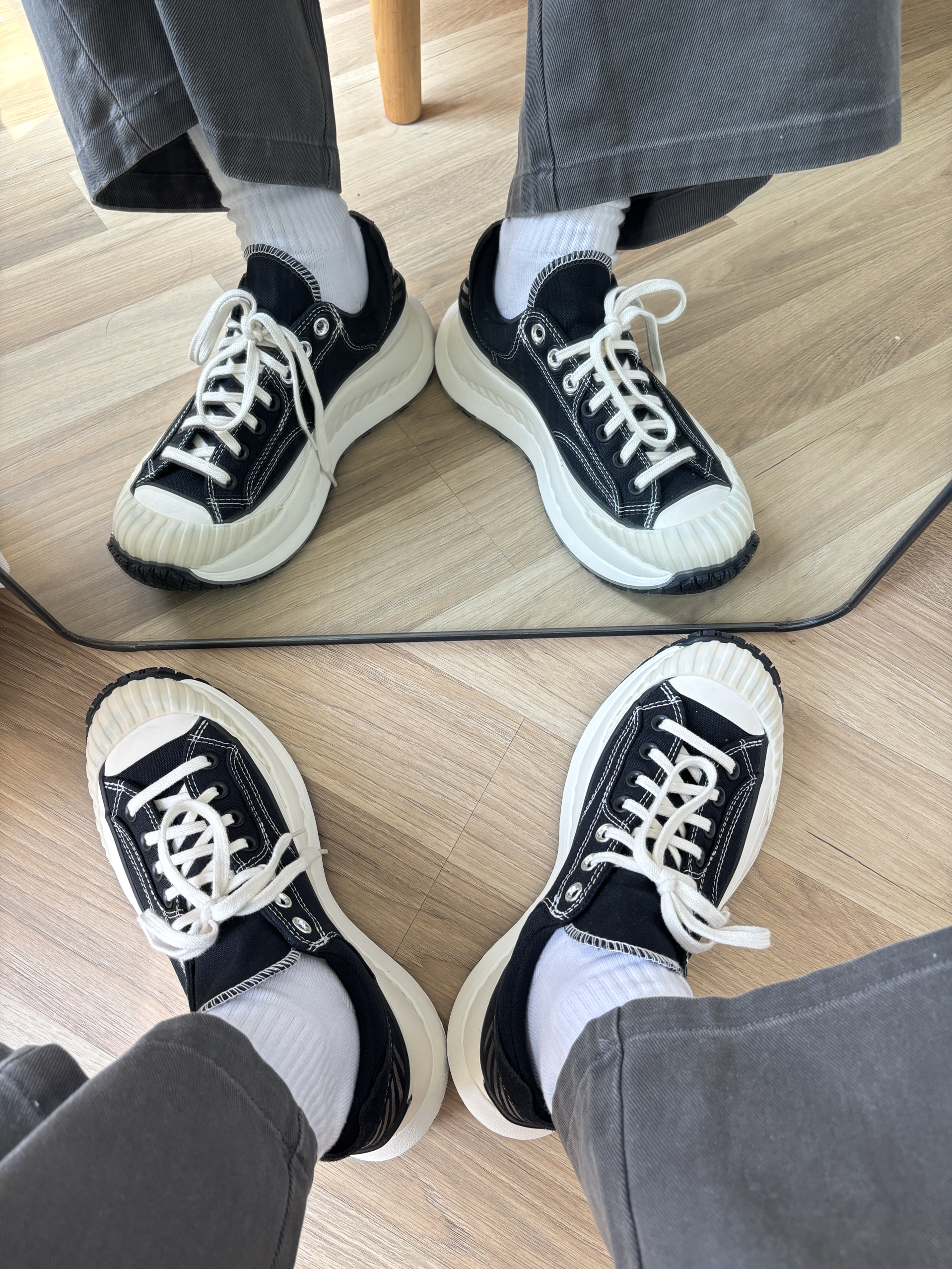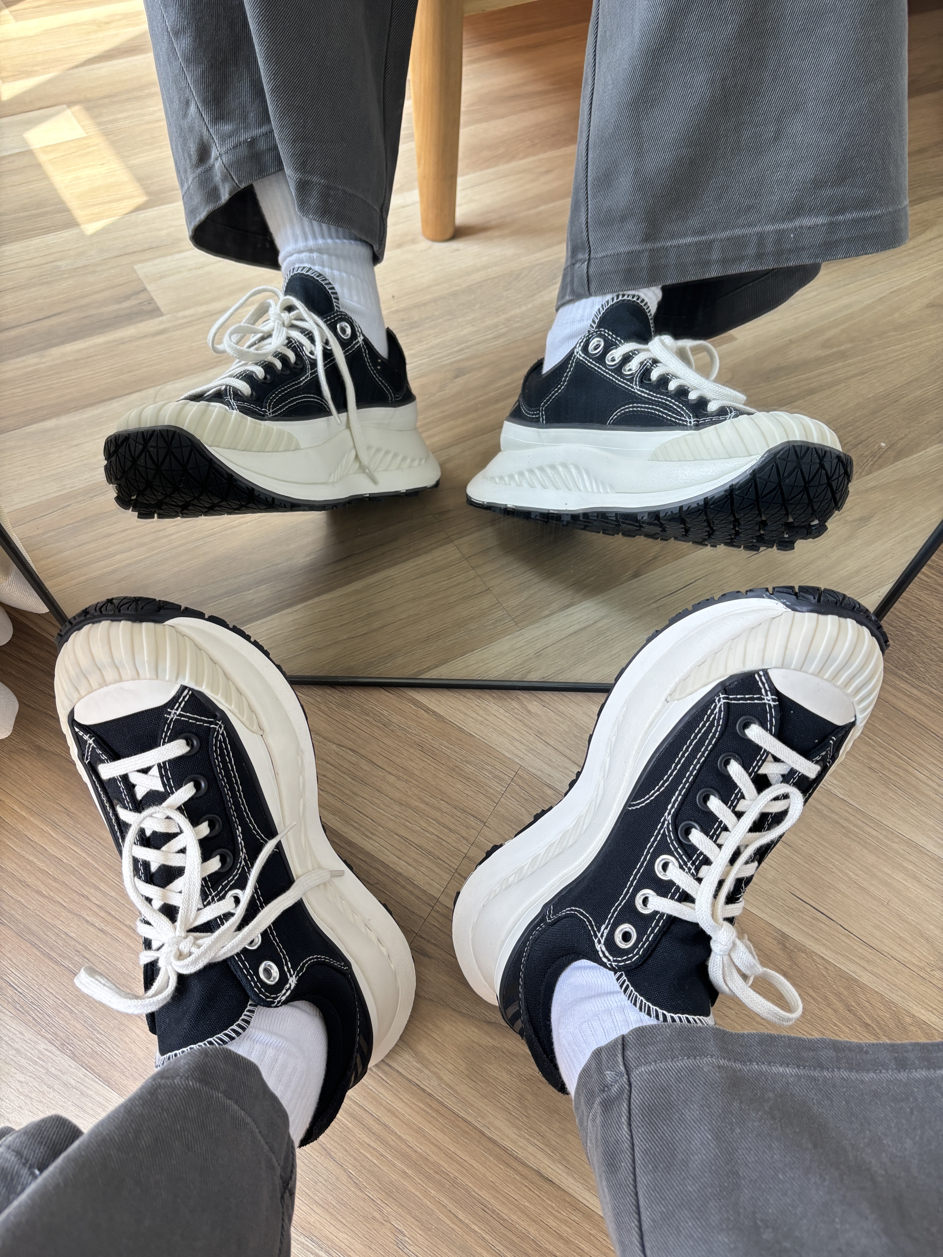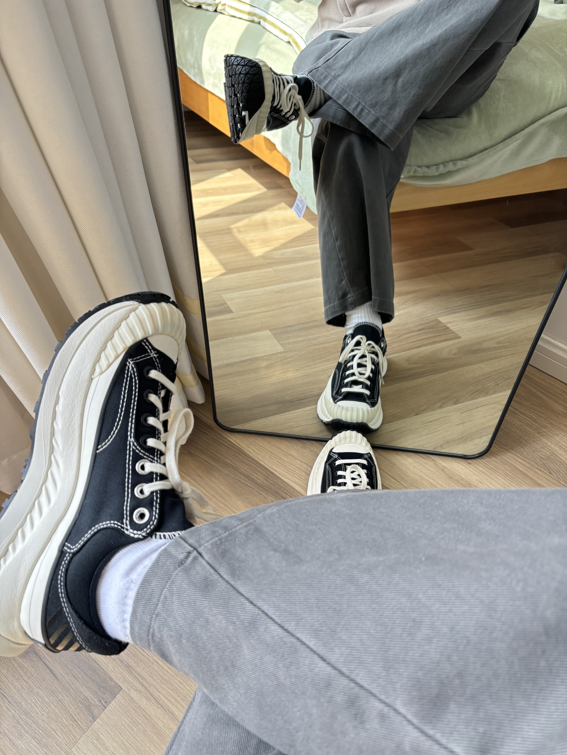 这双匡威真的是太好穿了 鞋底很厚,增高3cm有的 主要是以前匡威的鞋底都很硬,这款很软,像松糕 匡威的鞋子就是好看,搭配起来也很轻松