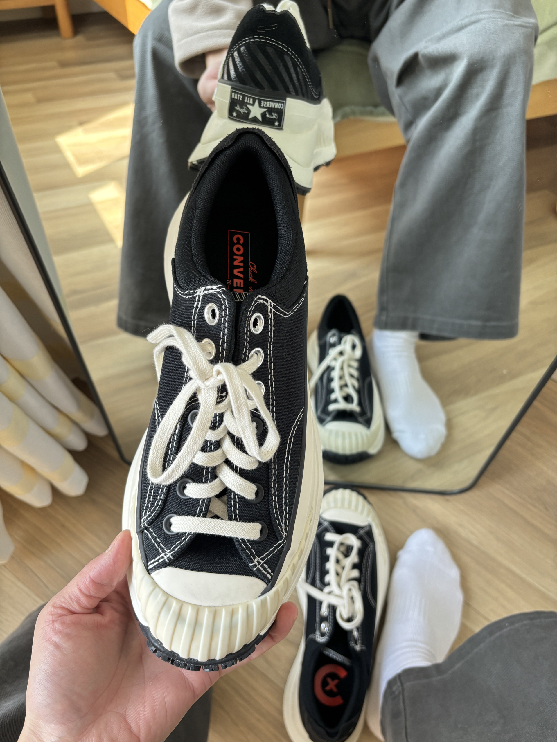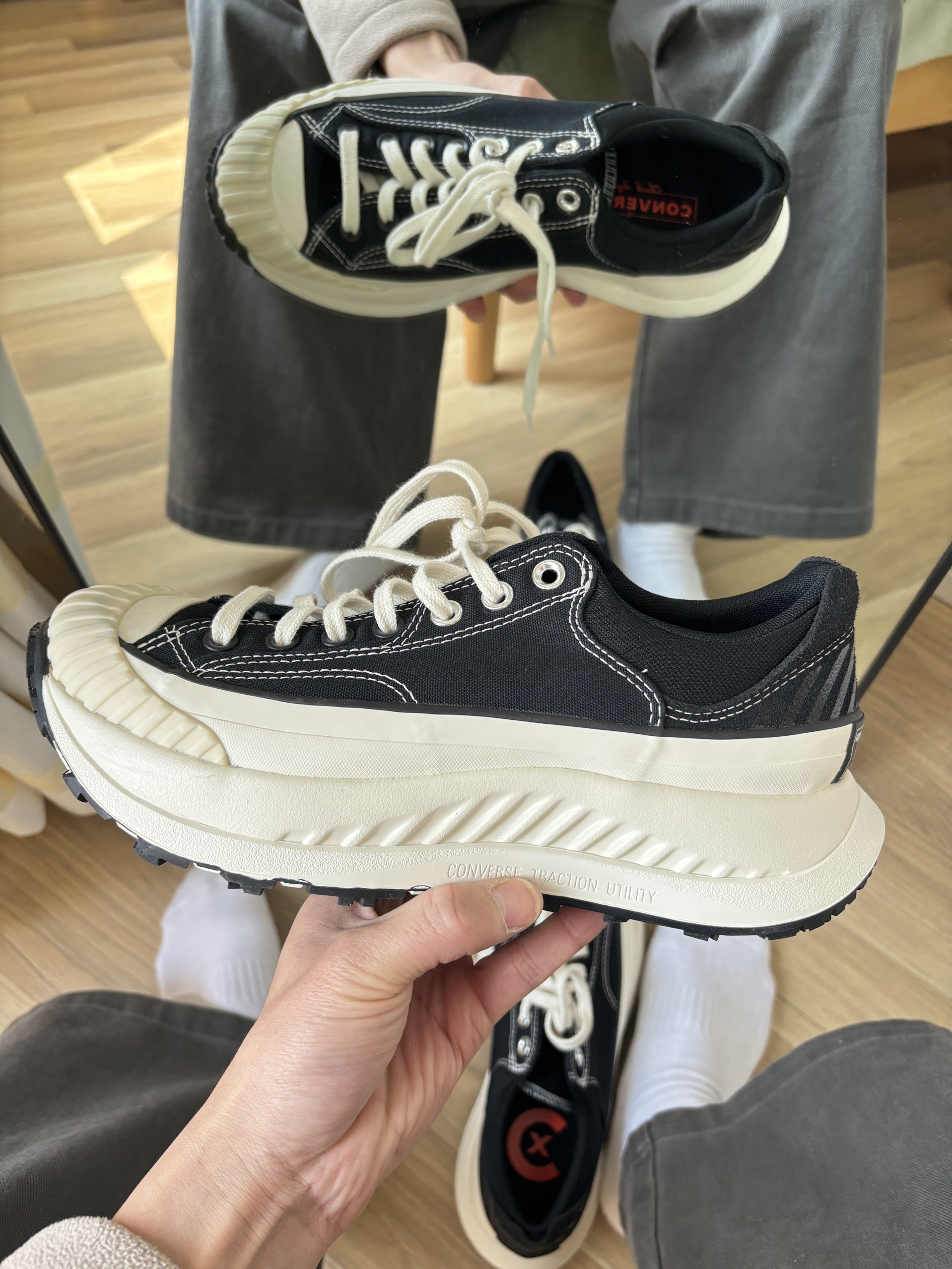 本篇笔记关联了Converse/匡威 Chuck 70 AT-CX 防滑耐磨 皮质 增高 防水 饼干鞋 帆布鞋 低帮/白色/黑色等商品,为用户提供真实的使用体验和购买参考。