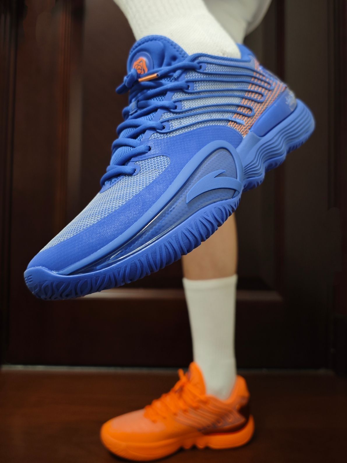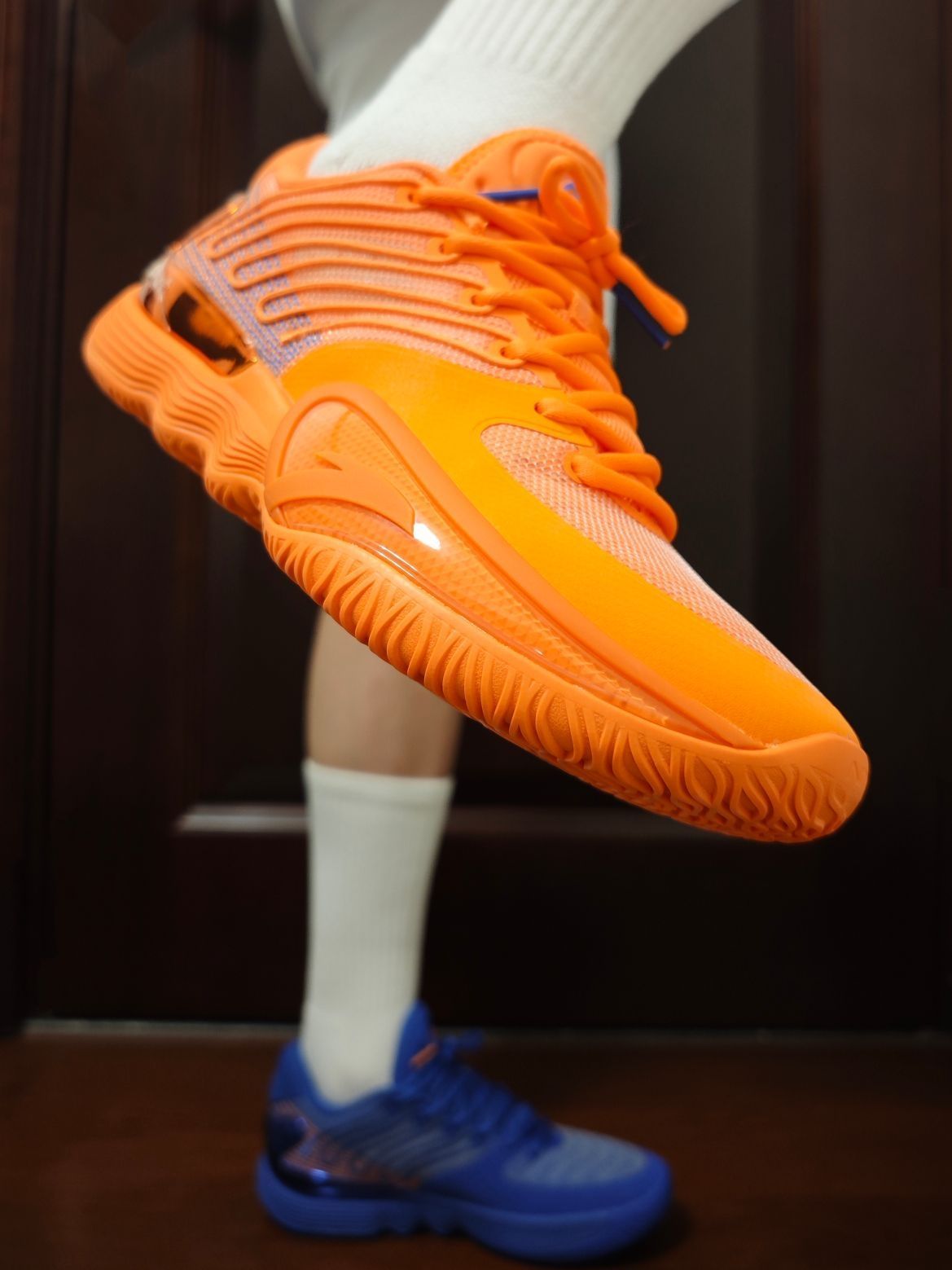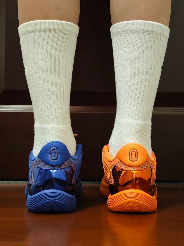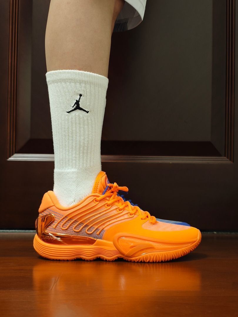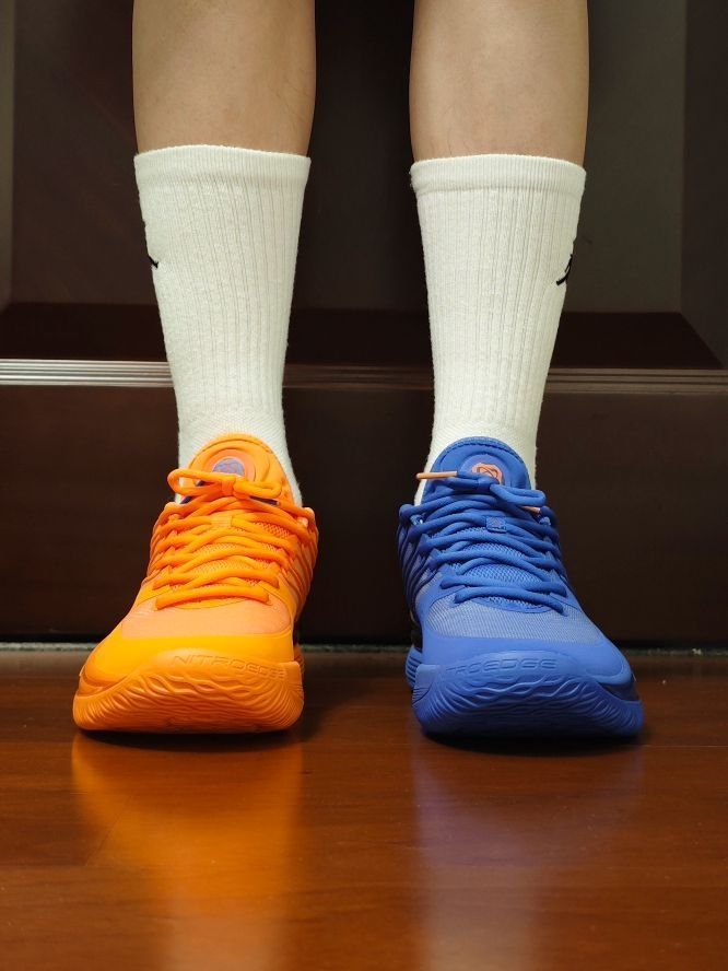 这个系列之前并没有太多留意过,而且颜值不在我的审美点。2代出来后觉得还不错,但价格好像一直也没怎么下来,现在也是懒得再等了,先体验再说吧。 主要还是这个配色,尼克斯的蓝橙真的很好看。鞋后跟的电镀TPU真的闪,我很爱这种能抓人眼球的设计。 脚感说实话,我个人觉得一般。但不知道实战起来表现如何。