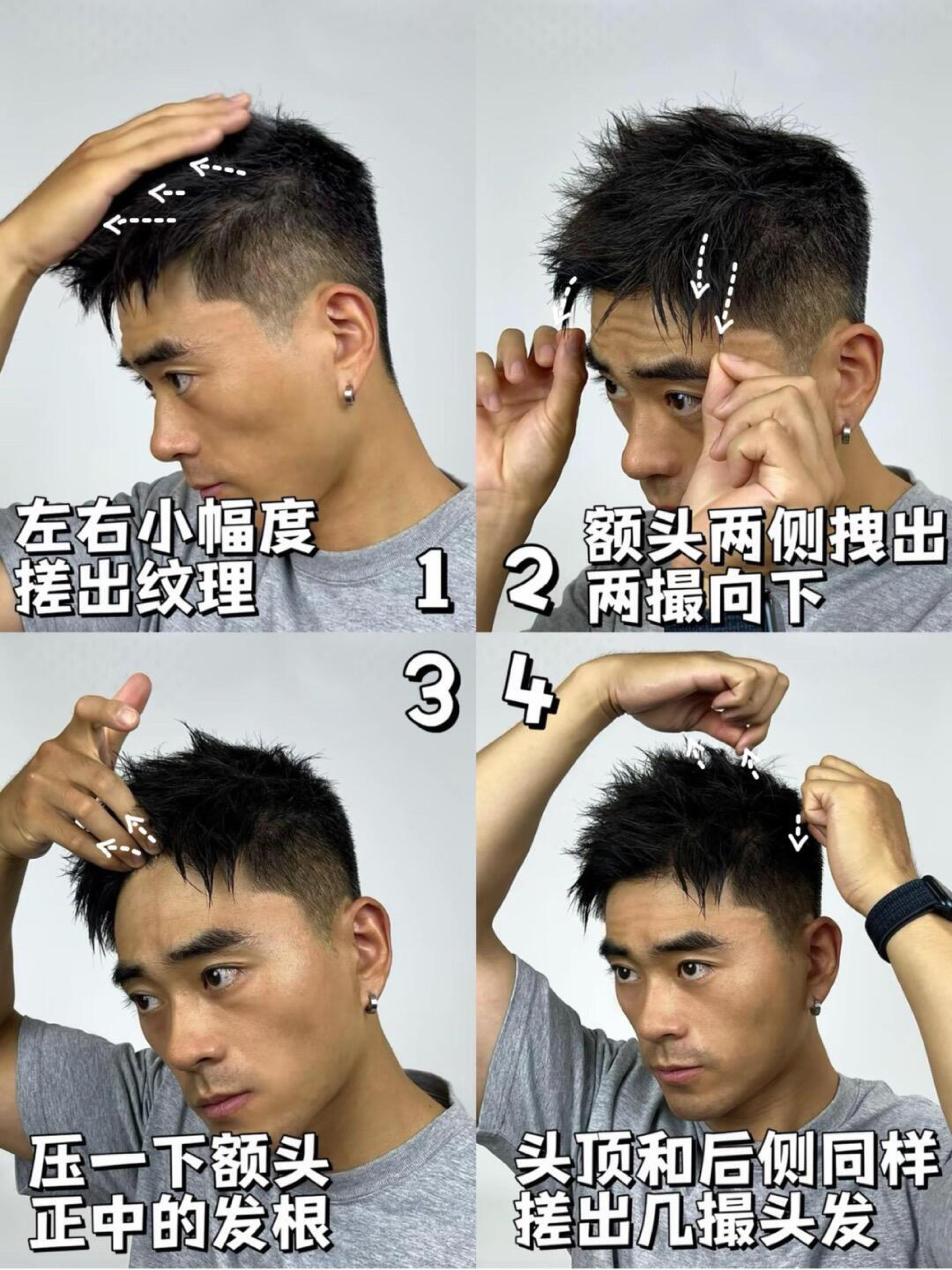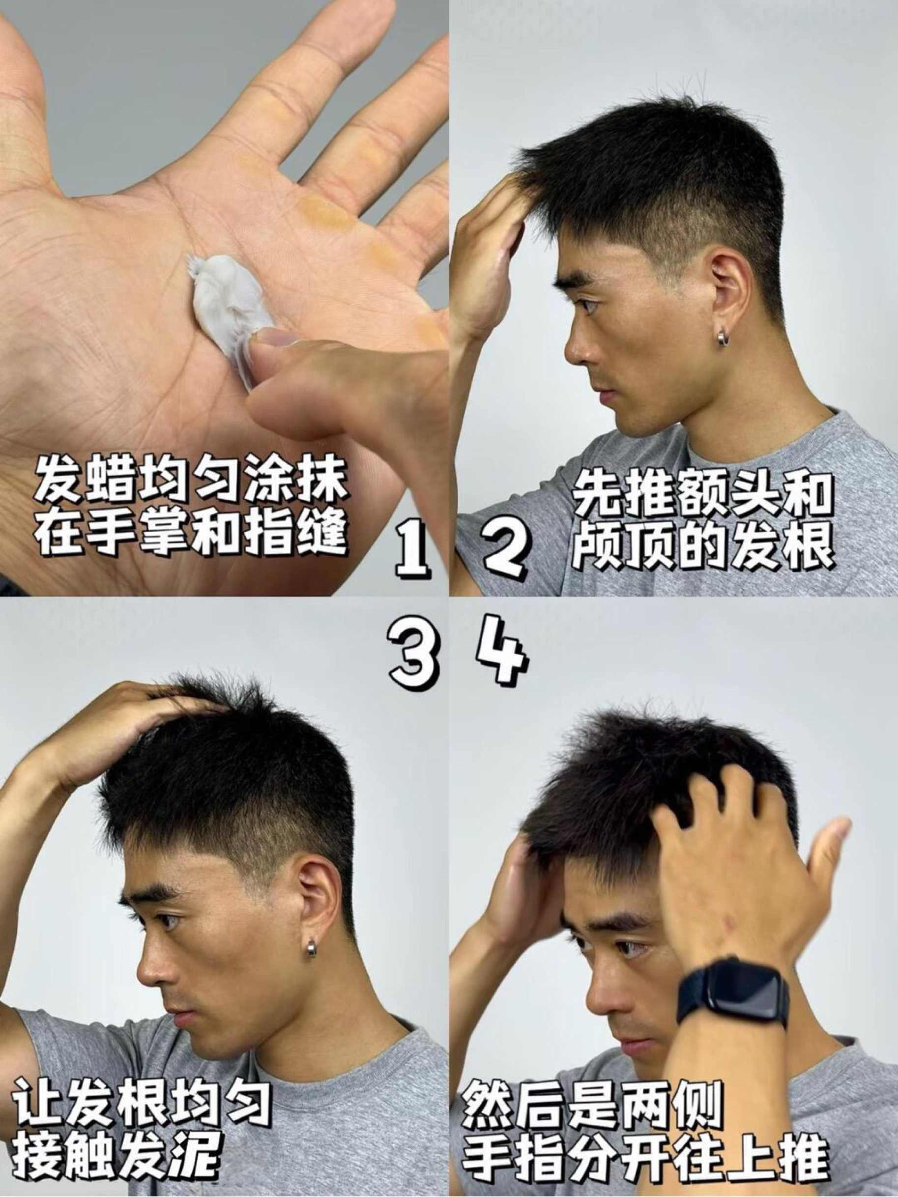 来了来了,关于发型教程被问爆了 个人脸型比较偏瘦长,颧骨有点突出,比较喜欢利落短发 新入手的这发泥真的牛! 不怎么挑发质不说 手残党也能轻松上手 1.先洗个头吹干 2.手指和手掌均匀涂抹发蜡,发质软的不要太多 3.从前往后、从发根往上涂,两侧也是、 4.单手左右轻轻下压,左右搓出纹理 5.再根据个人爱好调整一下细节