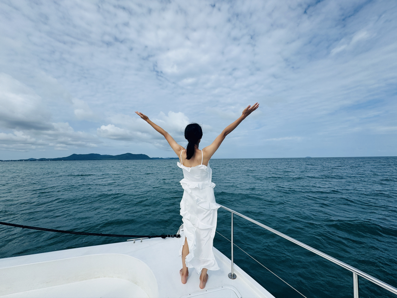 海边素素的,也是酷酷的 爱自己是终身的主题 我可是太飒了嘿嘿嘿😼可甜可酷,在泰国的游艇上 拍到了人生照片! 🛒好物名称:白色裙子👗 🤔推荐理由:不仅适合海边 其他场景也适合,好搭配!显身材,胸部位置也不会露,面料很好,有很大的垂感!