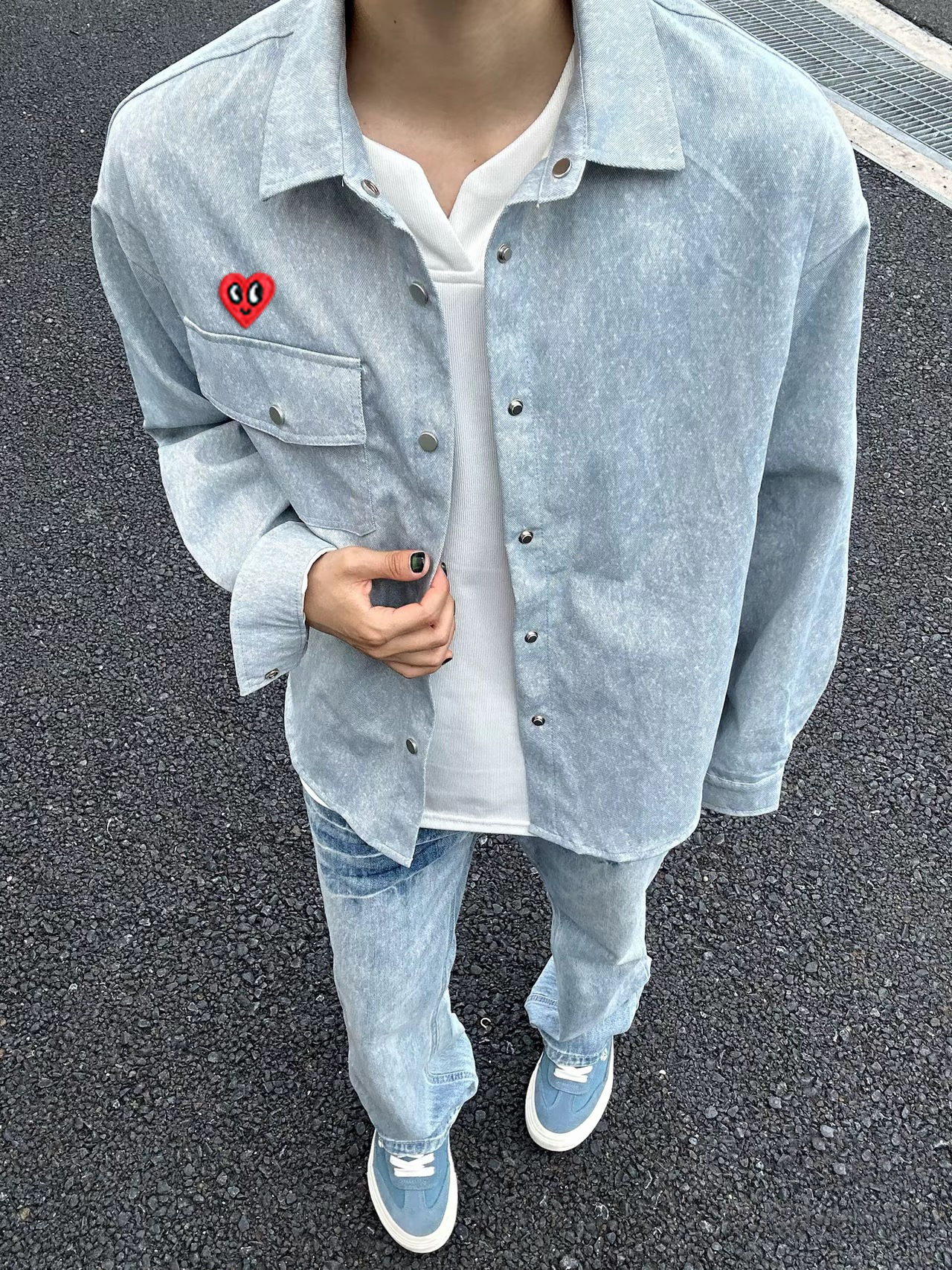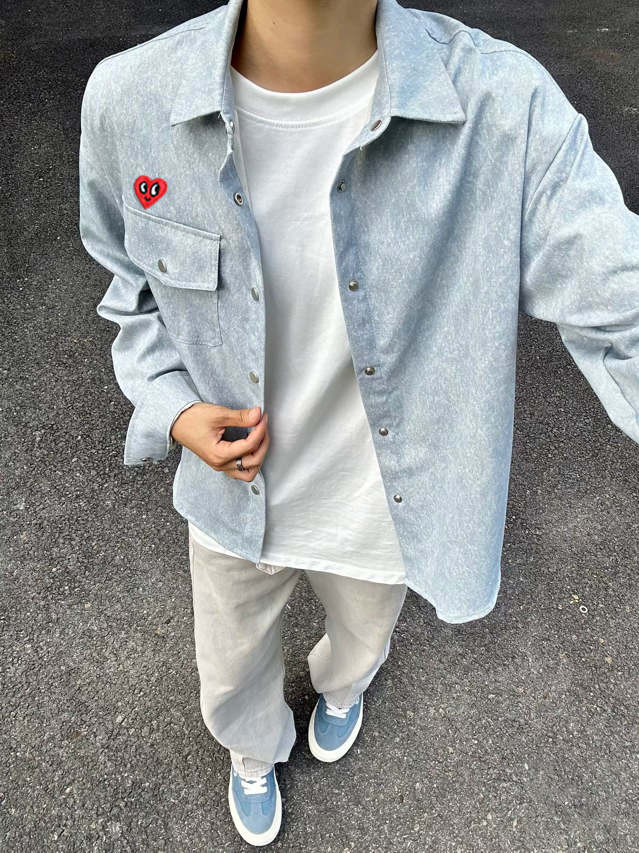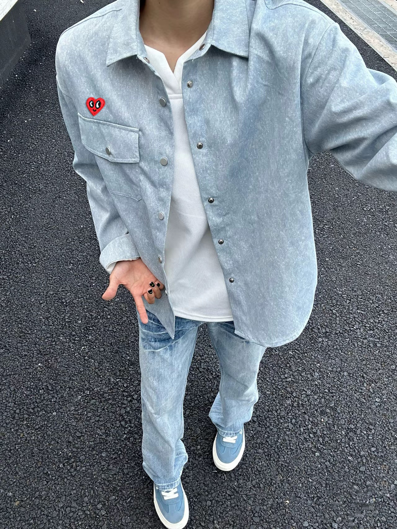 浅蓝色显白又高级,面料是带点粗粝感的棉麻混纺,越穿越有味道那种~
