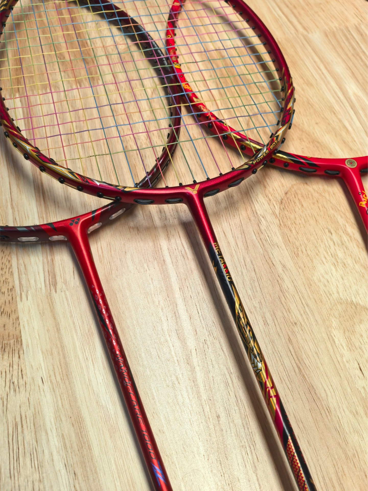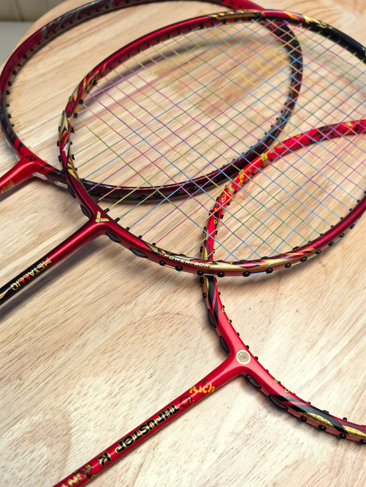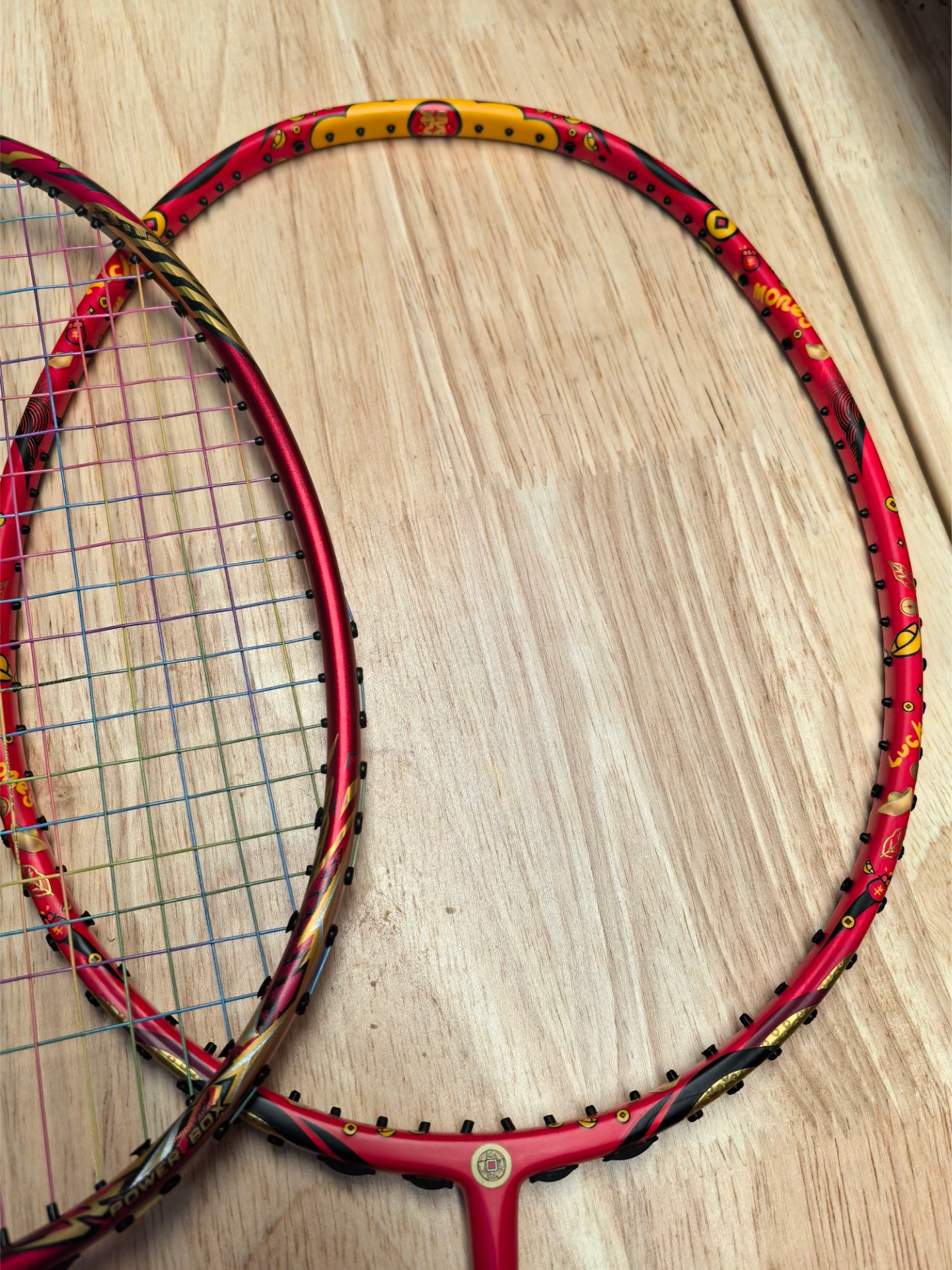 家人们,最近入了几款超好看的羽毛球拍🤩!有一款红黑搭配超有质感,拿在手上感觉自己都变厉害了~另一款上面有个“發”字,喜庆得很🎊。不过呢,好看是好看,价格也有点小贵🥹。看这图片里它们摆一起,真是赏心悦目~大家觉得哪款颜值更能打呀🙋♀️?