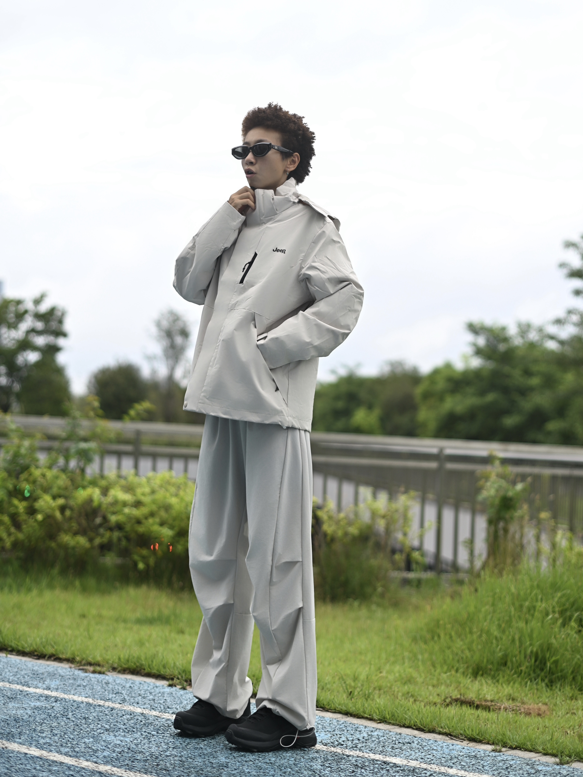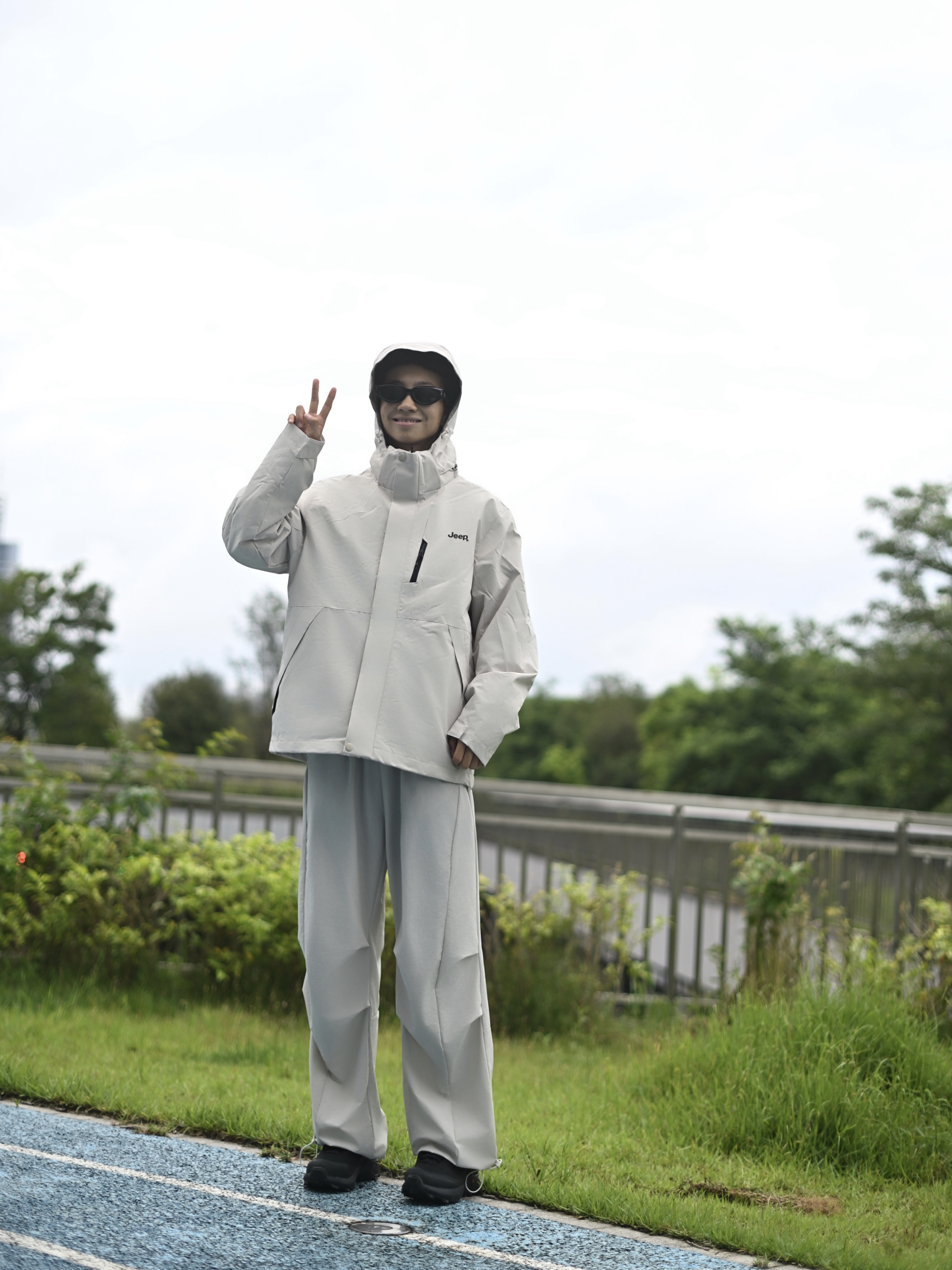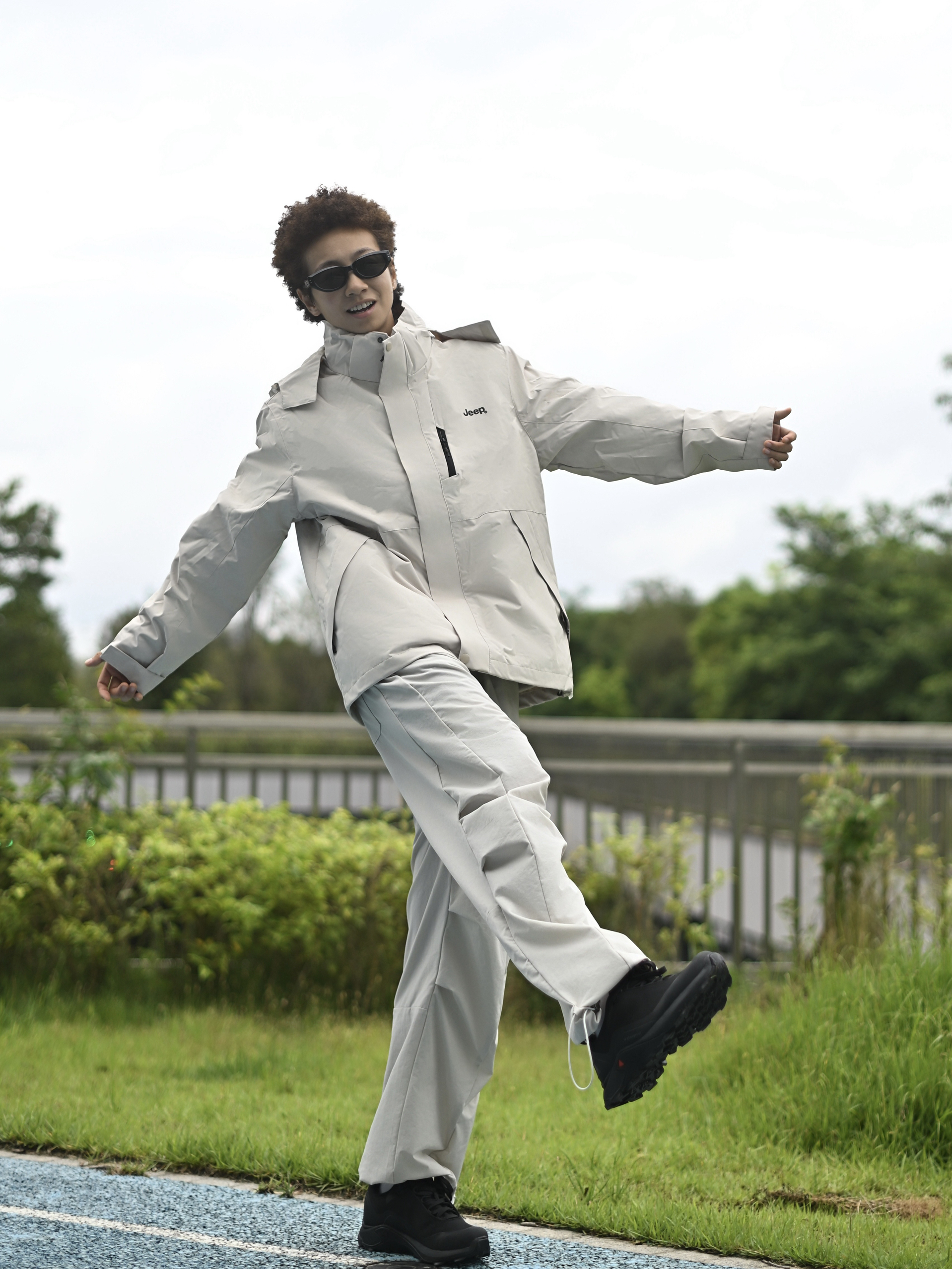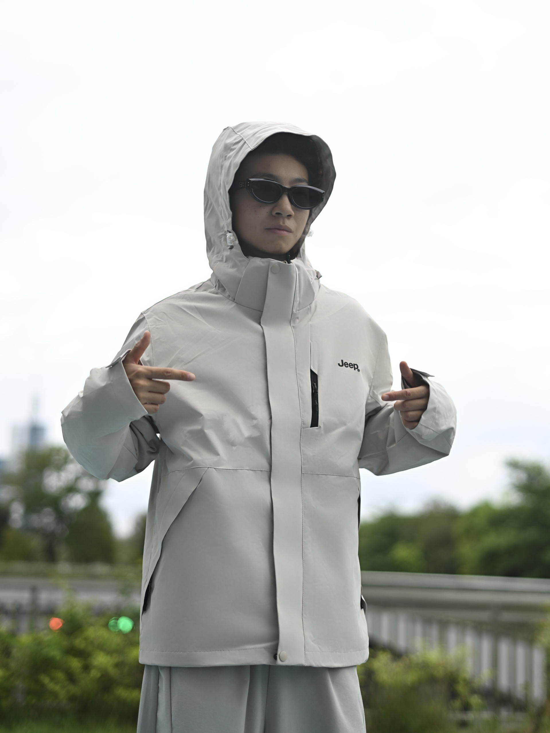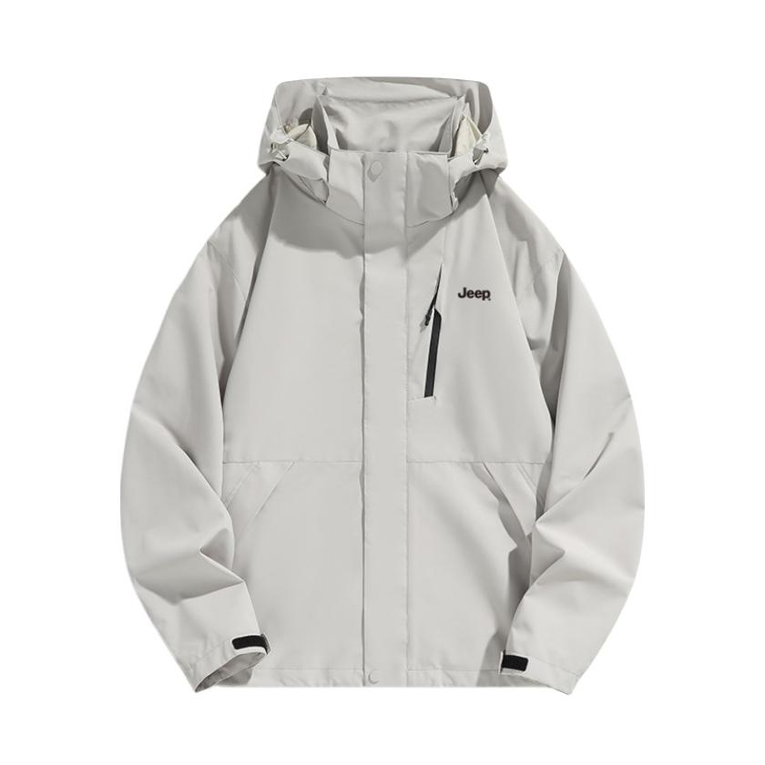 欢迎进入无敌小圆哇子的穿搭分享频道 172CM|55KG 👔:m👖:m|👟:39码 玩转户外机能! 上身jeep浅色系冲锋衣外层 轻量防泼水面料,应对骤雨毫无压力; 内胆可拆卸设计,高温时单穿外套透气不黏身, 下装配同色系工装裤 穿上黑色徒步鞋压住整体浅调 去户外咯~