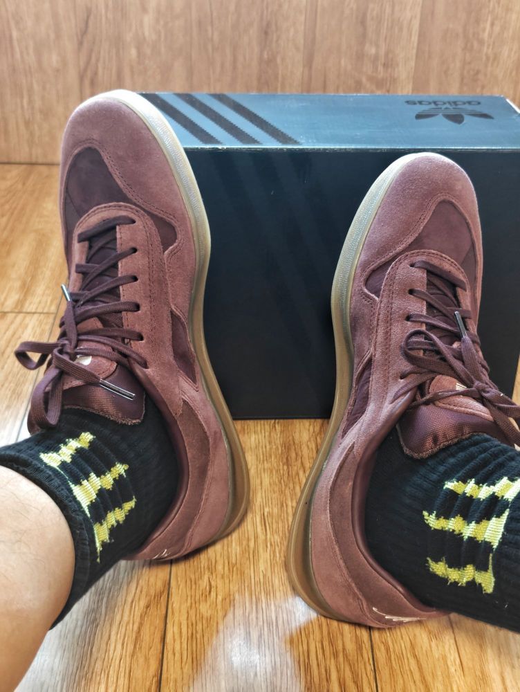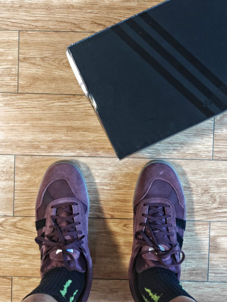 最近很流行德训鞋,于是我也尝试了一双,上脚3天今天给朋友讲讲这双三叶草德训鞋的使用体验。 不像功能鞋,德训鞋作为日常休闲鞋外观+舒适度才是卖点。很难得个人觉得这两点这双都具备。 紫色翻毛材质搭配黑色三道杠真的更好搭配,我觉得很漂亮! 而且男女同款姑娘们也很适用! 防滑大底还是没什么问题,完全日常生活够用! 我穿了三天日常通勤特别舒服,每天8000步左右一点不觉得累! 如果非要找个问题那就是翻毛...