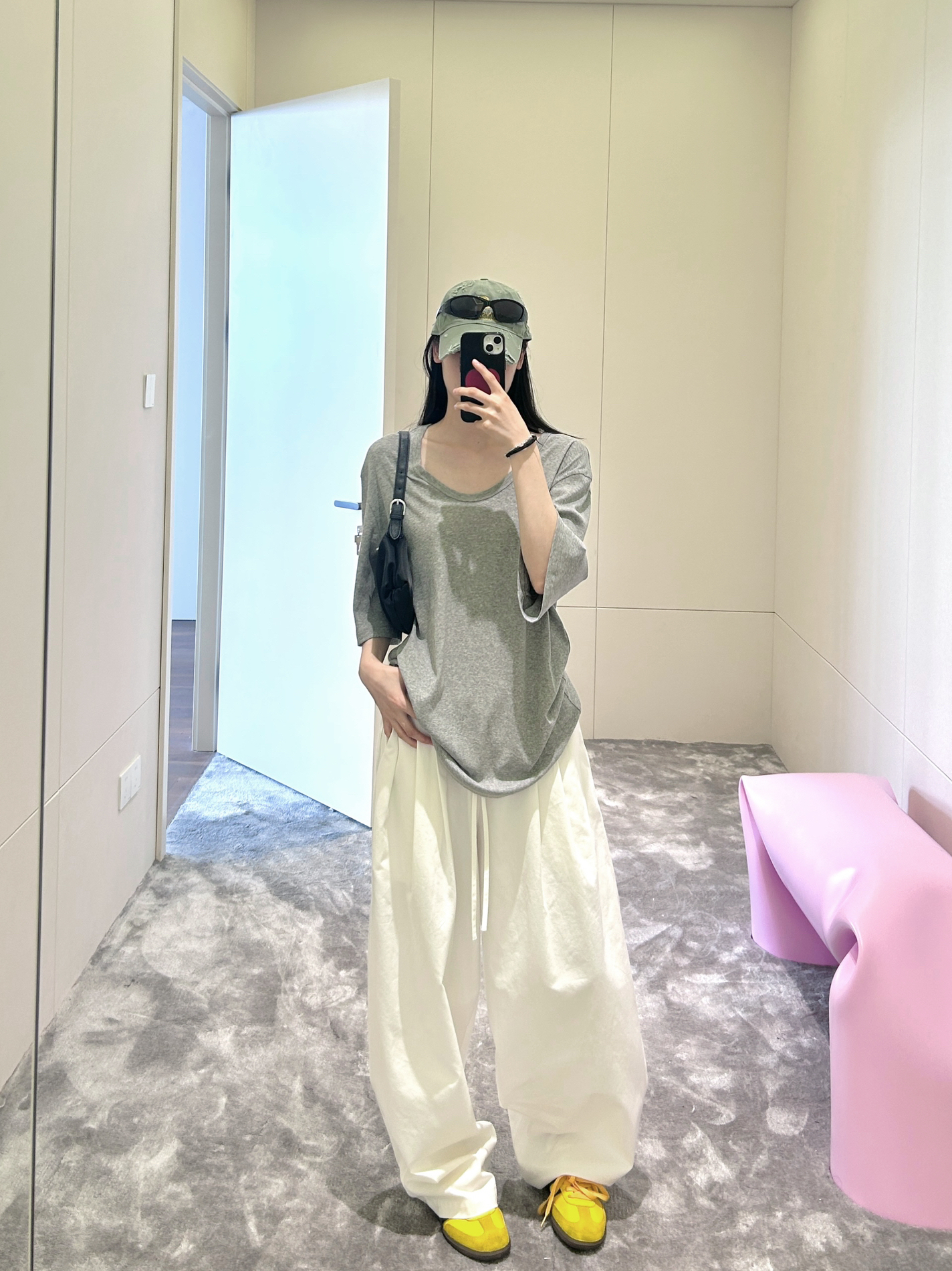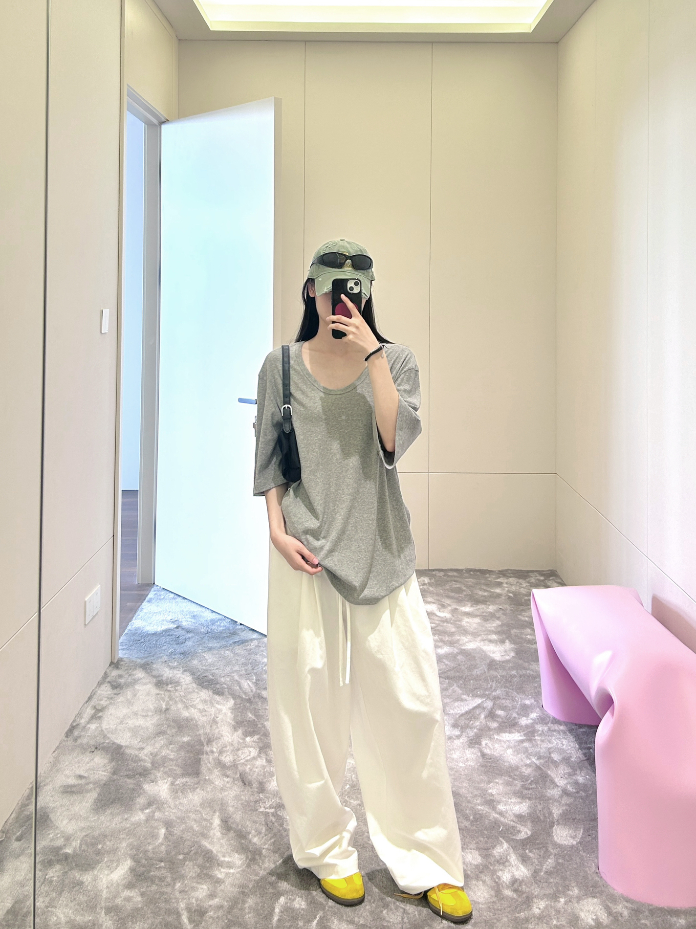浅灰V领Tee自带随性基因 慵懒廓形藏着不费力的时髦 米白阔腿裤一整个把“松弛感”焊死 走路带风的气场拿捏🤏 亮色小鞋鞋跳出沉闷 街头感和时髦度直接拉满 日常出街、citywalk 穿它 随手拍都是自带滤镜的时尚片📷