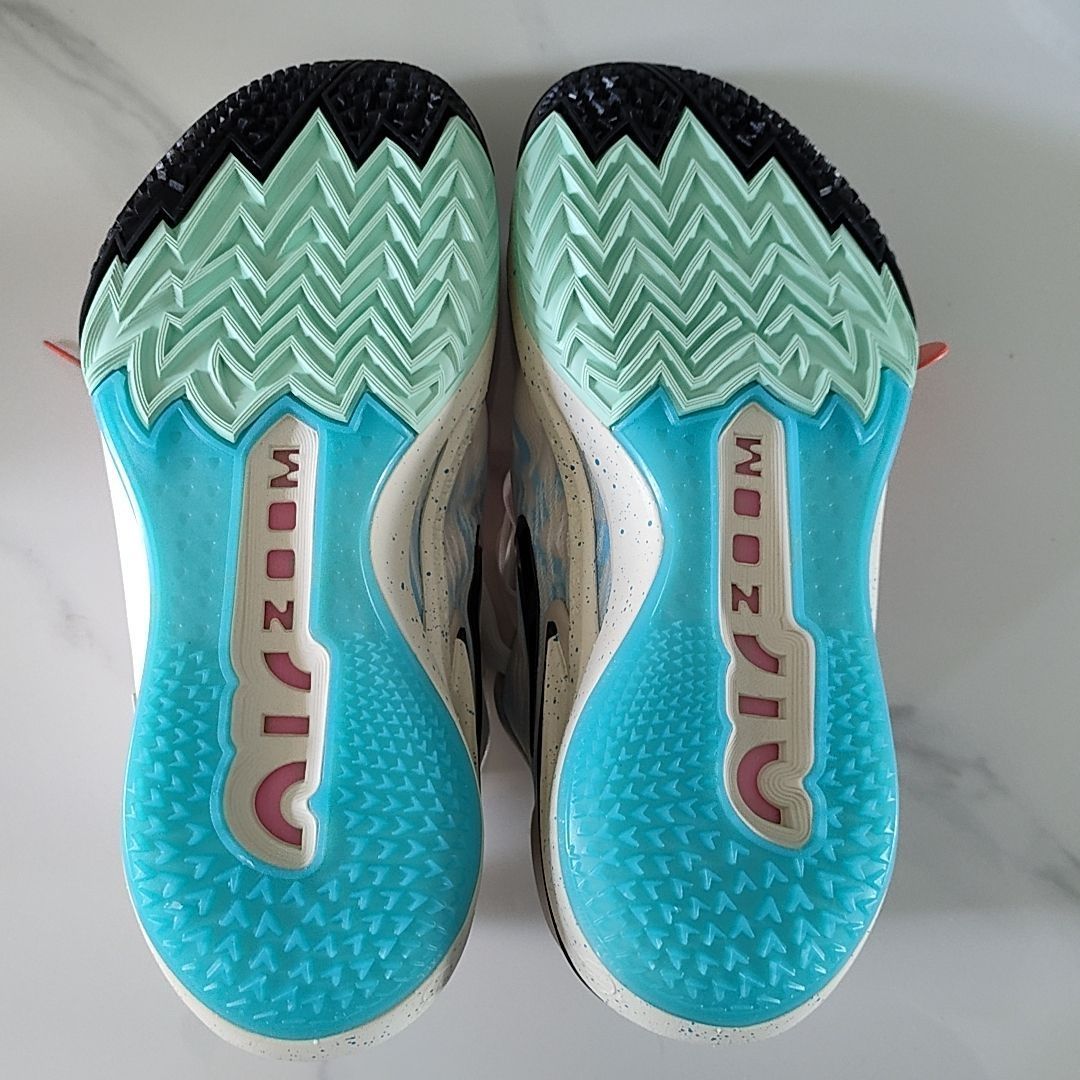 GT Cut 2在缓震方面的表现堪称惊艳。前掌搭载的Zoom Air气垫反馈灵敏,为球员在突破、急停等瞬间动作提供了强劲的助推力,让启动更加迅速。全掌React泡棉则带来了柔软且稳定的缓震感受,在落地时能够有效地吸收冲击力,减少对膝盖和脚踝的压力。即便是长时间的高强度比赛,双脚也能始终保持舒适,缓震效果不会出现明显的衰减,为球员的每一次跳跃和奔跑提供可靠的保障 。