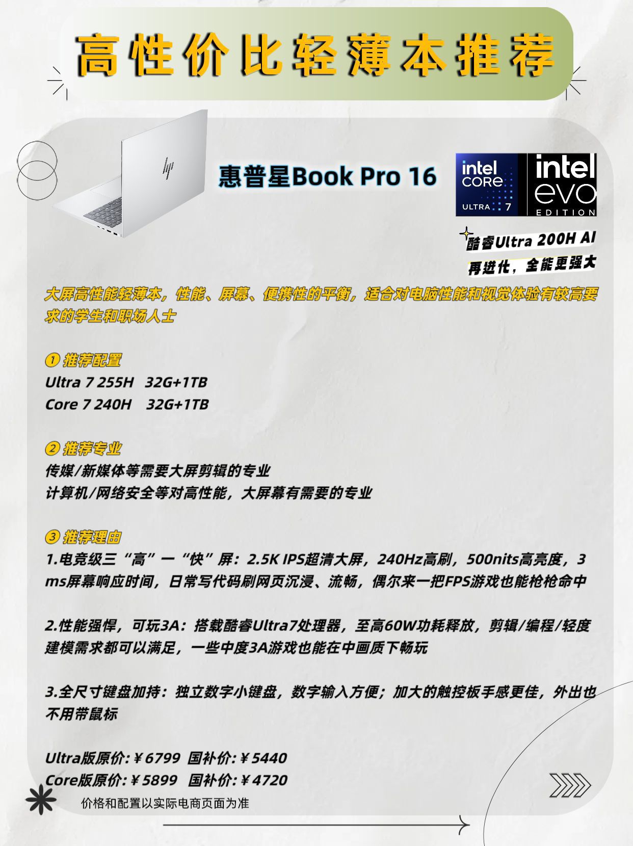 本篇笔记关联了HP/惠普 星Book Pro 16 酷睿版 2025款 16英寸 笔记本 100%sRGB 70Wh电池容量 银色 AI战力本、HP/惠普 星Book Pro 14 酷睿版 2025款 14英寸 笔记本 单色背光键盘 人脸识别 月光银、HP/惠普 星Book Pro 14 酷睿版 2025款 14英寸 笔记本 单色背光键盘 人脸识别 山雨灰等商品,为用户提供真实的使用体验和购买参考。