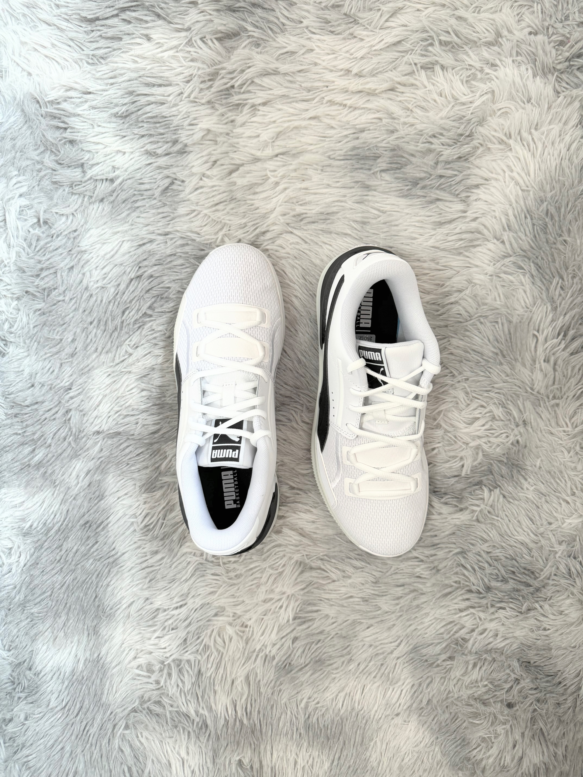 彪马这款篮球鞋堪称“口粮鞋”典范👍,定价亲民,作为高频穿着的实战鞋,性价比突出,穿坏替换也无压力💸。 尺码选择上,正常脚型按常码入手即可👟,脚宽者建议选大半码,整体更适配脚型偏窄人群。上脚略沉,脚感适中,但缓震表现一般,大体重人群需谨慎考虑⚠️。鞋面采用网眼布与皮革拼接,透气性惊喜✨;不过鞋底耐磨性欠佳,更适合室内场地,水泥地易磨损💔。 其优势在于性价比高、颜值出众(黑白配色简约耐看😎),且兼...