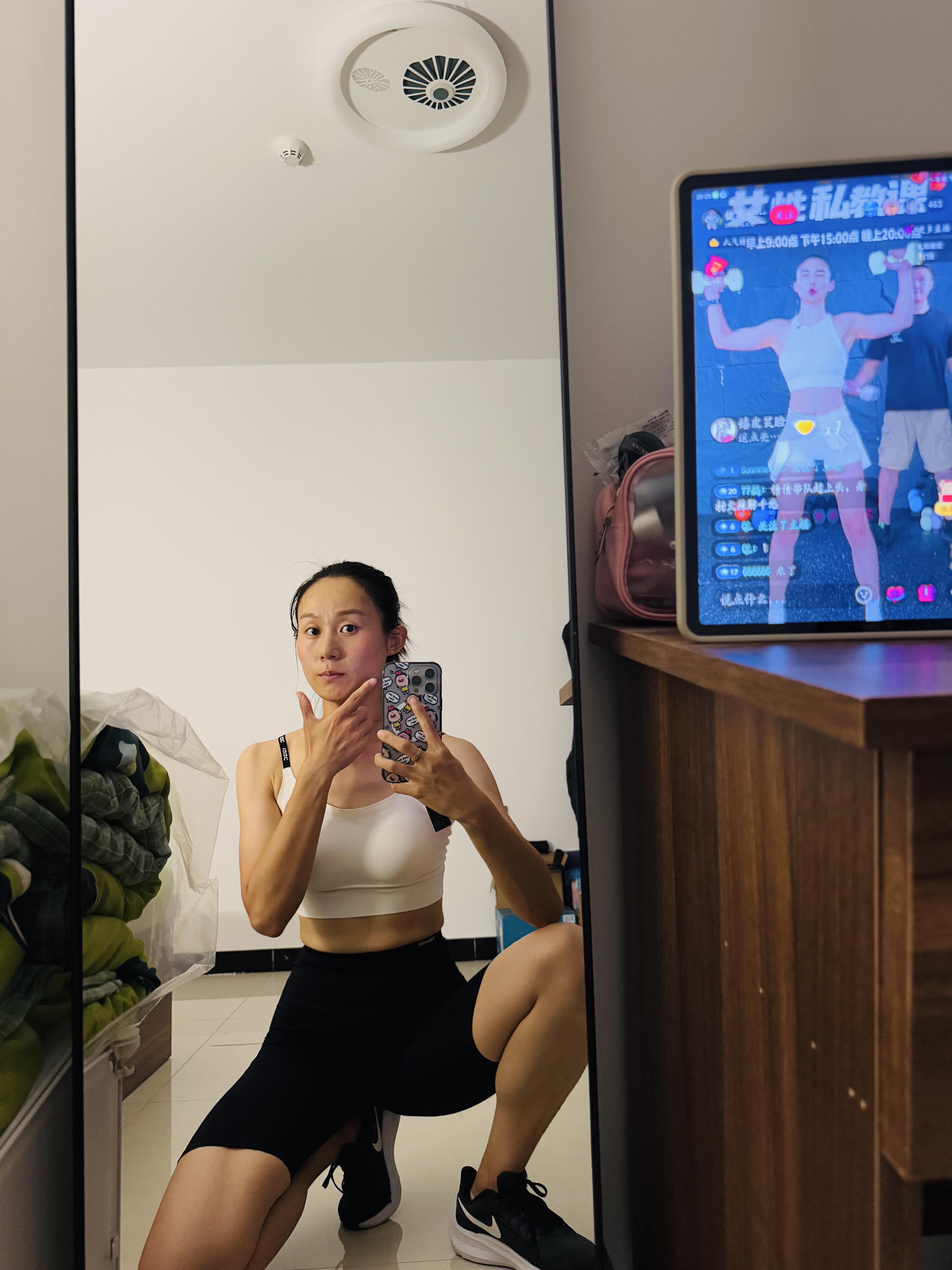 身高|体重:165 50 🧍♂️ 穿搭风格:运动风 👔 上衣:的确奇运动文胸、361运动文胸 👖 下装:misswiss鲨鱼裤 👟 鞋子:耐克飞马29 🎒配饰:最喜欢的手机壳 大屁羊子哈哈哈🤣