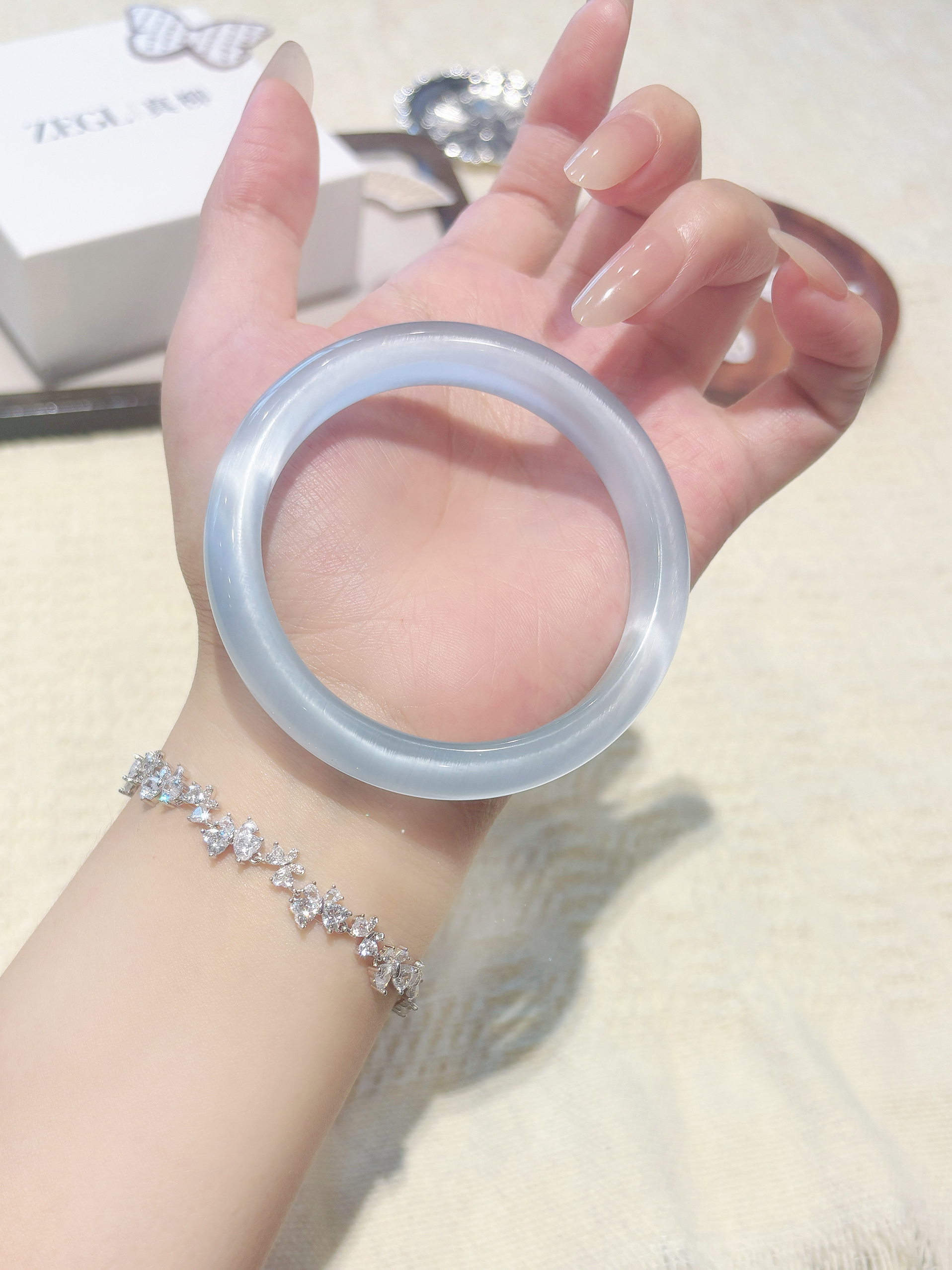 本篇笔记关联了ZENGLIU/ZEGL 紫藤花微笑满钻锆石手链 WS46096 银色、白月光猫眼石手镯 基础色等商品,为用户提供真实的使用体验和购买参考。