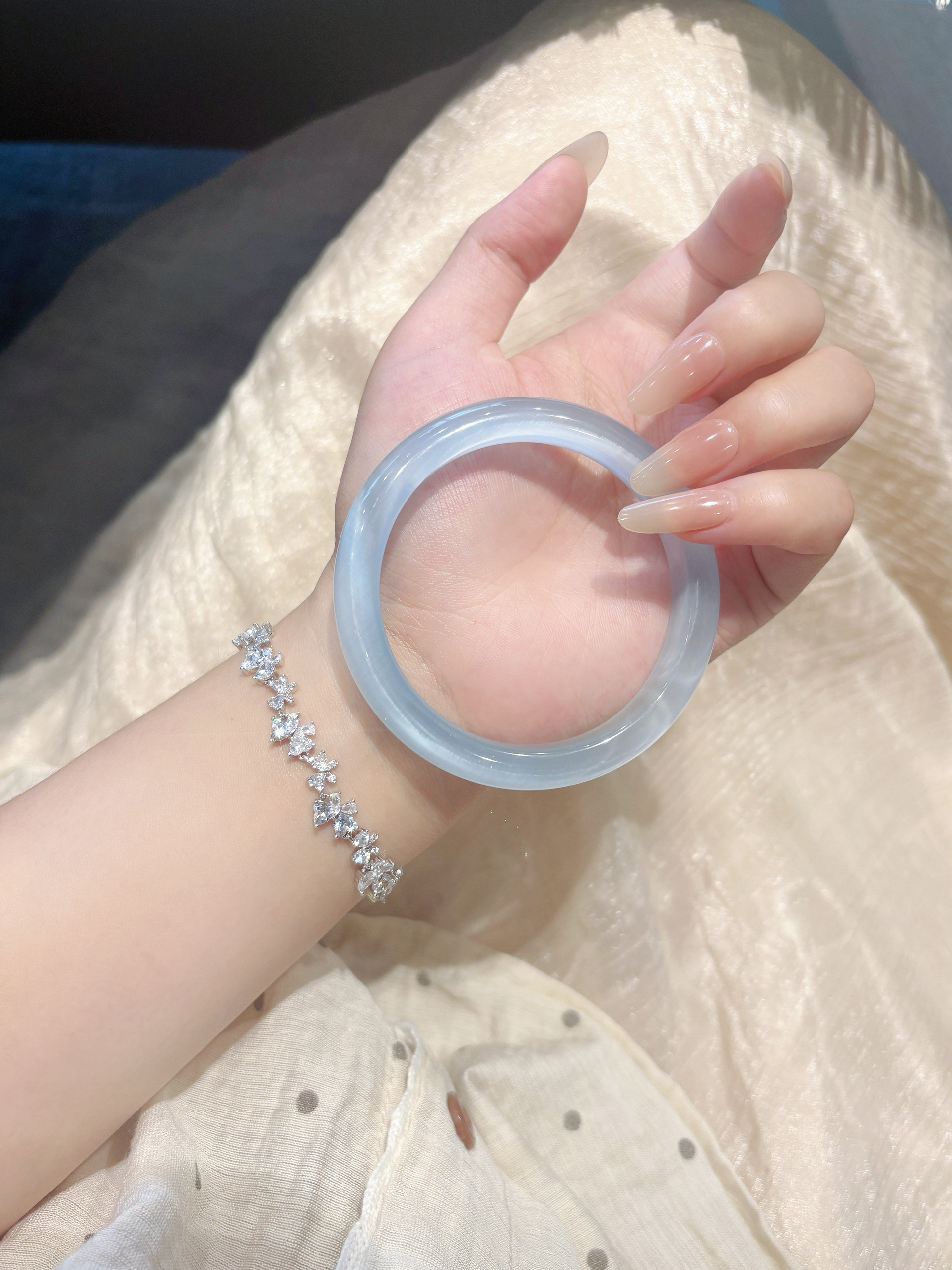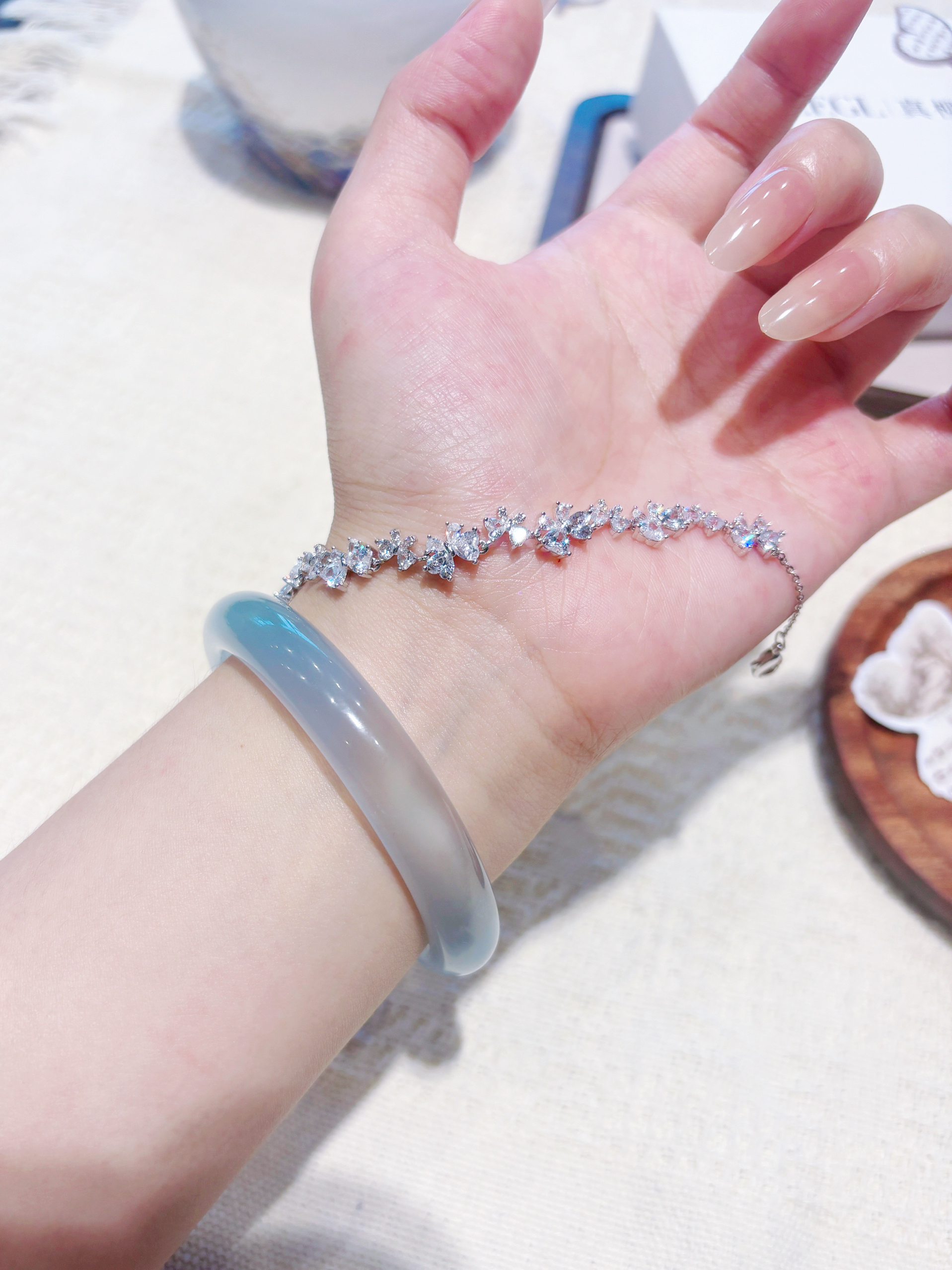 夏天真的很适合叠戴 玉镯特别清透好看 搭配紫藤花手链 温润又气质 太好看啦