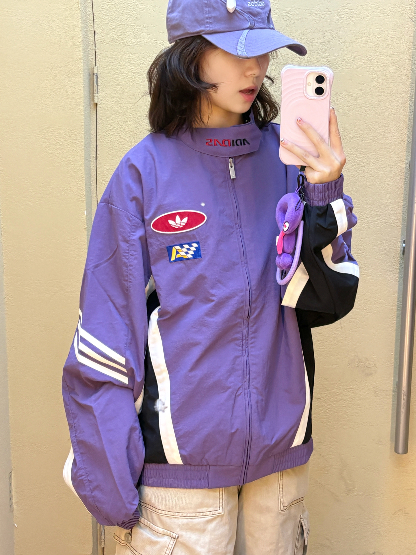 本篇笔记关联了【艾米同款】adidas Originals/三叶草 落肩袖拉链梭织赛车风条纹立领夹克 KH1202 KH1201 科技紫/汉玉白等商品,为用户提供真实的使用体验和购买参考。