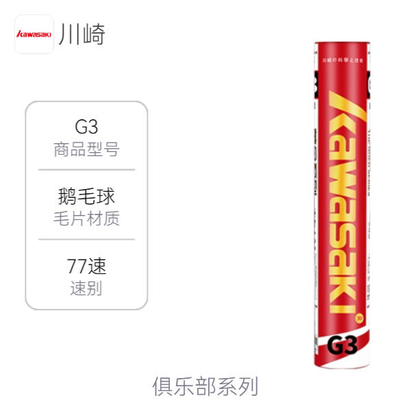 本篇笔记关联了KAWASAKI/川崎 俱乐部系列 黄金3号 飞行稳定 落点精准 耐打 防风 训练 比赛级 鹅毛 羽毛球 G3等商品,为用户提供真实的使用体验和购买参考。