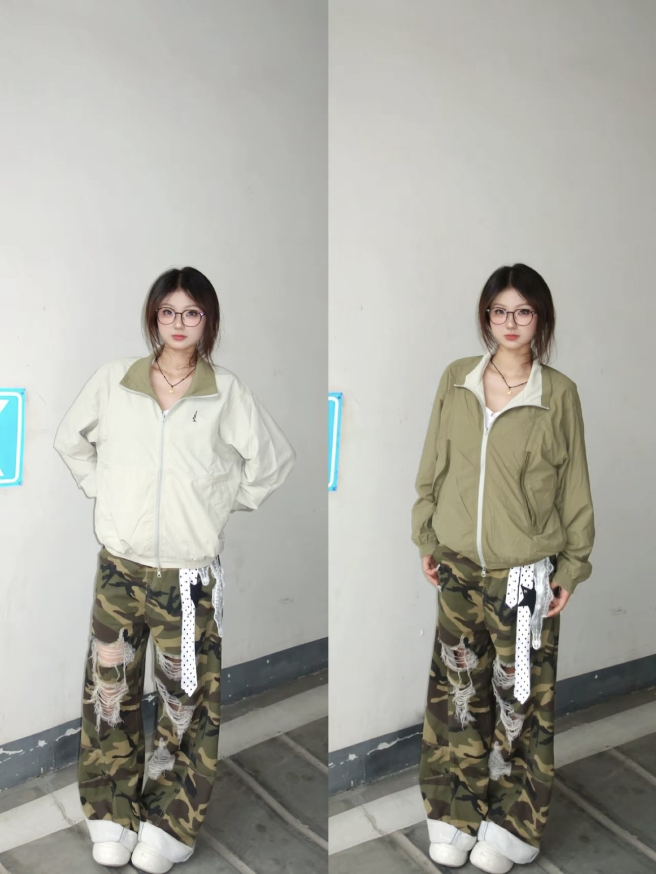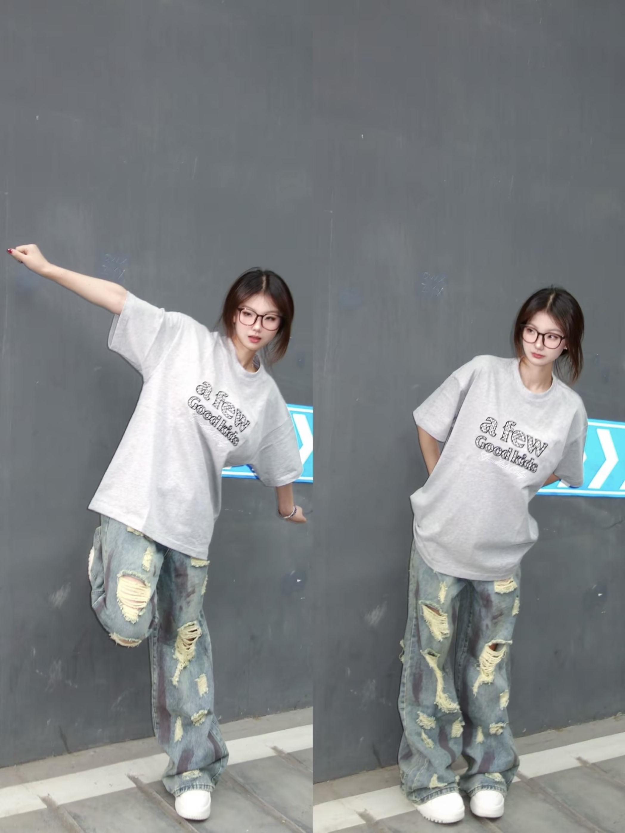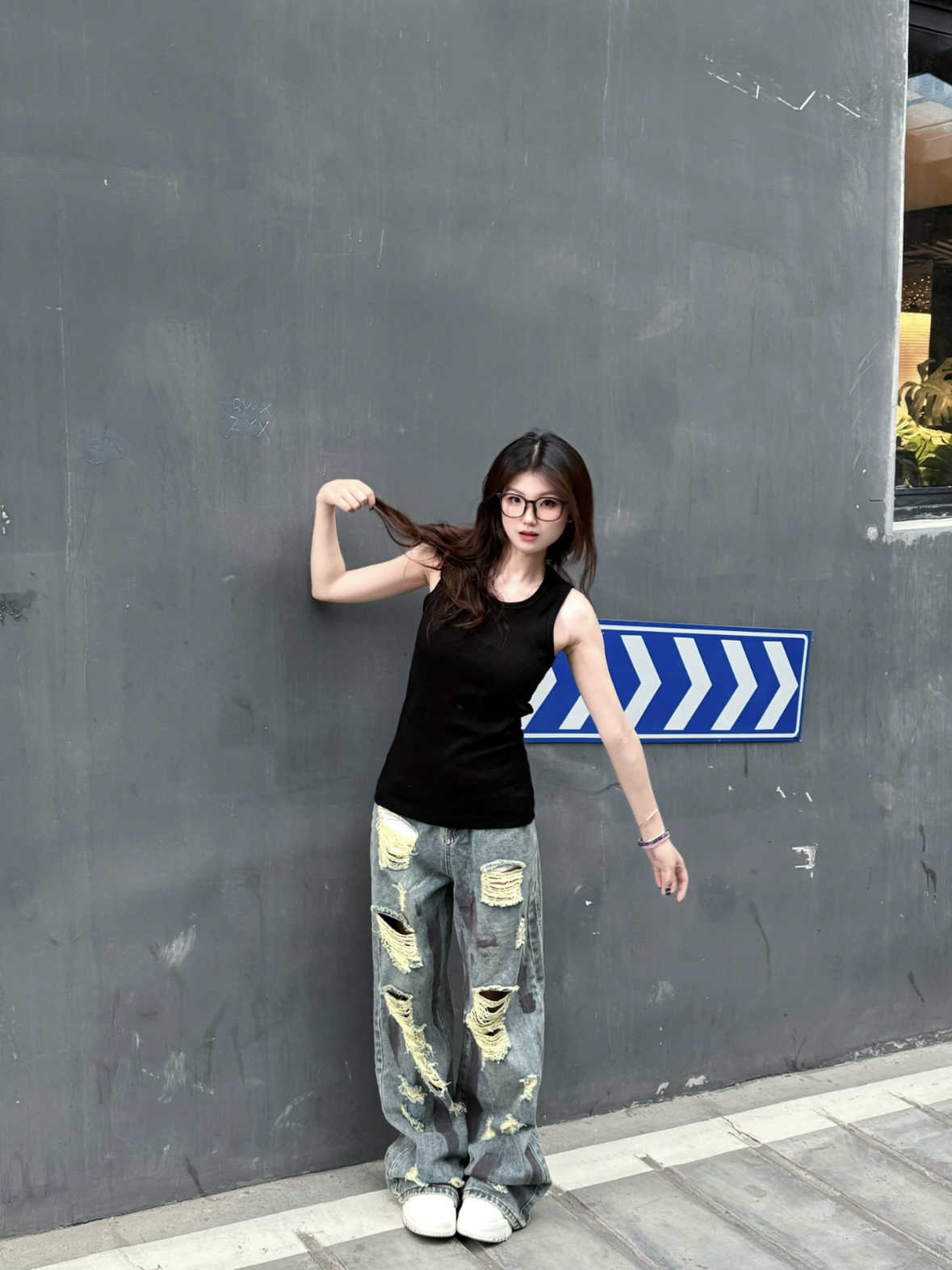 👚:STK背心 👖:水洗做旧破洞裤