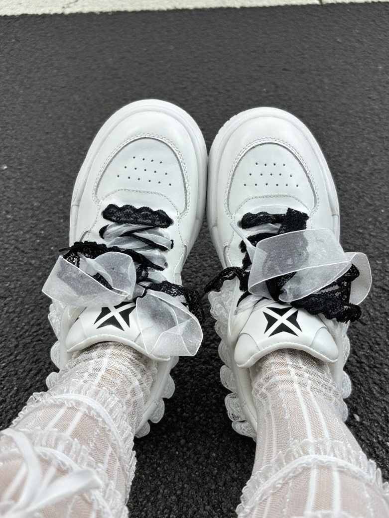 🧍♀️:163cm 44kg 这款蕾丝劫匪系列板鞋真的长在我的审美点上!👟 精选牛皮材质自带质感,原创设计里藏着巧思,蕾丝元素悄悄点睛,个性又不张扬✨ 上脚超舒服,暴走一天也毫无压力🐾 百搭属性更是没话说,轻松hold住各种场合💃 既有设计感又实穿,回头率绝对在线!😎