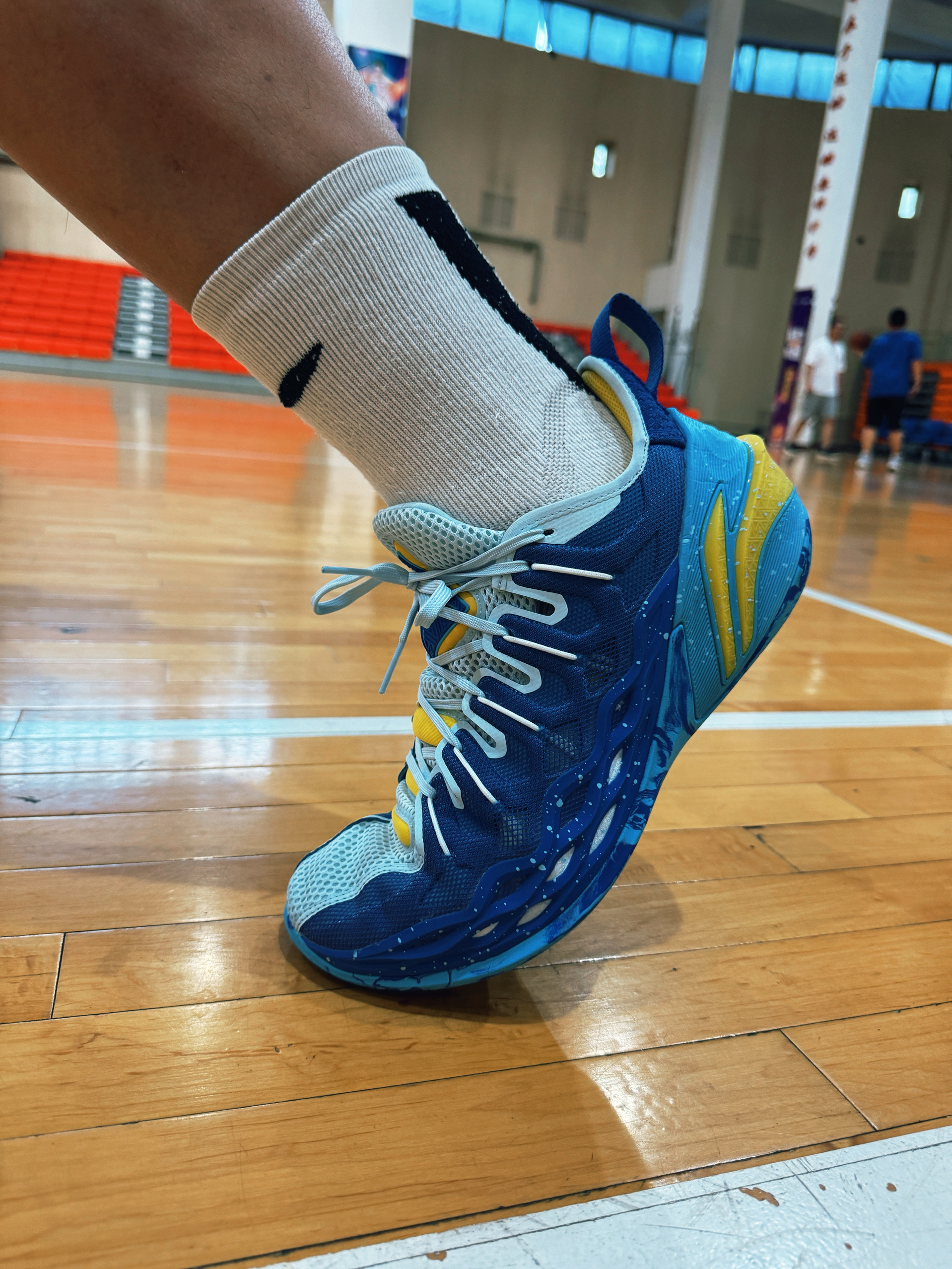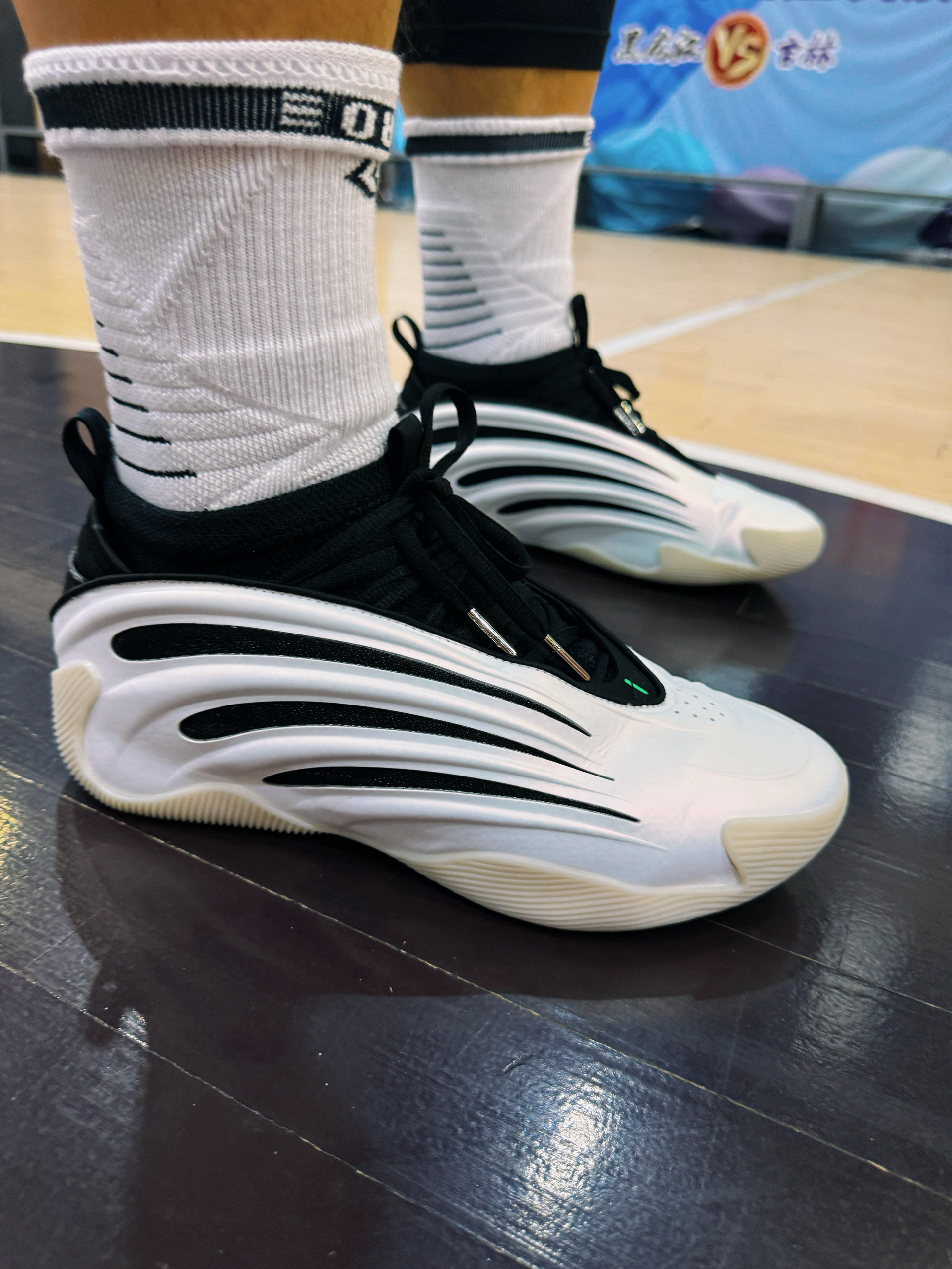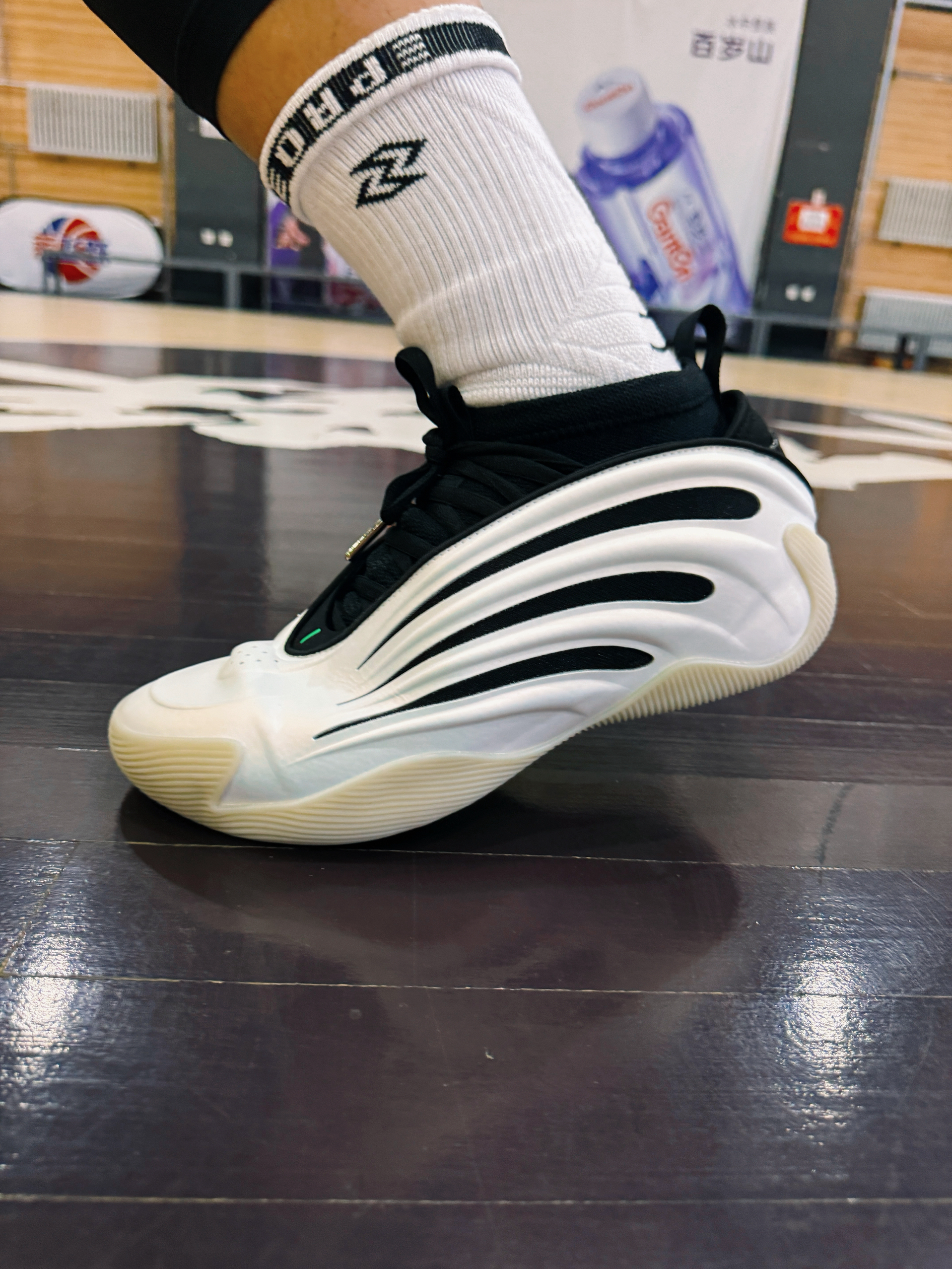 哈登自从7.8.9开始 包括10代已经出了谍照 都是一个设计语言 都比较前卫 有时尚感 也比较适合一些节奏型的后卫锋线球员 这双9代黑白配色挺帅气的 鞋面比较容易出窝痕基本上是打一次就有的状态 现在性价比还不错