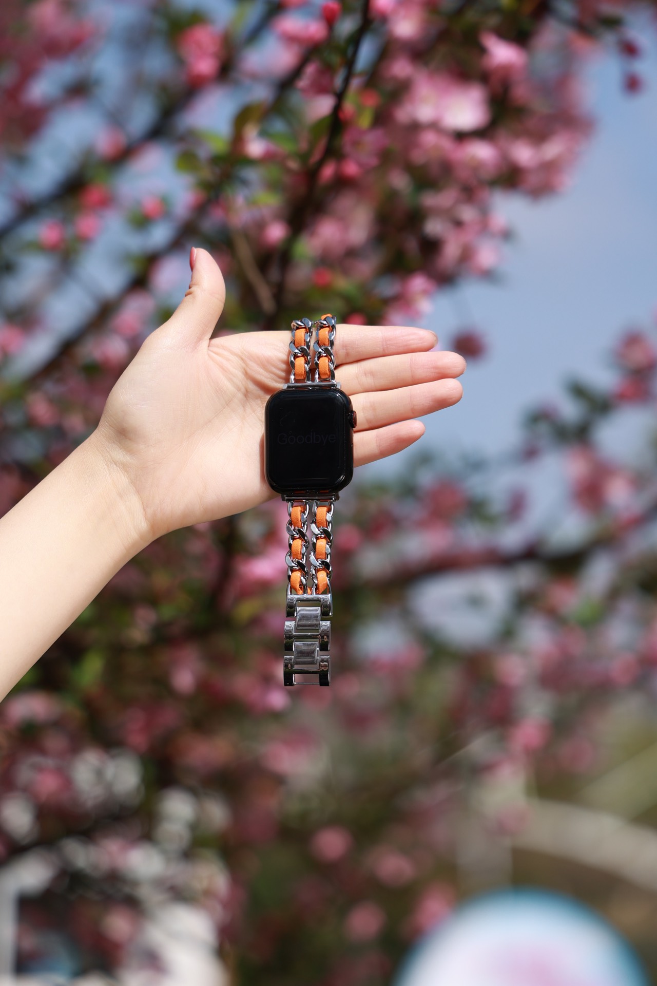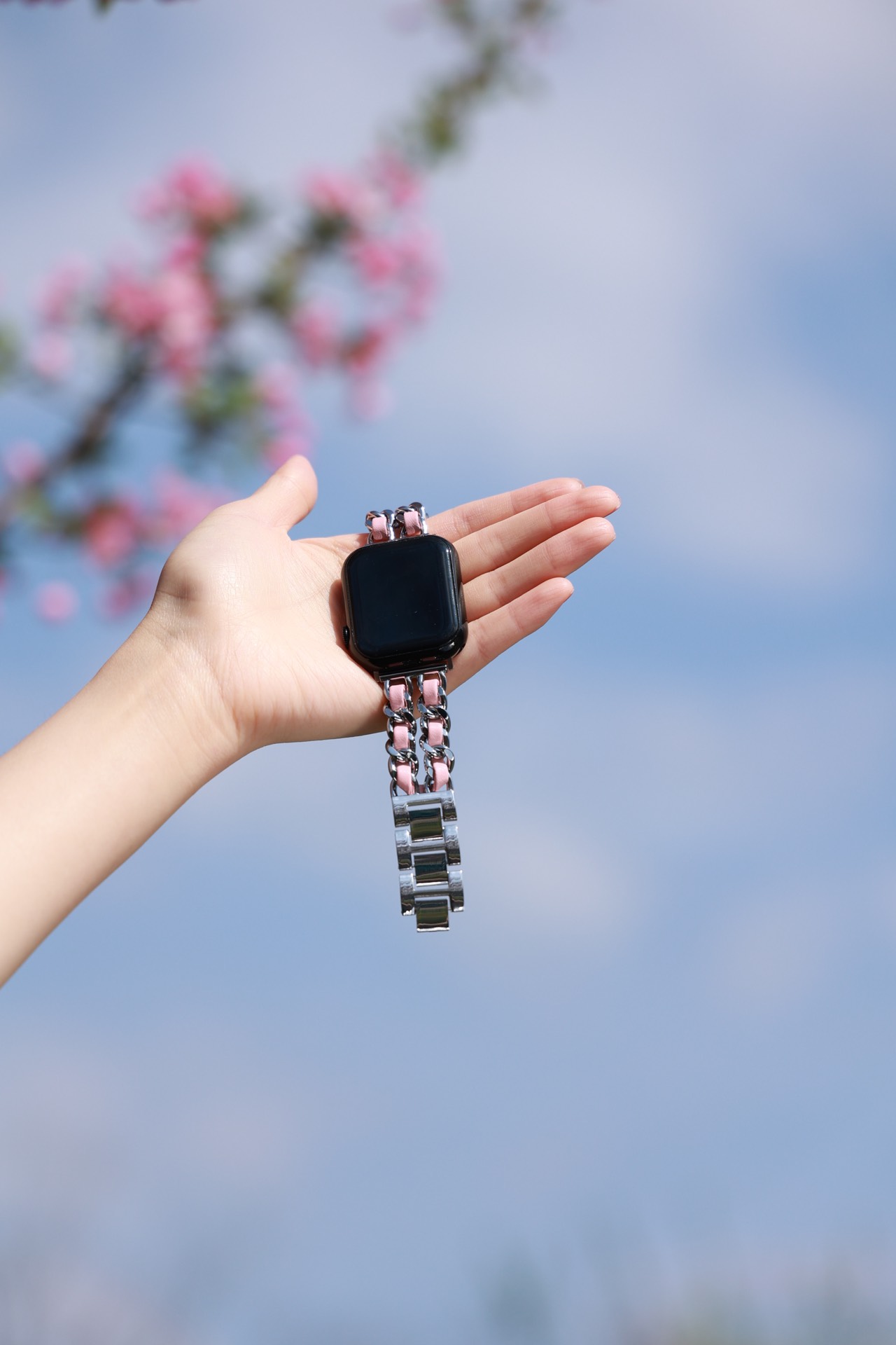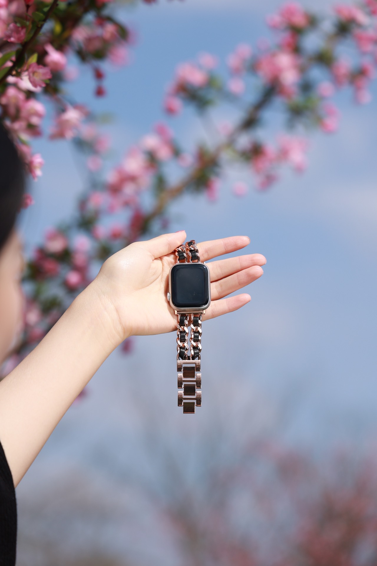 我发现了一款超适合春天的苹果手表表带~金属材质,设计精致,戴起来很有质感。珠宝扣设计,好看又方便。不过金属表带冬天戴可能有点凉。它很适合在烂漫春光里搭配服饰,送女友也不错哦~喜欢的可以试试~图源网络侵删