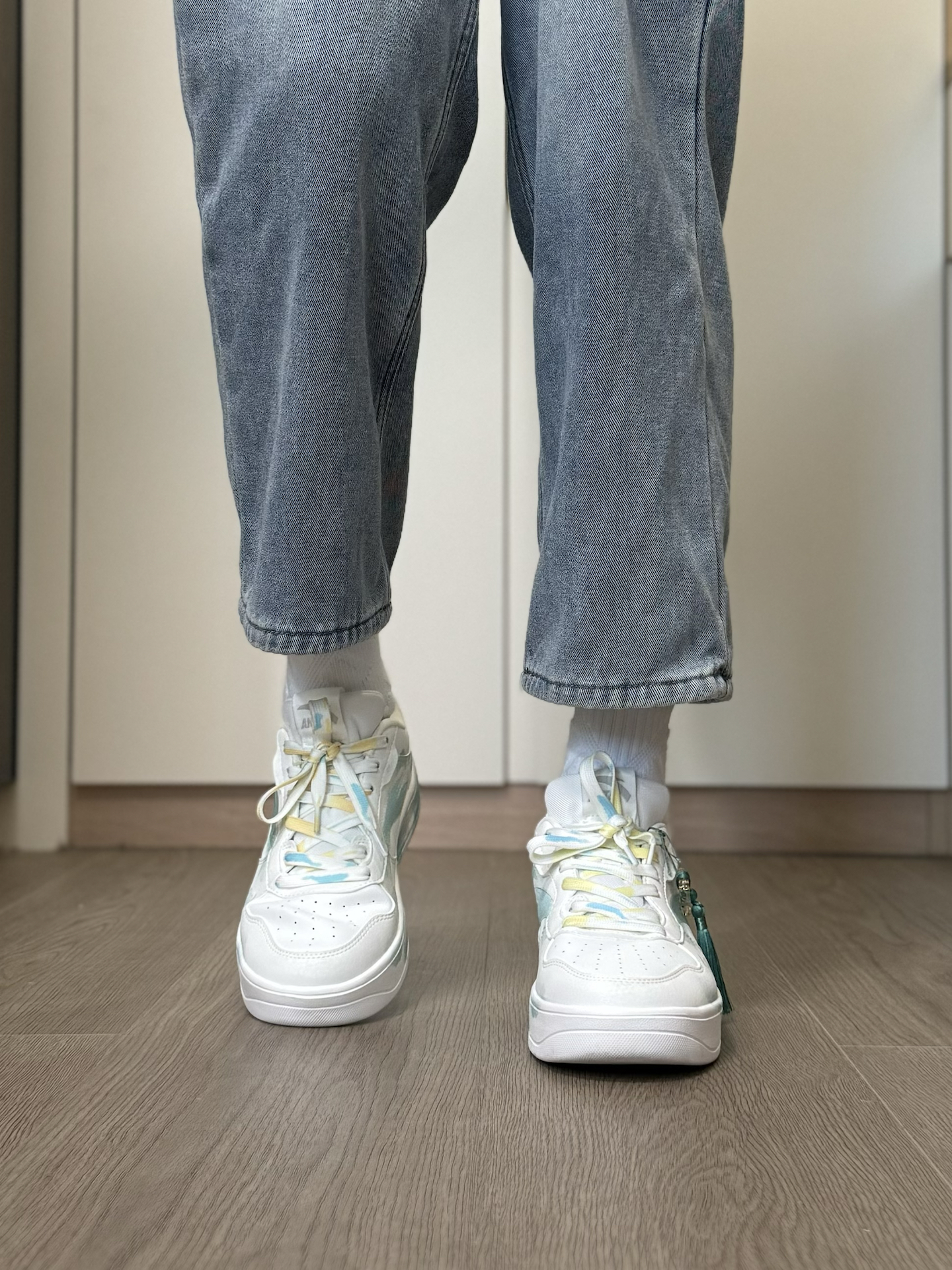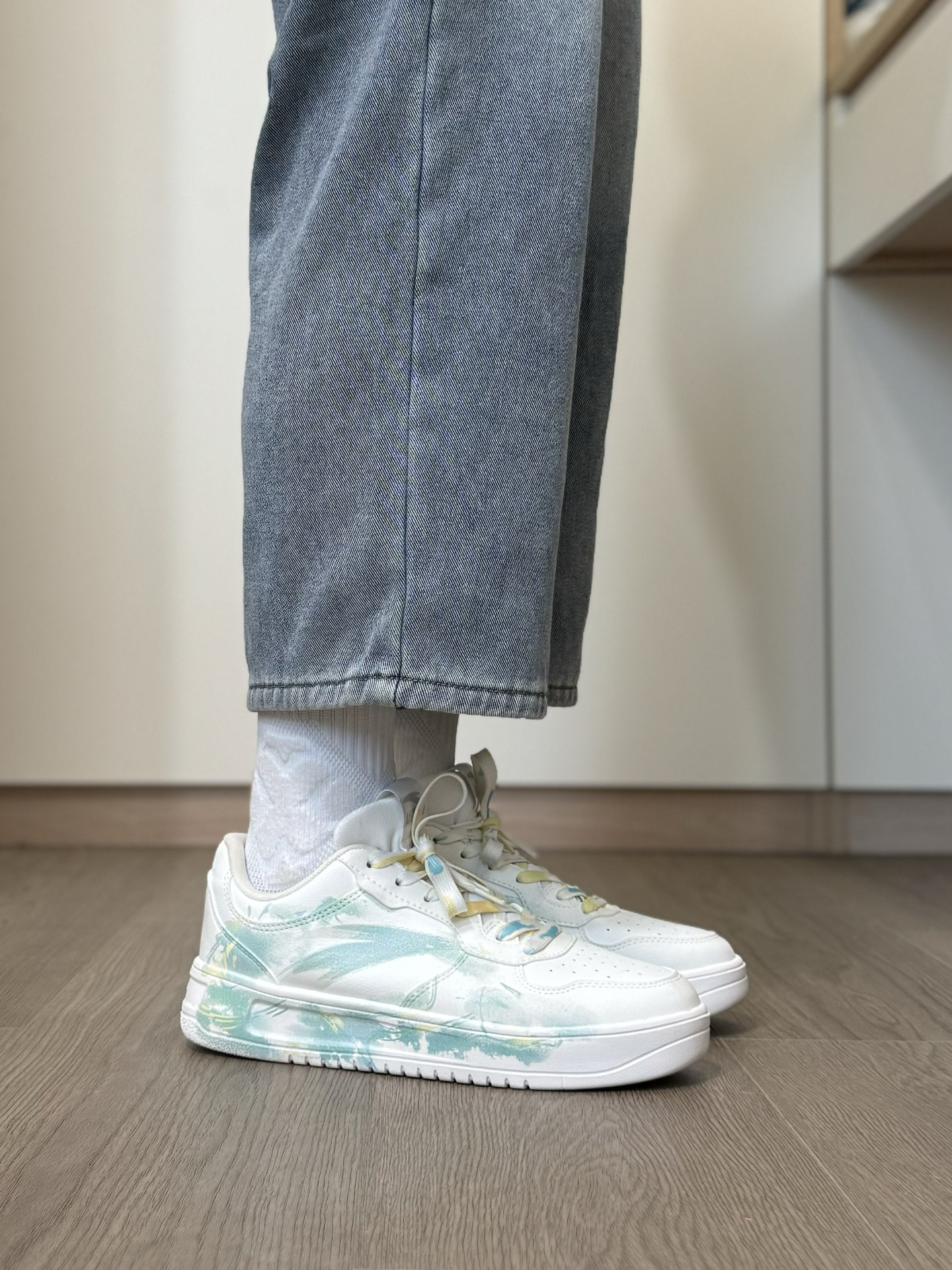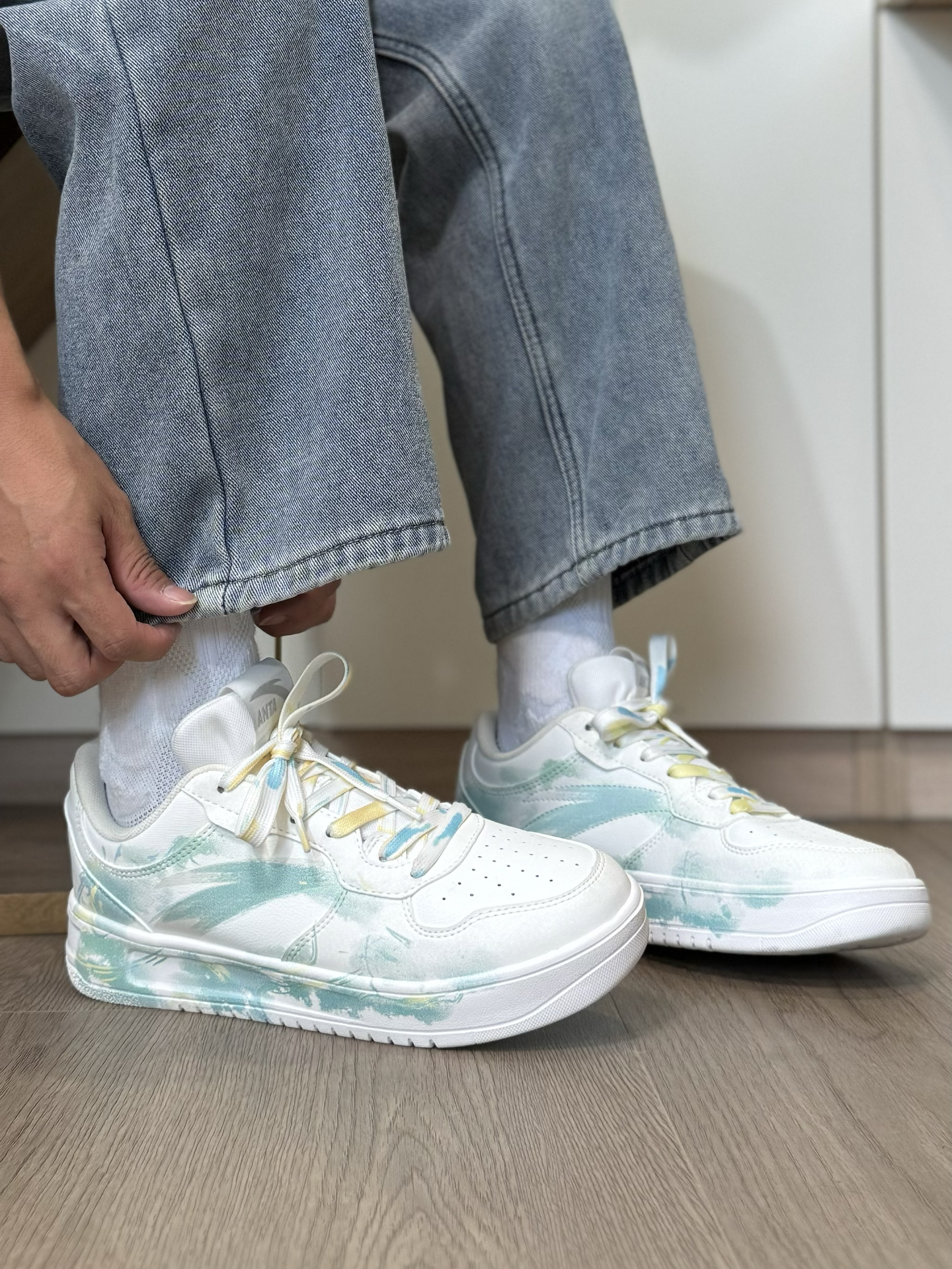 给大家分享一双 我最近很喜欢的一双 特殊DIY的小众安踏板鞋~ 鞋面是简约的白绿配色 加上新中式风的 水墨和晕染设计 侧面还有一个小挂坠 层次感蛮丰富的 上脚我觉得穿一些浅色系的牛仔裤 就特别好看 而且穿起来蛮舒服的 脚感软软韧韧的 很适合平常通勤、或者出街旅游穿 #长期主义鞋子 #给度假计划配双鞋 #这双没有班味 #城市徒步多巴胺 #LTDZ