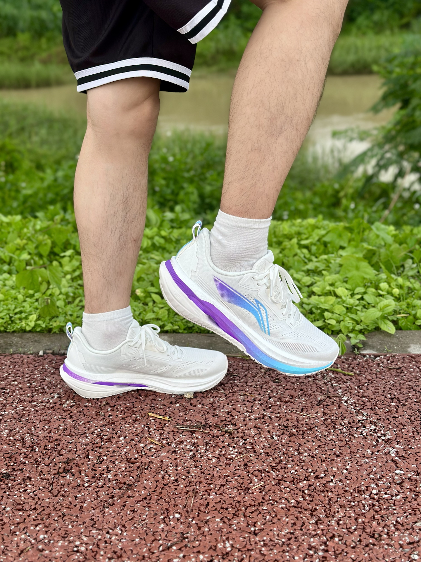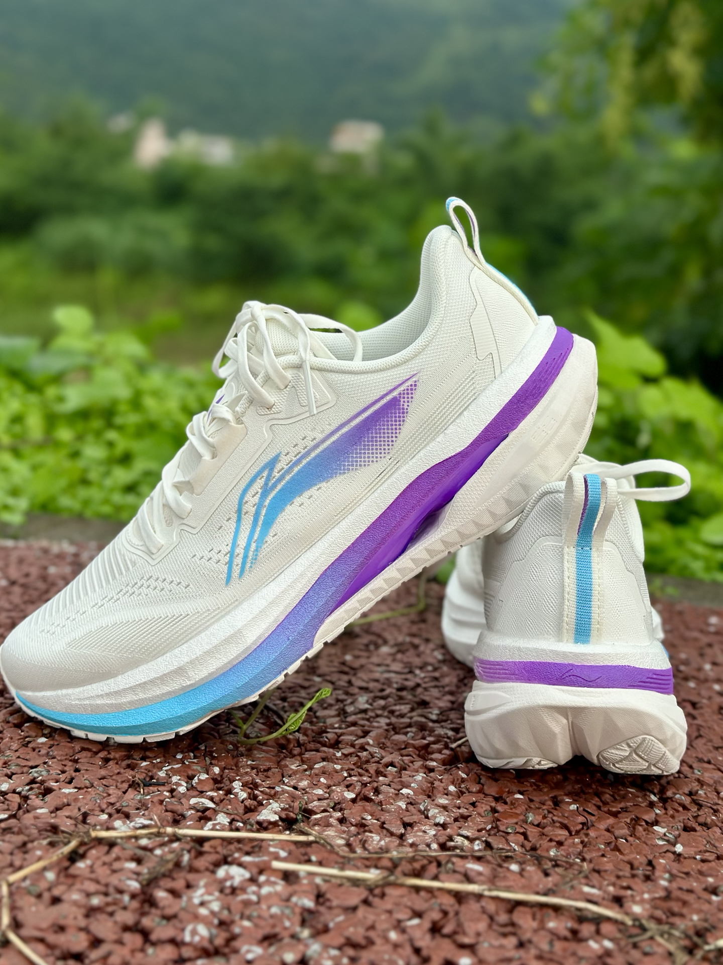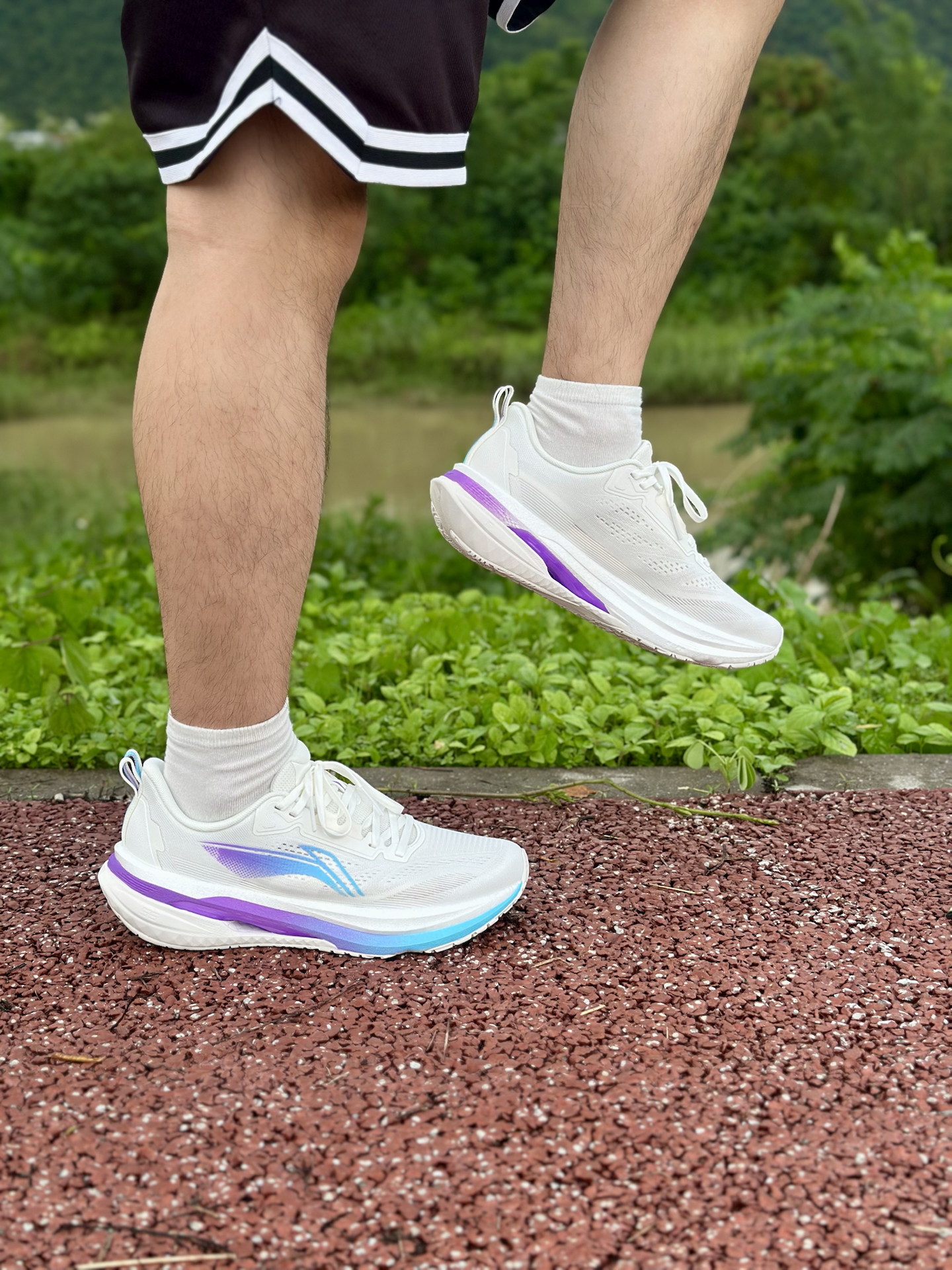 李宁这款吾适5s自从推出以来就深受大众跑鞋喜爱,当然不吹不黑我也不例外🫡这也是我入的第二双吾适5s5.0。今天这个款极光配色,我那时候买的时候还没出,最近觉得这个挺好看的入了一双。 外观清新简约的设计,再加上整体白色点缀蓝紫渐变的logo和中底,上脚给人的感觉就是很清爽。不过确实白色有点不耐脏‼️ 双层缓震科技的加持,搭配到当家的全掌䨻🤩脚感确实在这个价位里面我觉得值得起的🤏🏻 跑动体验上,回弹很...