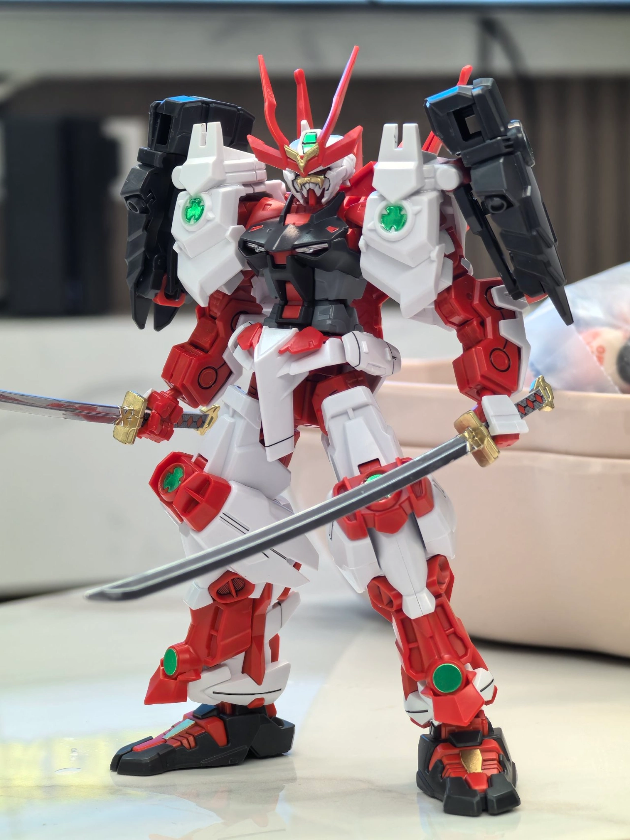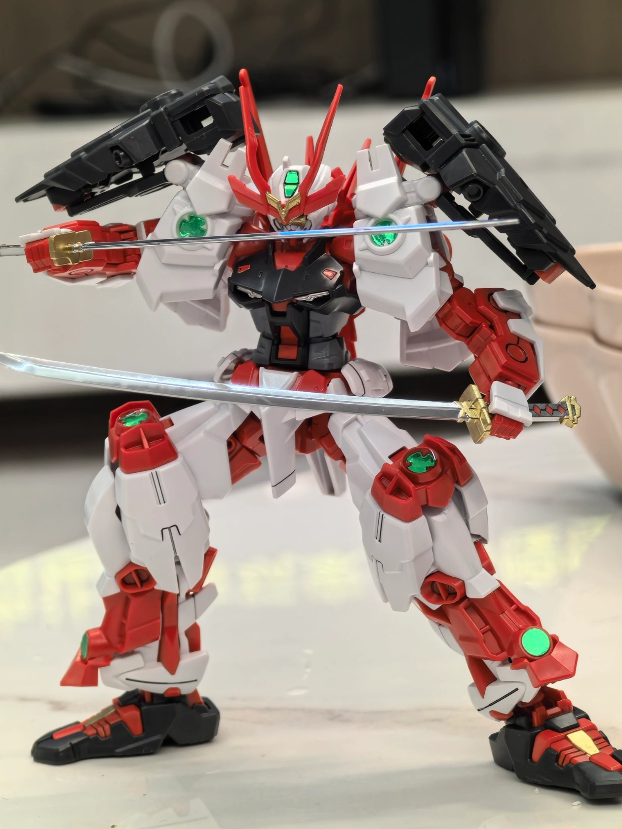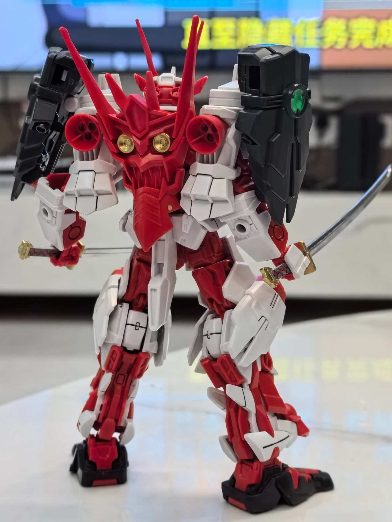 最近入手一个模型🎁,刀是塑料白质感一般😮💨。给的贴纸不给力,得涂涂🤔。简单渗线、补金色后还挺帅✨。拼模型就像开盲盒,虽有小状况,成品还是带来小惊喜~