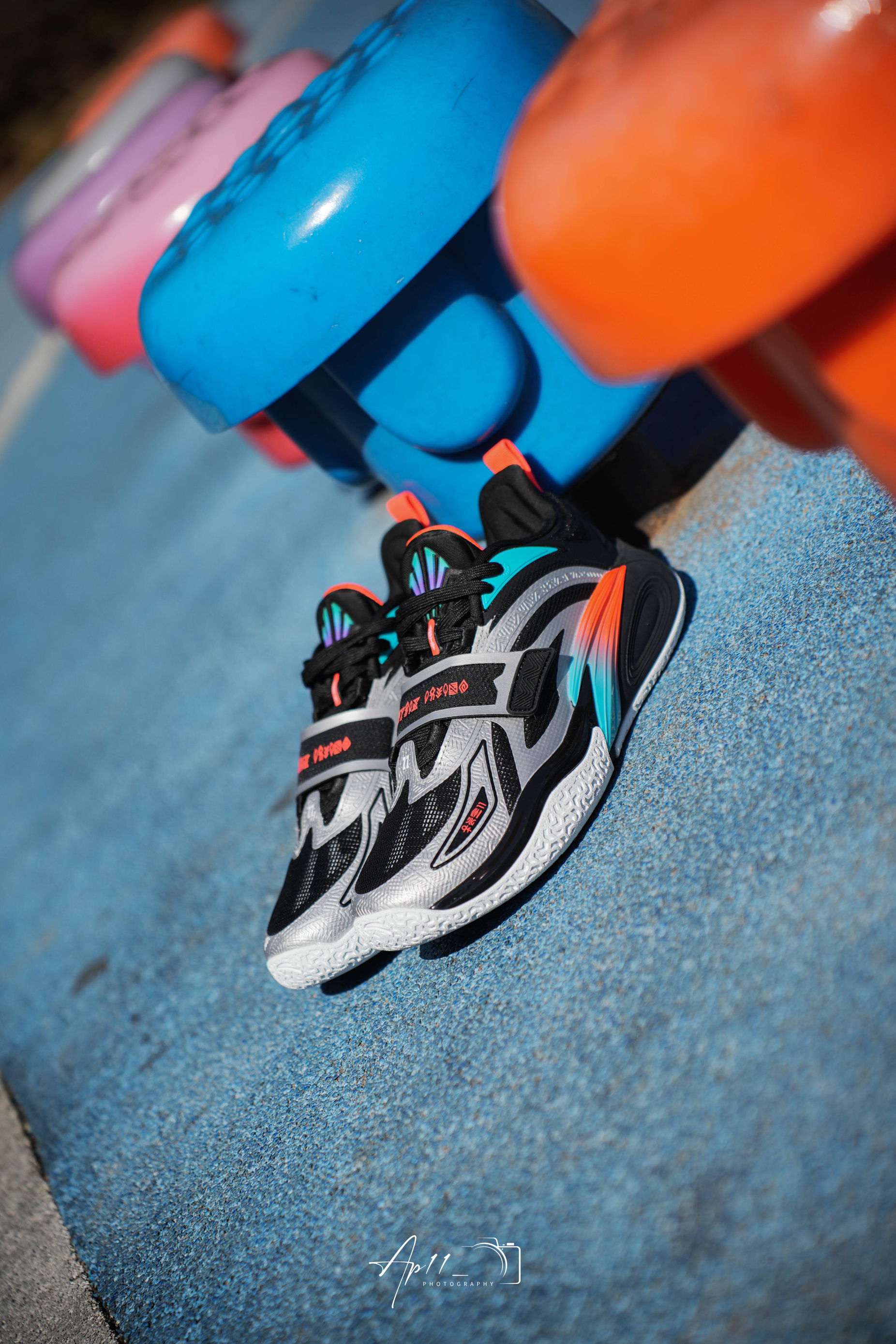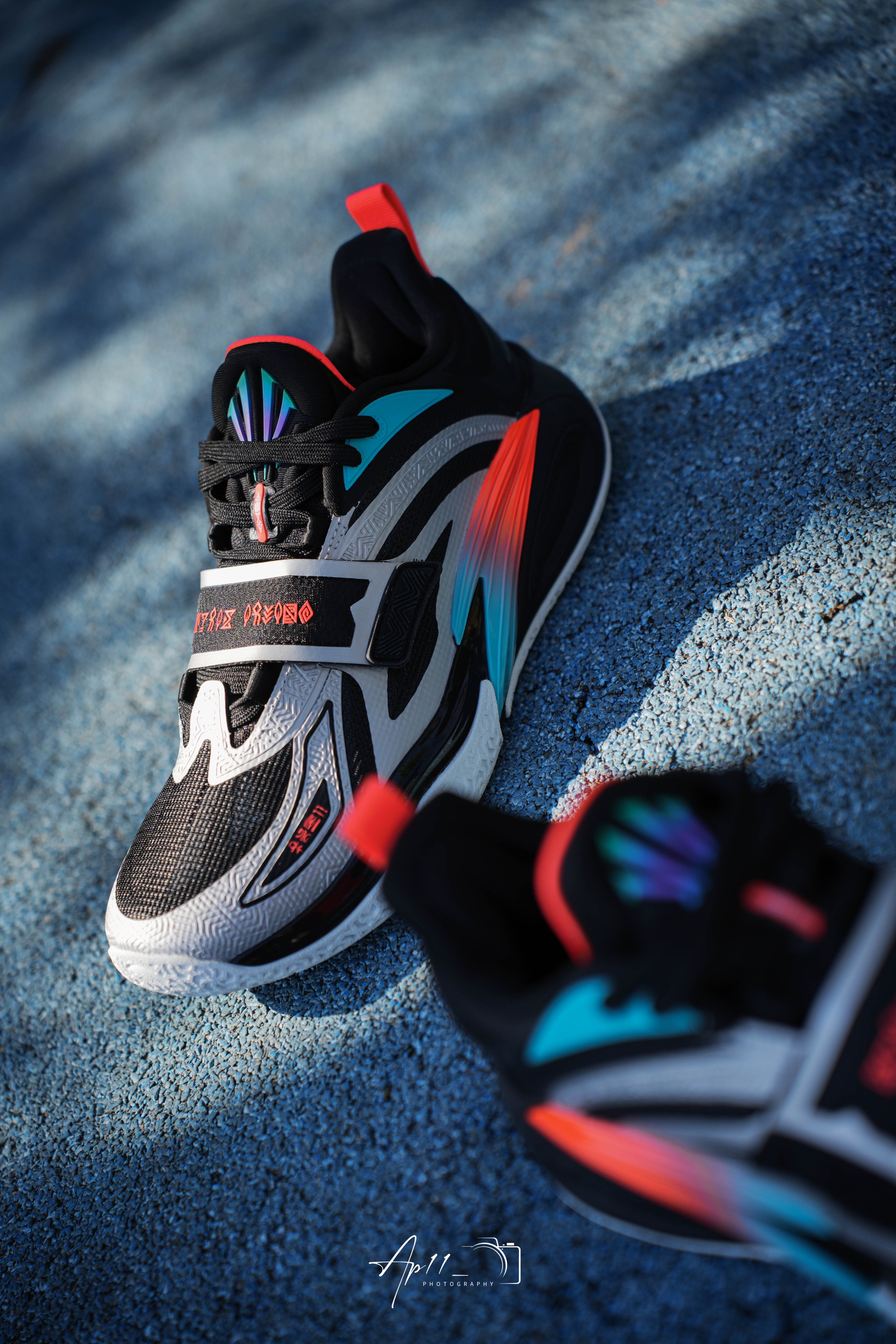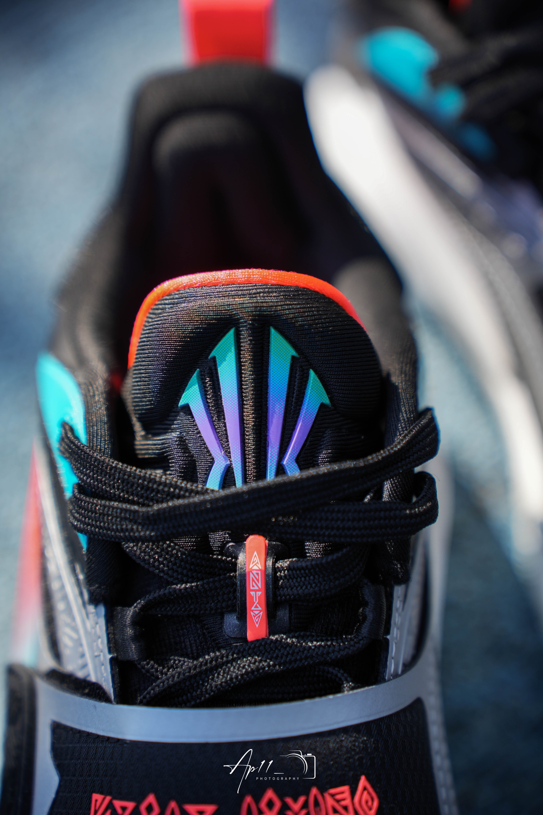 极具欧文特色的欧文一代配色:“进攻万花筒”。该配色灵感来自欧文全面、无解的球风。红蓝渐变的细节点缀配合银色的鞋面,颇有科幻感,上脚后的效果确实不错。