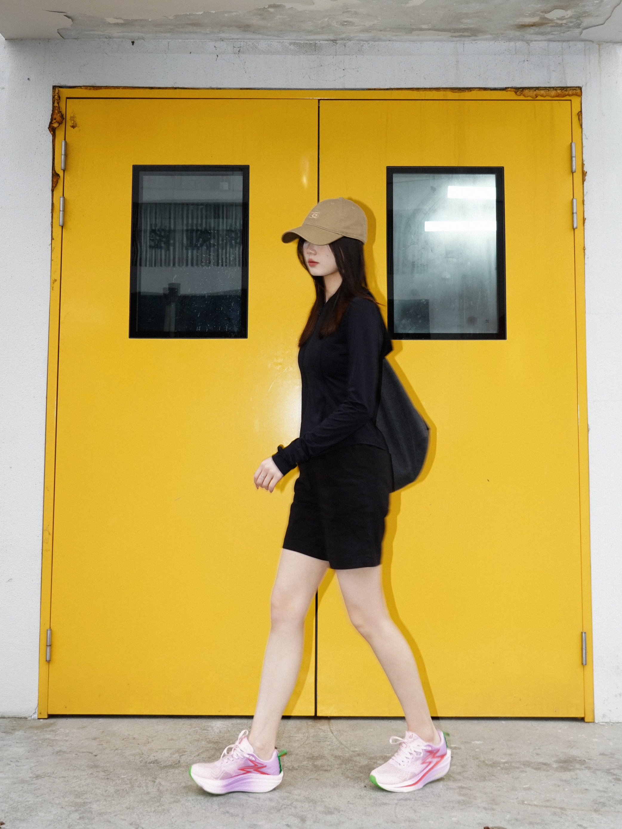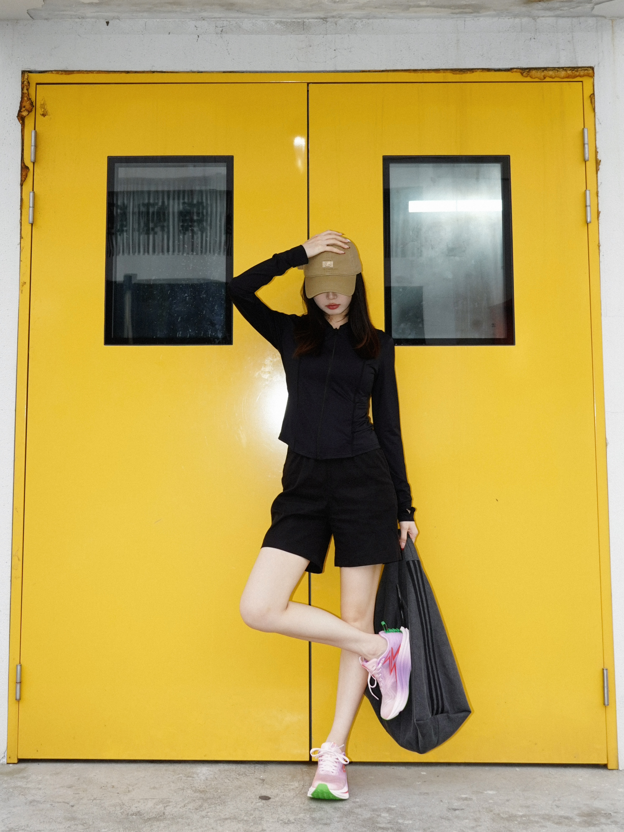 夏天露肉的季节🥩要开始动起来了 一身黑的穿搭简直不要太酷 搭配粉色的跑鞋机能感十足👟 感觉这身跑个十公里都没问题 黑色的上衣不仅防晒而且上身也很酷 搭配棕色的鸭舌帽 潮流感💯 👟:361 飞燃跑鞋