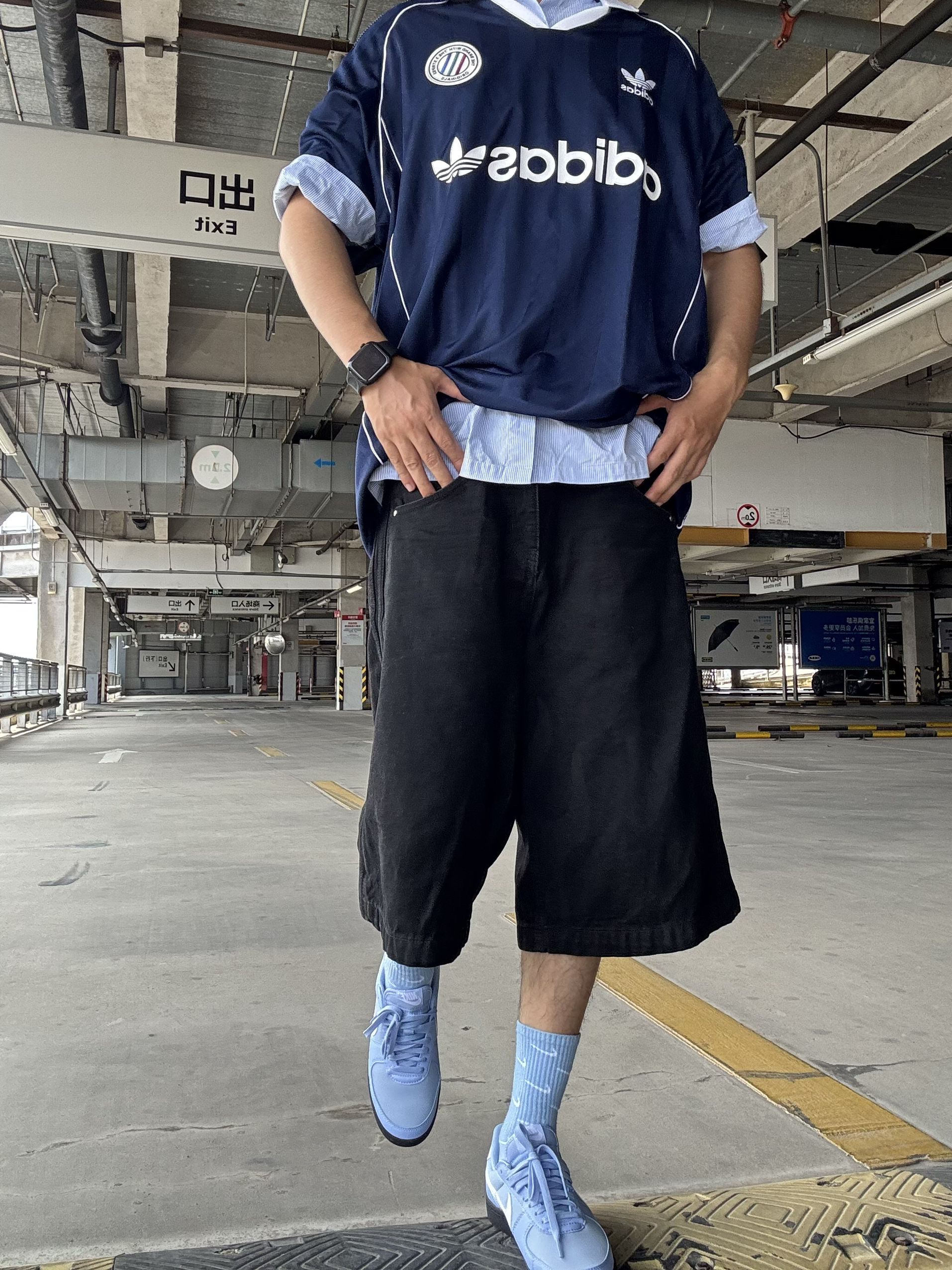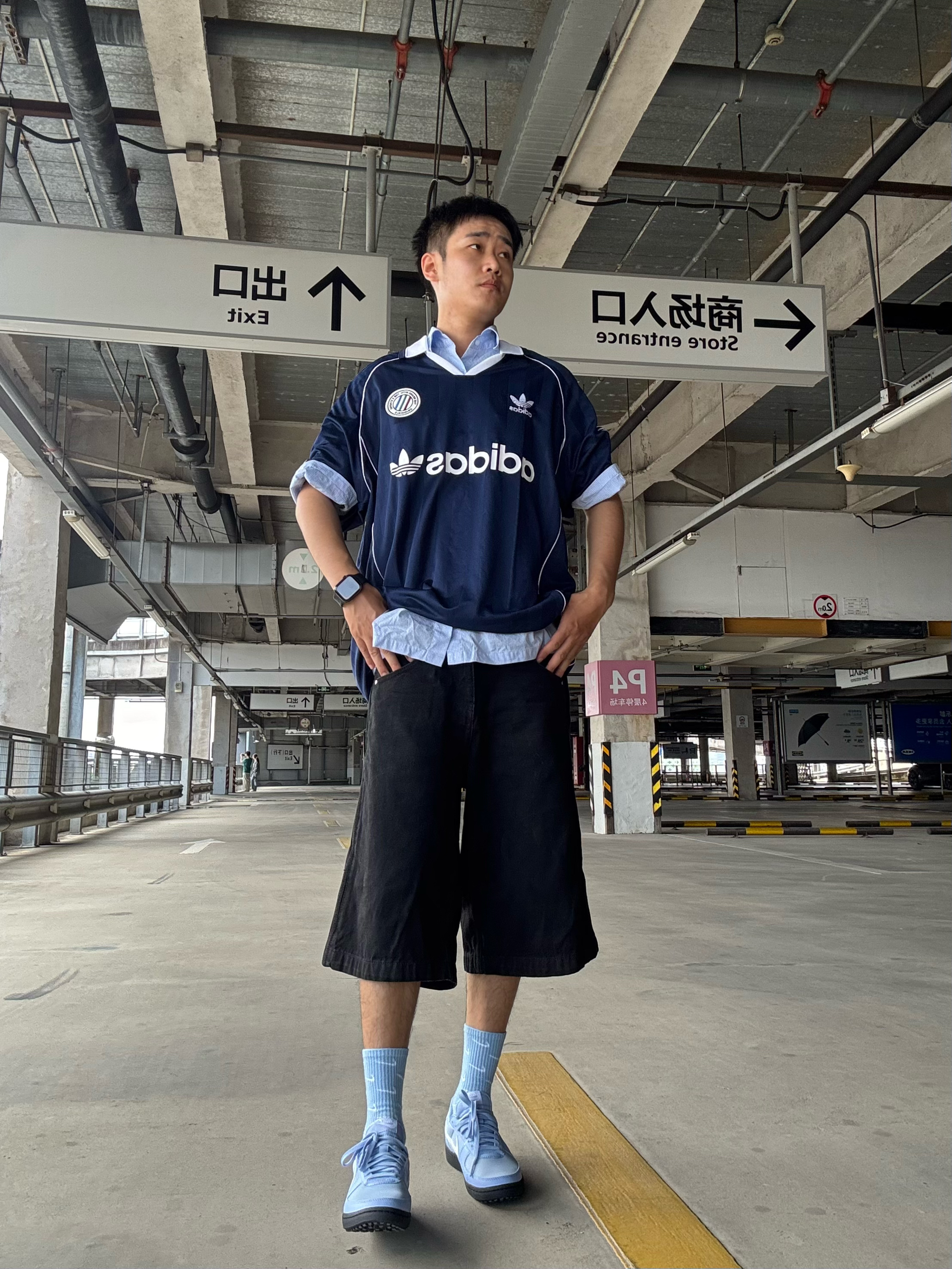 王安宇穿搭这一块专业的!肯定专业的 和阿迪达斯的气质太符合了 这套look其实很平常 但是就很吸睛 尤其上衣有足球元素的短袖 加上叠穿显得很有意思 整体都在蓝色黑色色调里也不会出错 建模一般的穿上都相当帅啊!