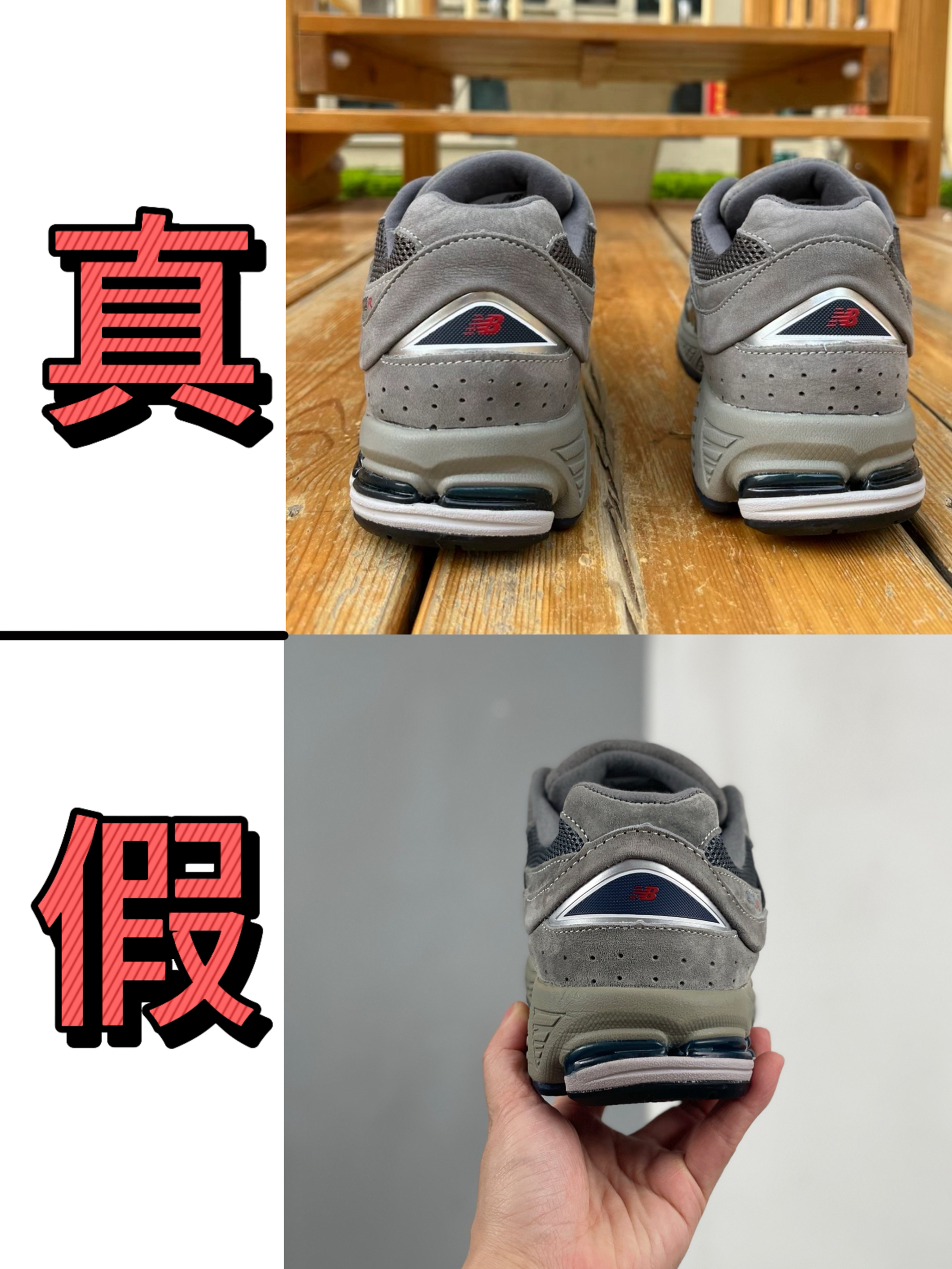 🔝鞋身整体大作战 ✅真鞋:材质细腻有质感,网面透气孔分布均匀,皮革拼接严丝合缝,色调自然高级✔️ ❌假鞋:材质廉价粗糙,网面稀疏/密集无规律,皮革拼接歪歪扭扭,颜色发灰显low❗ 🔥“N”字Logo生死局 ✅真鞋:金属质感拉满,字体立体饱满,边缘切割利落如刀削,反光自然不廉价✨ ❌假鞋:Logo黯淡无光,字体扁平糊成一团,边缘毛刺/歪扭,像“拼夕夕”平替💢 🚀鞋底细节修罗场 ✅真鞋:缓震...