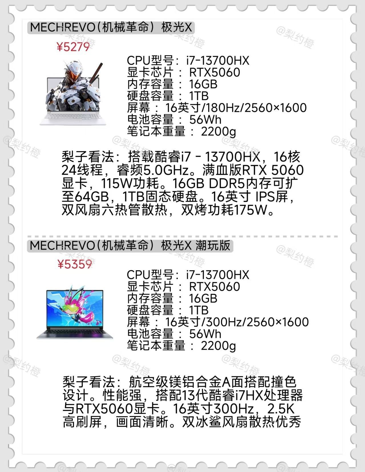 本篇笔记关联了MECHREVO/机械革命 极光X RTX5060显卡 2025款 16英寸 游戏本 学生党 性价比 畅玩电竞游戏 高性能 独显 高速固态 极光白、MECHREVO/机械革命 蛟龙16 Pro RTX5060显卡 2025款 16英寸 游戏本 满功耗释放 高刷 高性能 璃光白、ThundeRobot/雷神 猎刃S RTX5060显卡 2025款 16英寸 游戏本 高清高刷 高性能 黑色等商品,为用户提供真实的使用体验和购买参考。