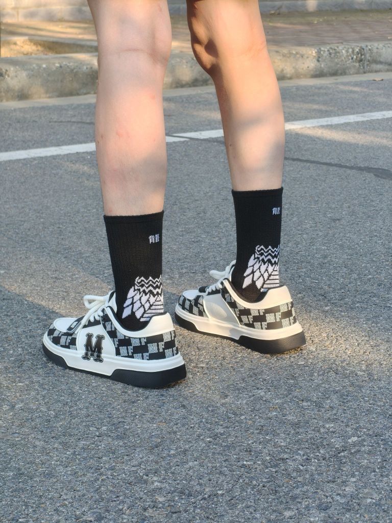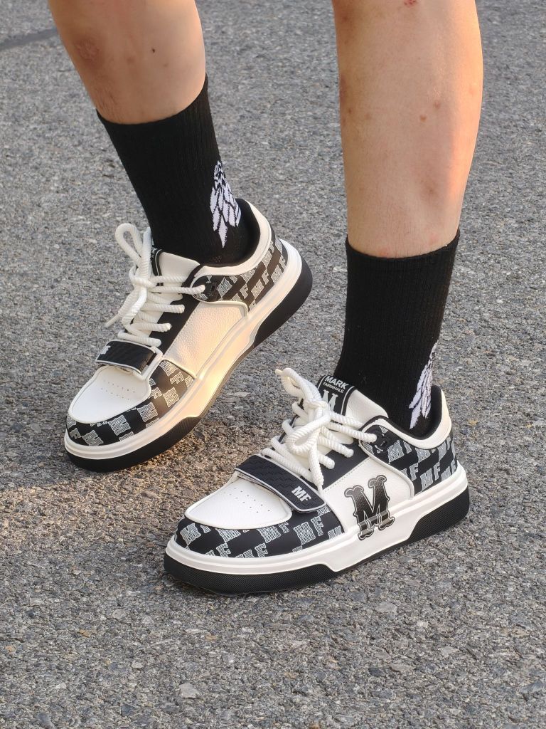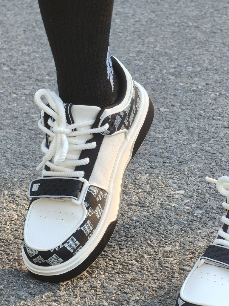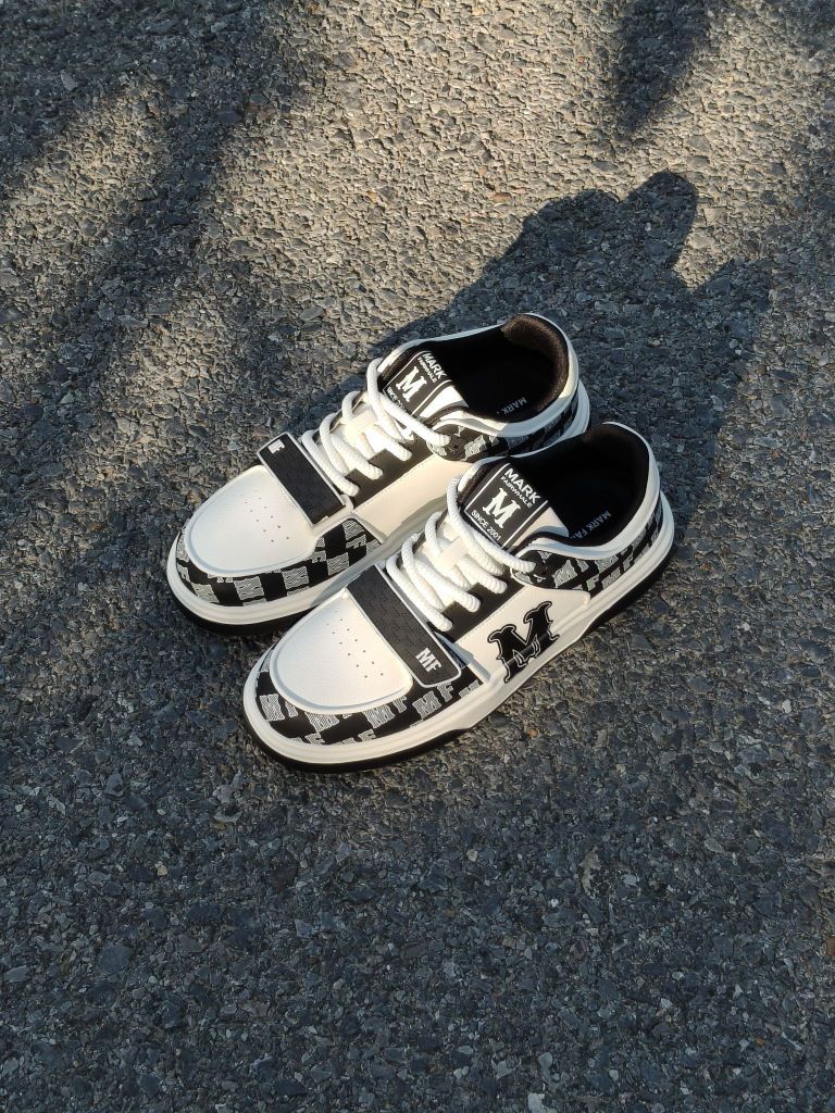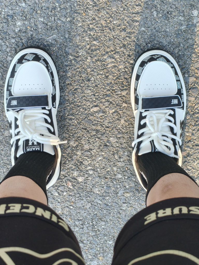 👀设计方面,黑白搭配经典还耐看,鞋侧面大大的M标挺显眼的,还有花图案铺满,街头感拉满,鞋底增高,显腿长还不笨重,日常穿、耍帅都能用 👕穿搭方面,个人建议喜欢潮流的搭配牛仔裤➕T恤,街头耍酷😎拿捏,喜欢休闲的运动裤➕冲锋衣,运动、打球都合适 🦶脚感方面,我穿上的第一感觉是厚底但不压脚,看着鞋底厚,实际踩上去轻飘的,走路带有弹性,出去玩一天脚也不是很酸🍋整体还可以[机智_blue] 总的来说...