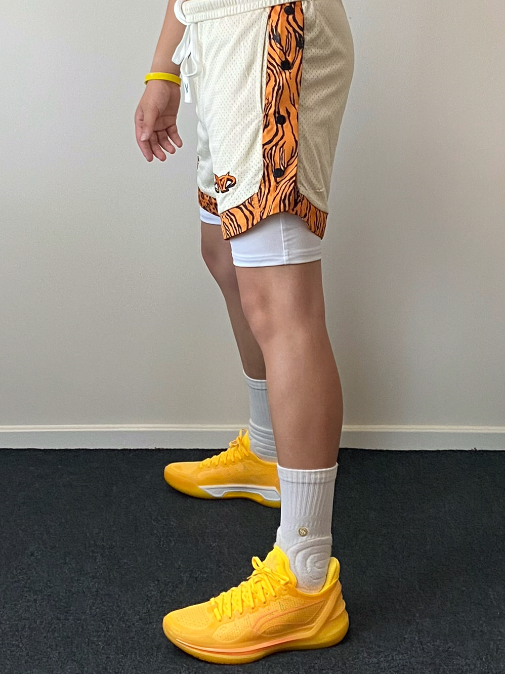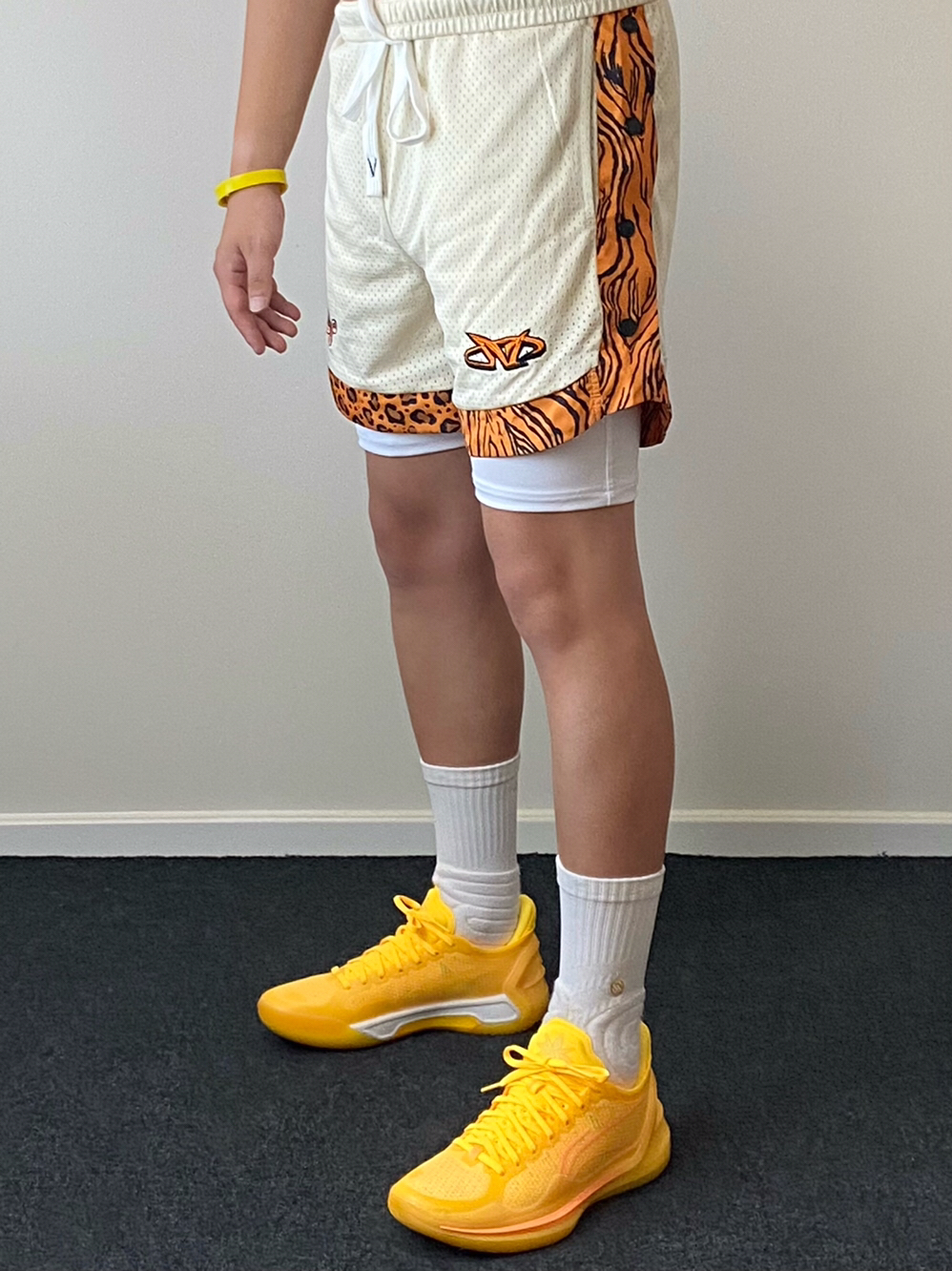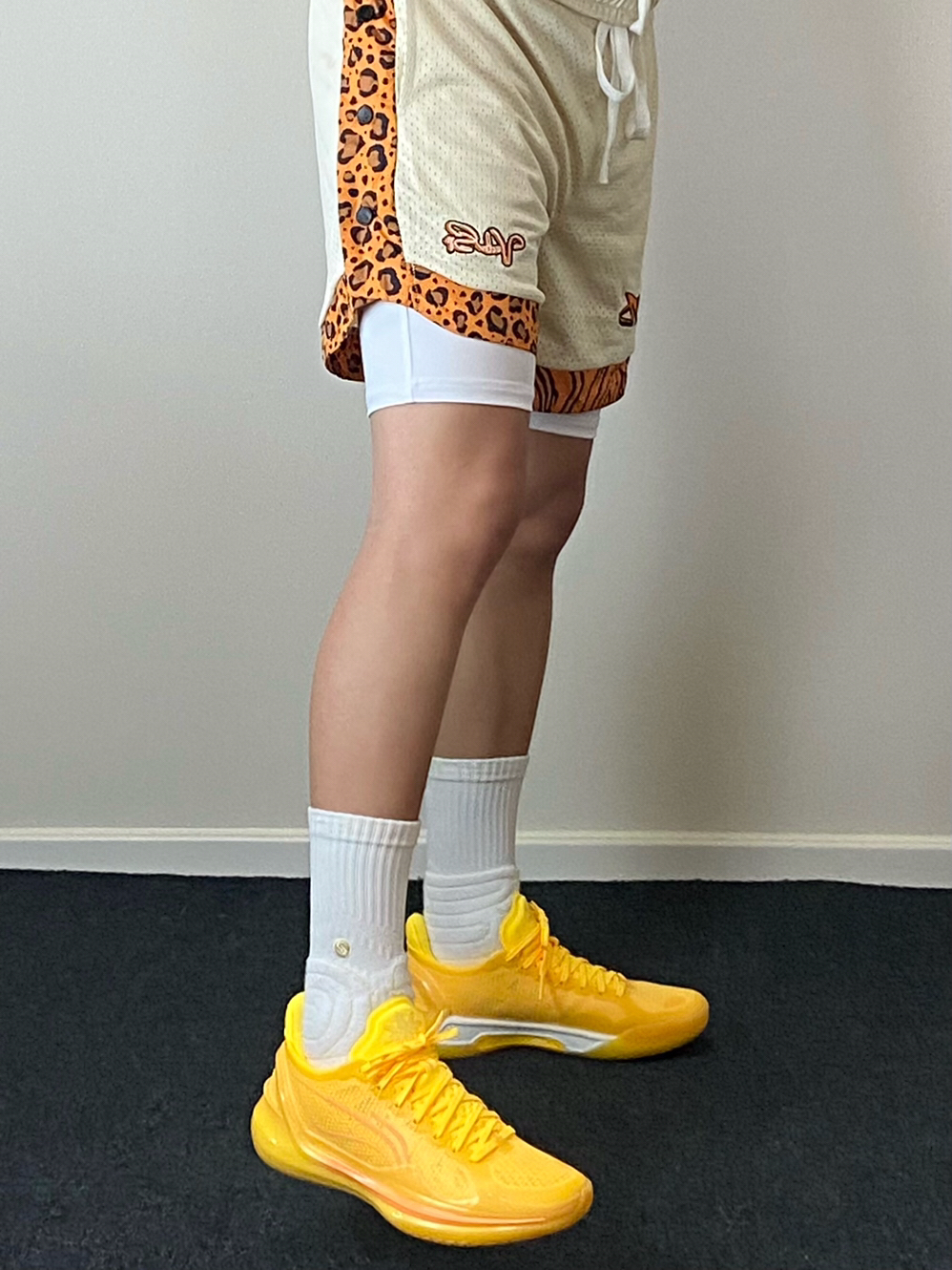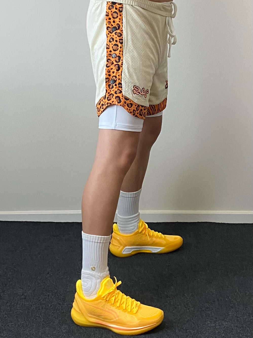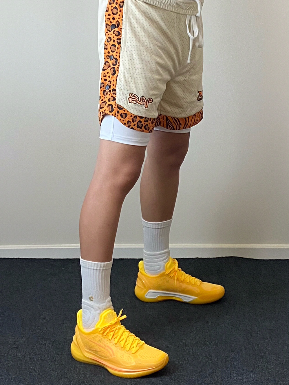 • 我真的是觉得金盏配色太帅了‼️今天分享搭配上豹纹篮球短裤的球场装备✨上下黄色系可以呼应,非常有运动活力🔥白色紧身速干裤和球袜起到平衡色彩的效果,轻松get美式球员风想不帅都难😎