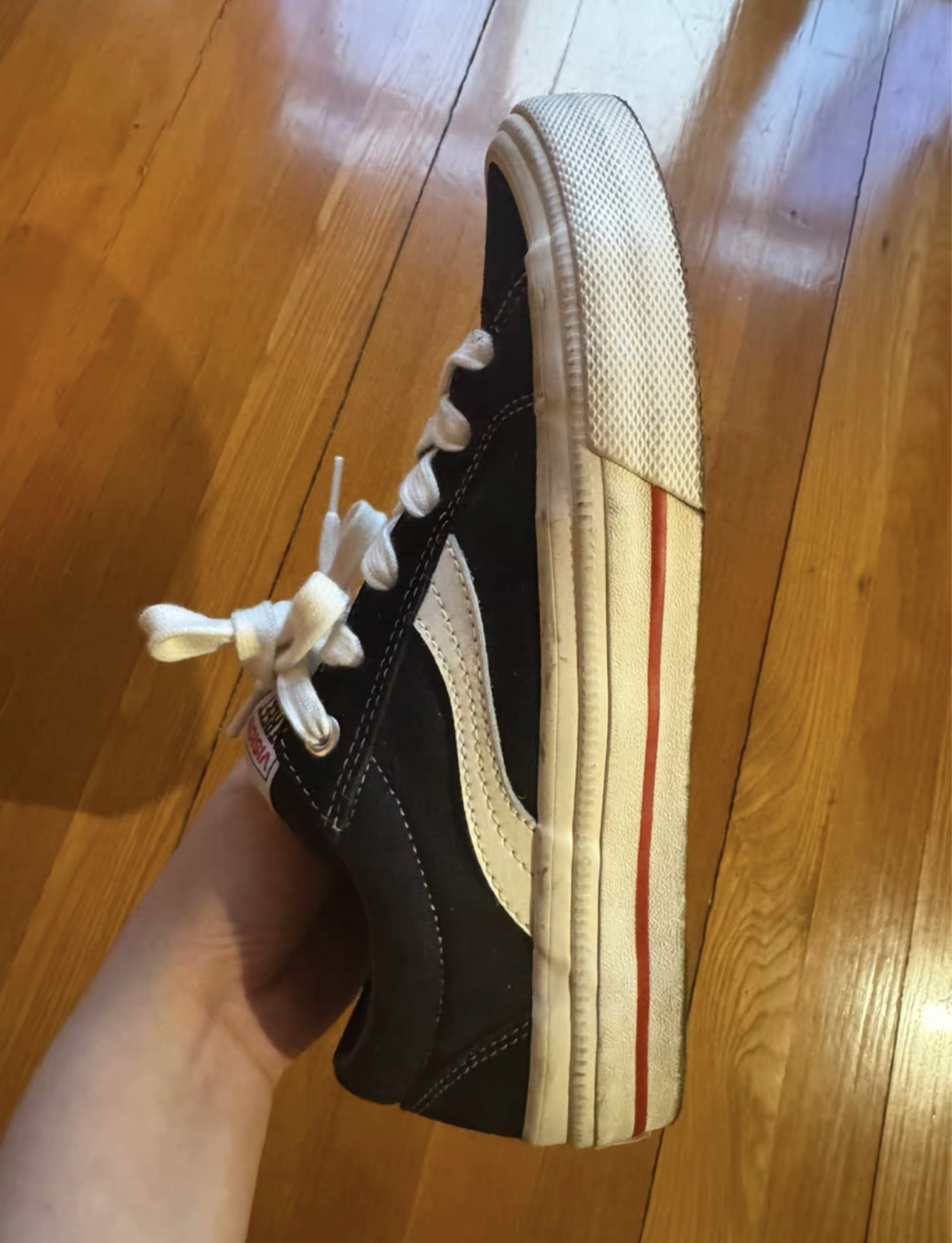 👟球鞋名称:vision百搭板鞋 🔍分享理由:鞋面整体黑色帆布,搭配白色胶边,很青春活力 整体感受:上脚很舒服,没有特别硬的感觉