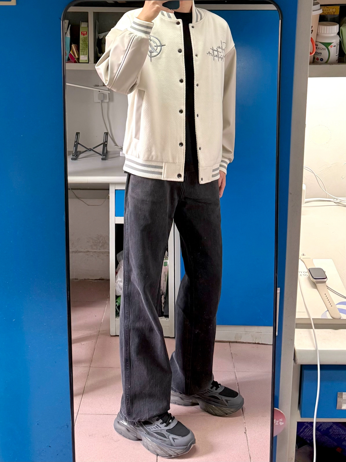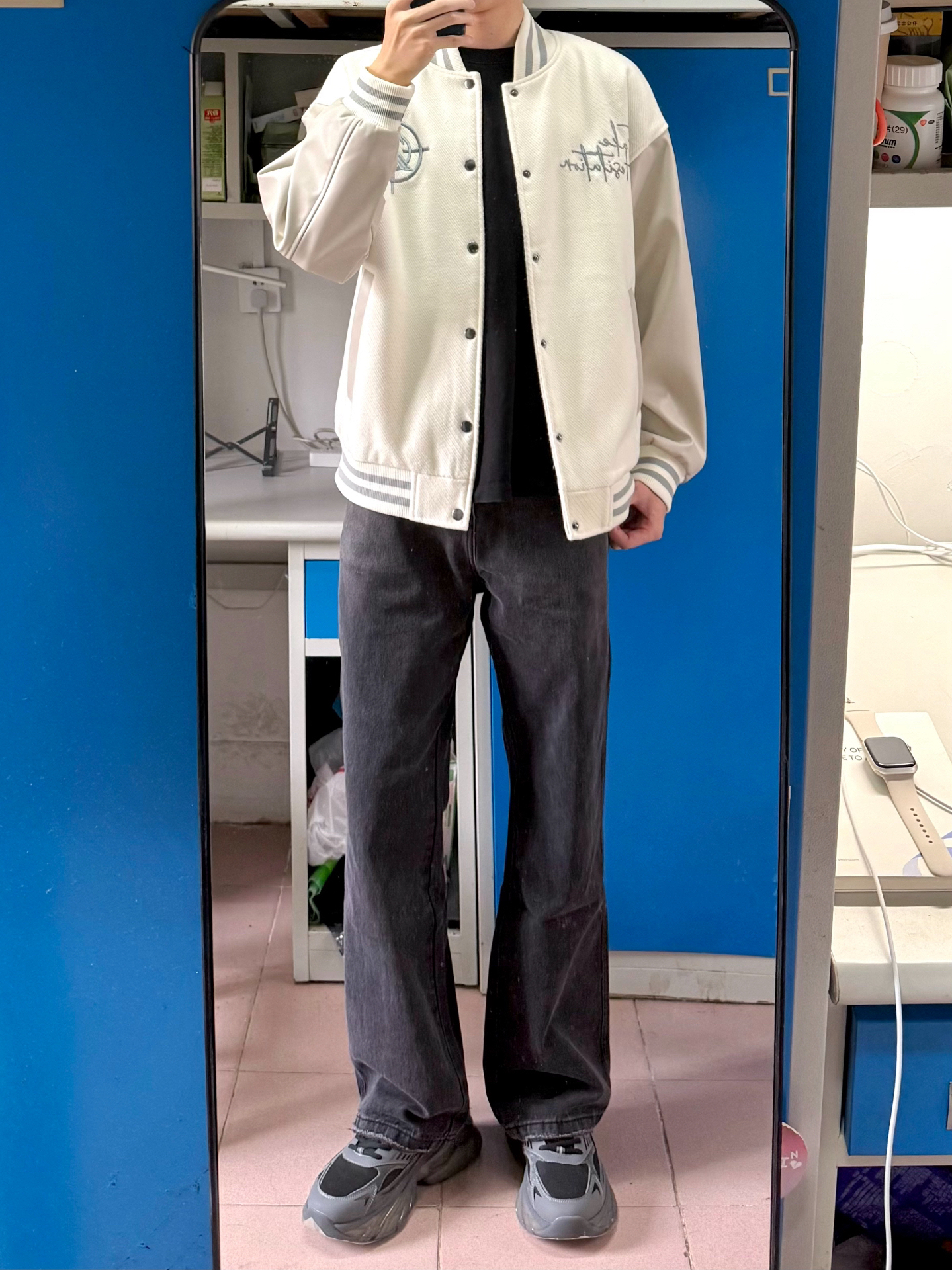 秋季就适合穿棒球服👌 今天这件米白色棒球服搭配黑色牛仔裤就很简约舒适🤩 很适合秋季穿🌟