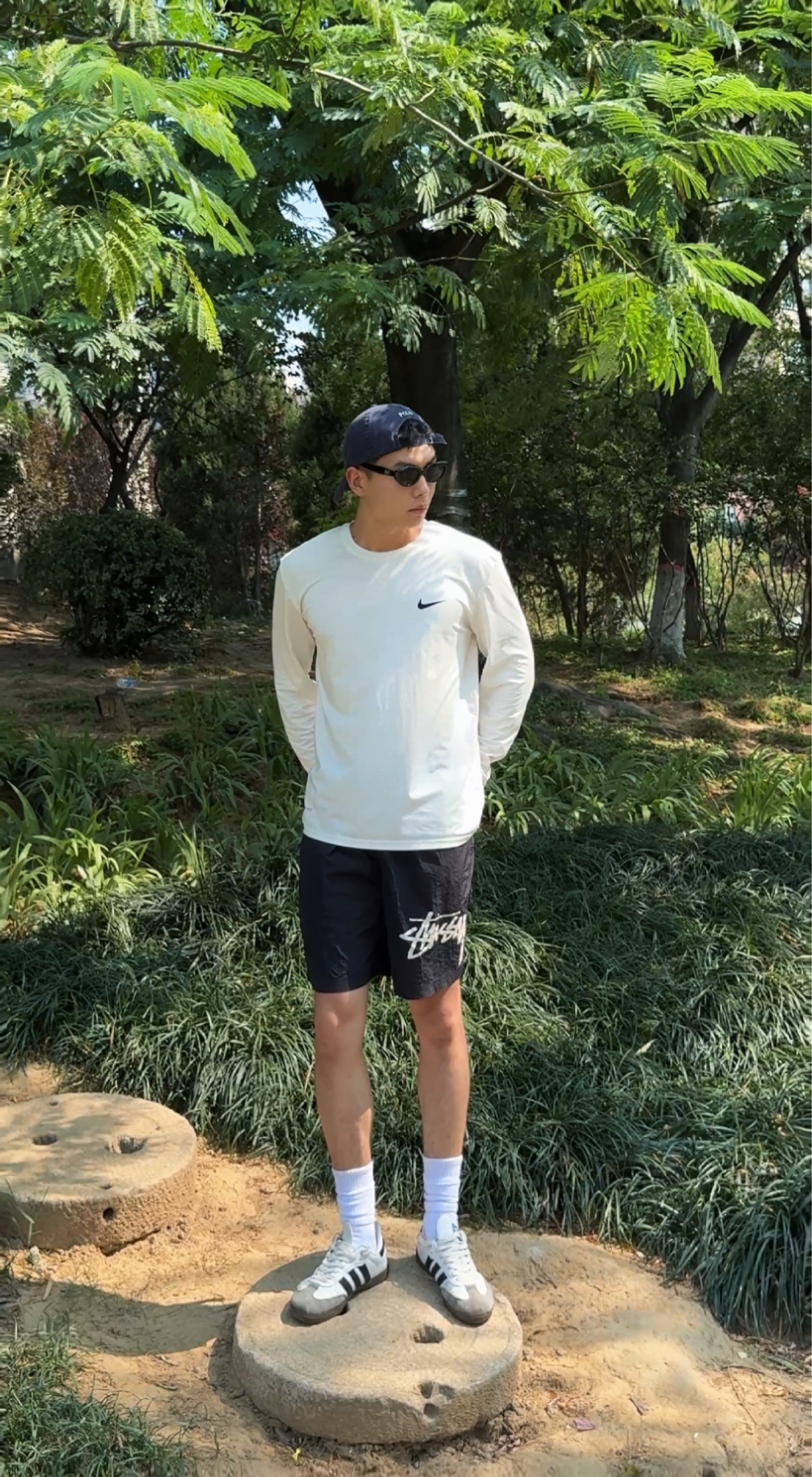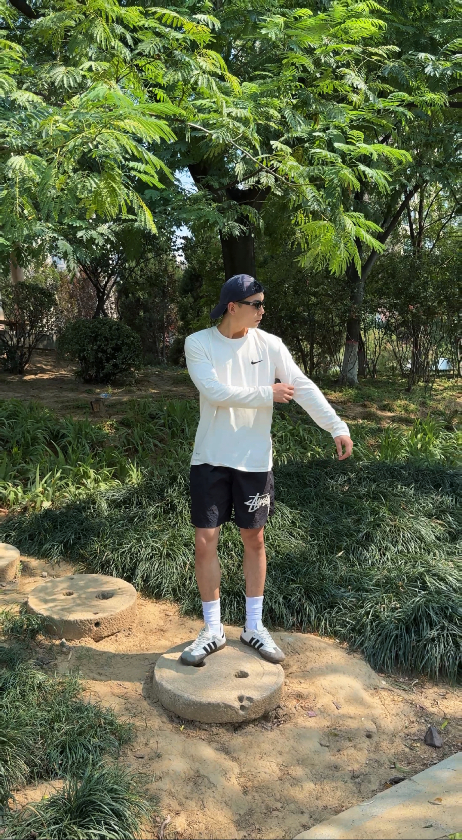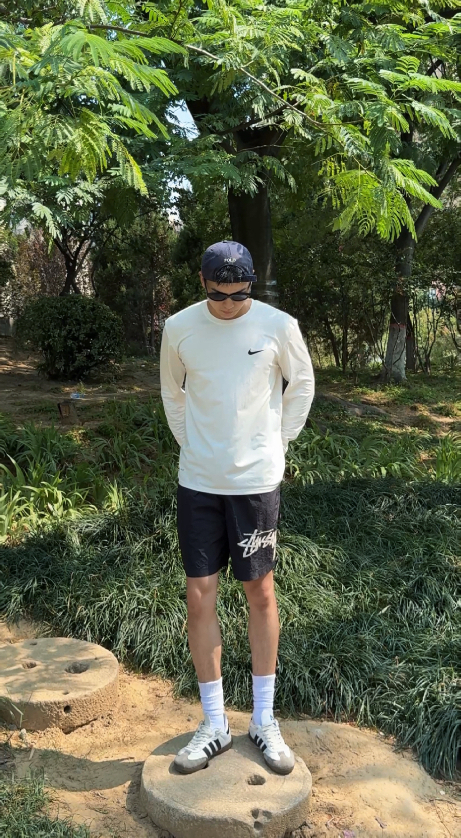 上衣👕: Nike 国际运动品牌质量上不用多说,打球穿🏀出汗也不贴身,好想是Dri-FIT技术,速干透气绝对没话说。去健身有氧都适合,版型正常。根据自己的喜好拍,我是想平常也可以穿就买了个大一号不是紧身的,没想到拍照也挺好看,实现了运动功能与日常穿搭的兼顾。 裤子👖: Nike 耐克和 Stussy 联名,速干的材质,附属美式小短裤。穿上身不贴身,超级凉快🔥